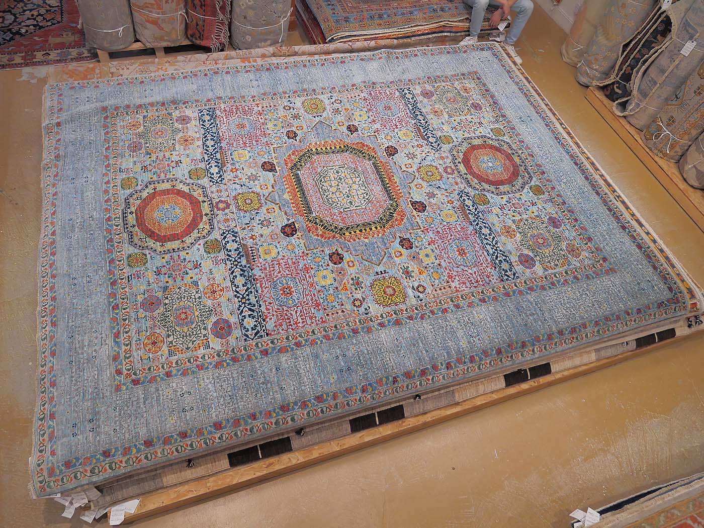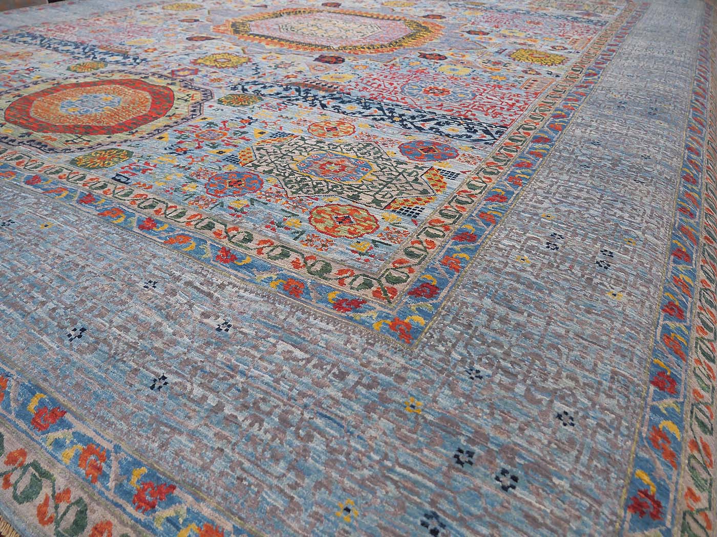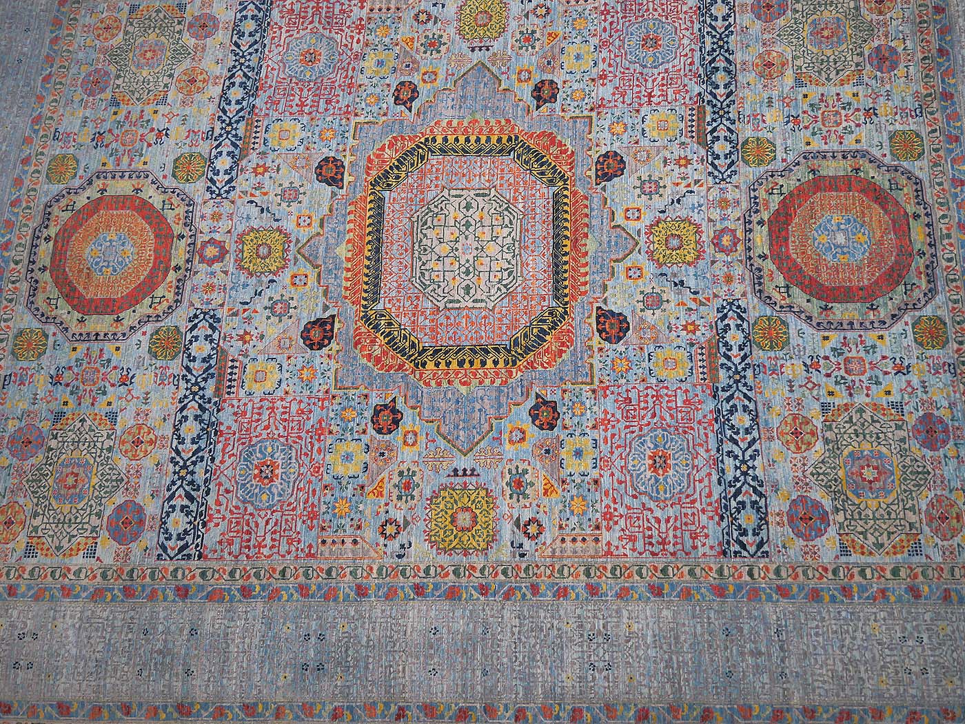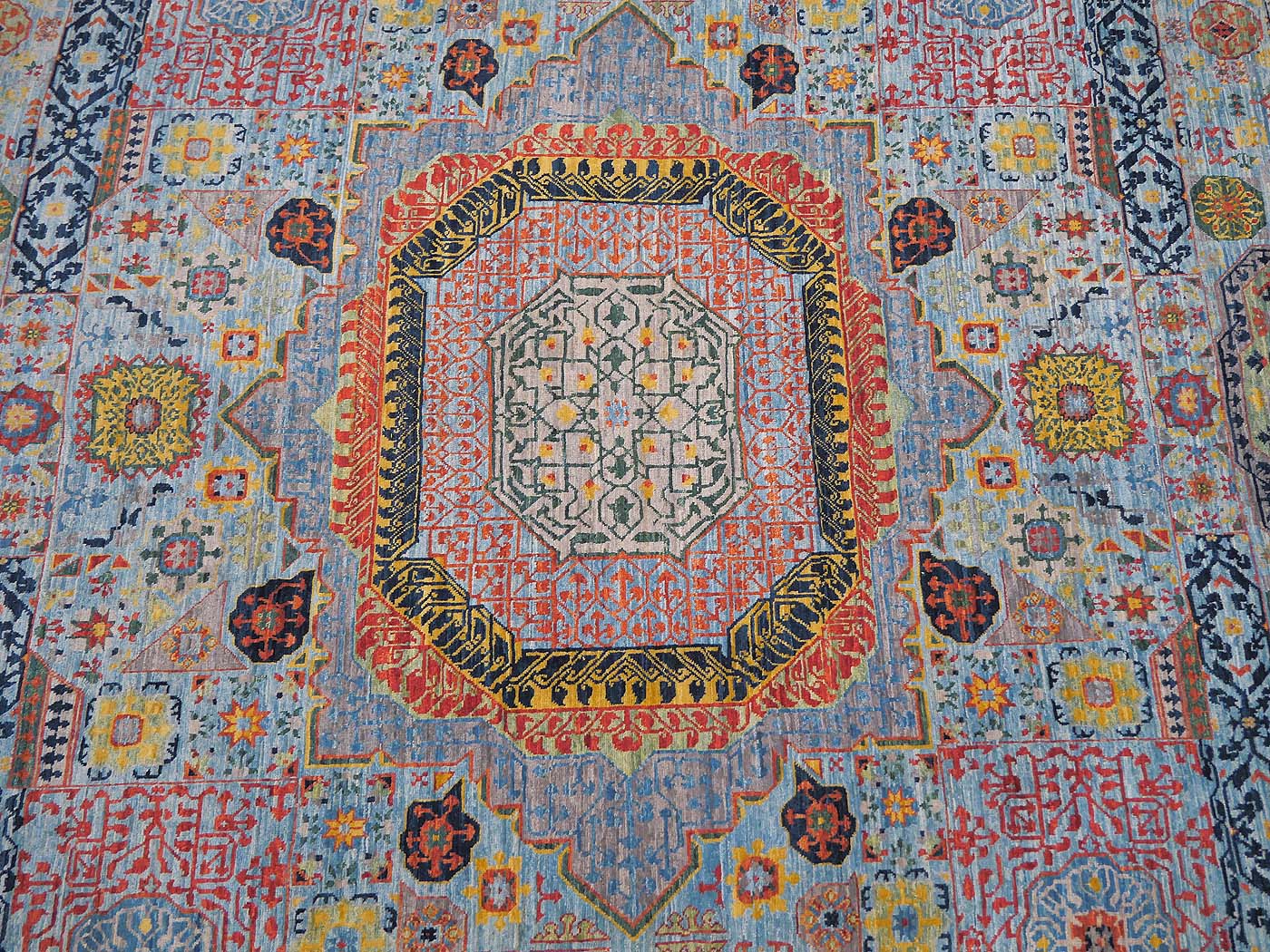 Finely hand knotted pile rug made using handspun wool and natural dyes. This rug comes from our Mamluk collection with some of the most finely woven carpets produced anywhere with handspun wool and all natural dyes. The knotting is over 140kpsi. This striking rug has a design inspired by rugs commissioned for Mamluk Sultans in their court workshops centuries ago. These unique geometric rugs are equally well suited for contemporary or traditional interiors. Entirely hand made. FREE Shipping and Easy Returns.