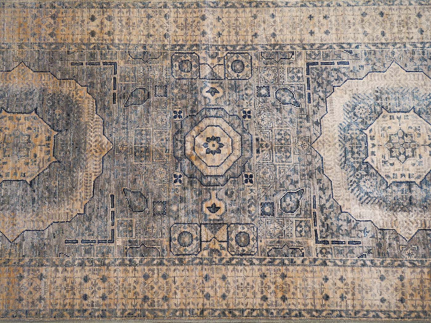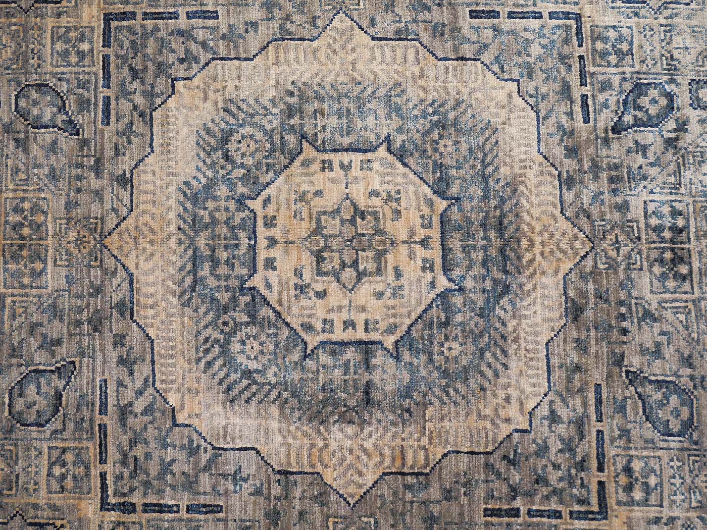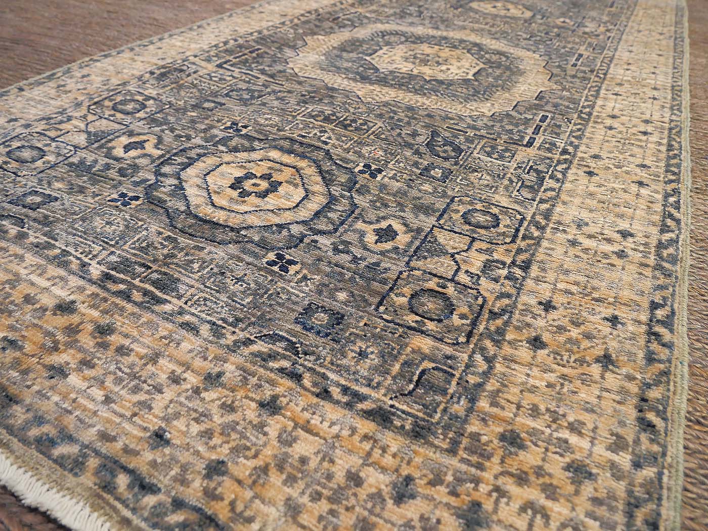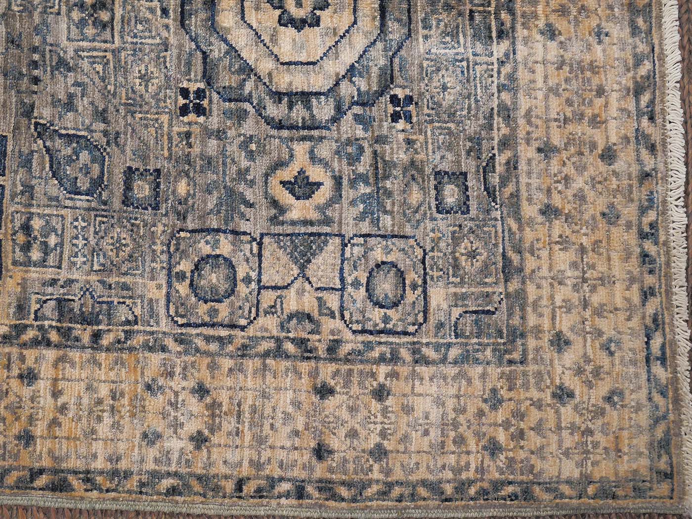 Hand knotted pile rug rug made using natural dyes and handspun wool. This rug comes from our Bamiyan collection, one of the more finely woven carpets produced anywhere with natural dyes and handspun wool. The knotting is over 130kpsi. This striking rug has a design inspired by rugs commissioned for Mamluk Sultans in their court workshops centuries ago. These unique geometric rugs are equally well suited for contemporary or traditional interiors. Entirely hand made. FREE Shipping and Easy Returns.