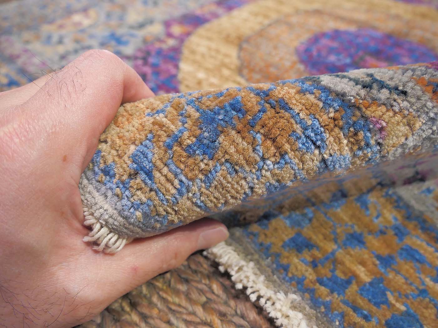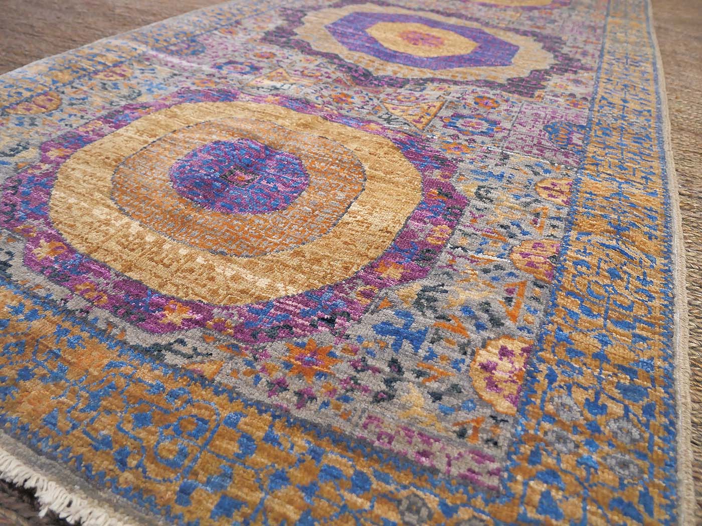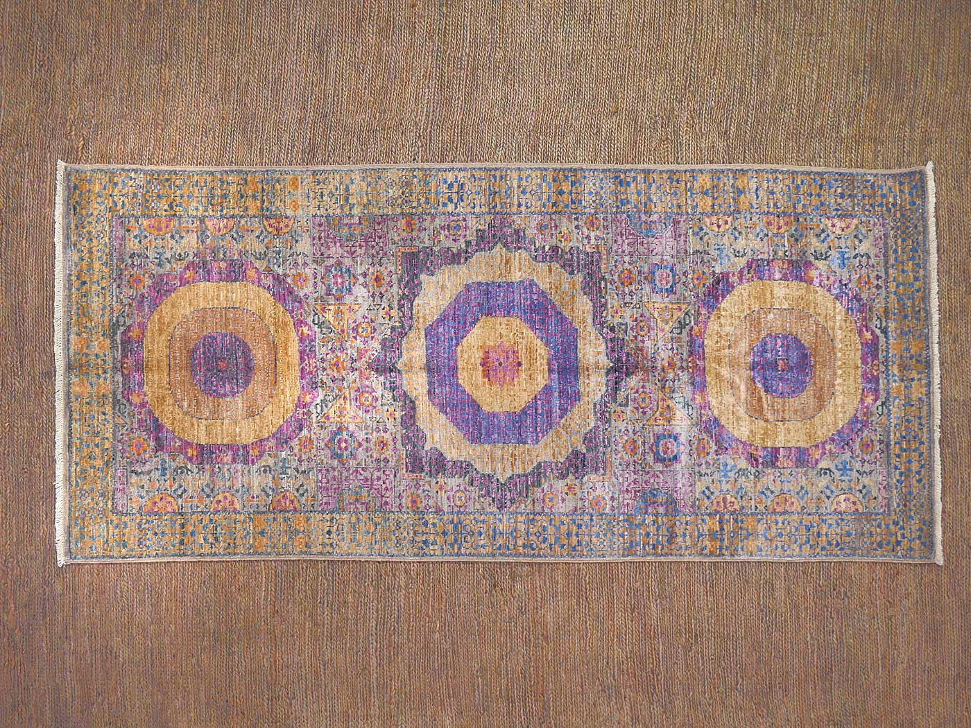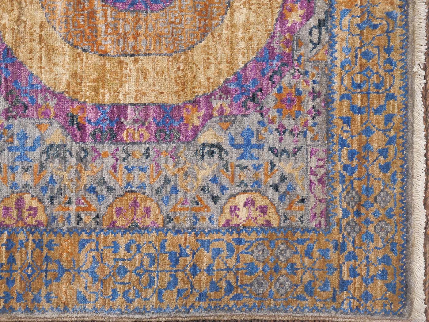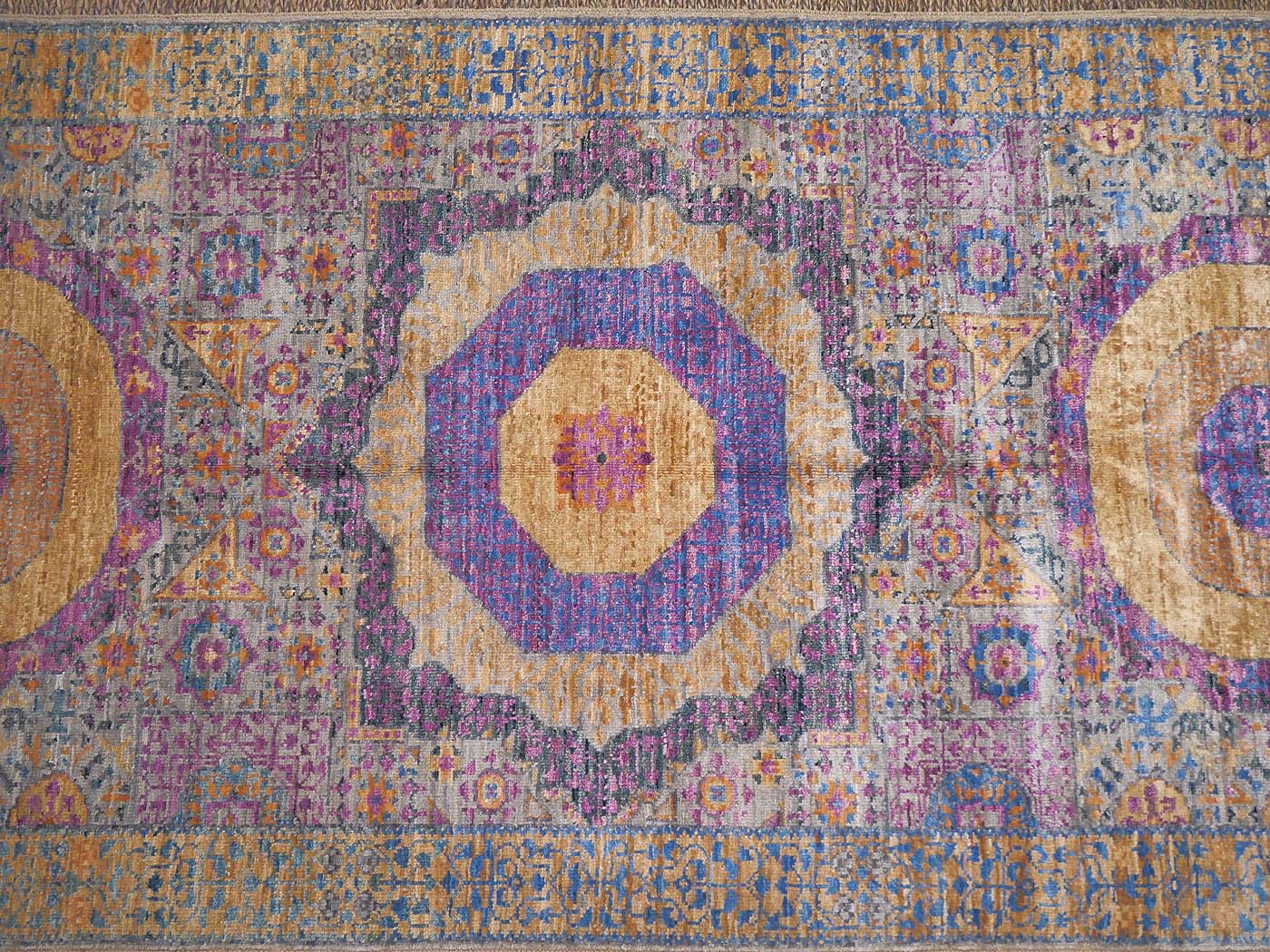 Hand knotted pile rug rug made using natural dyes and handspun wool. This rug comes from our Bamiyan collection, one of the more finely woven carpets produced anywhere with natural dyes and handspun wool. The knotting is over 130kpsi. This striking rug has a design inspired by rugs commissioned for Mamluk Sultans in their court workshops centuries ago. These unique geometric rugs are equally well suited for contemporary or traditional interiors. Entirely hand made. FREE Shipping and Easy Returns.