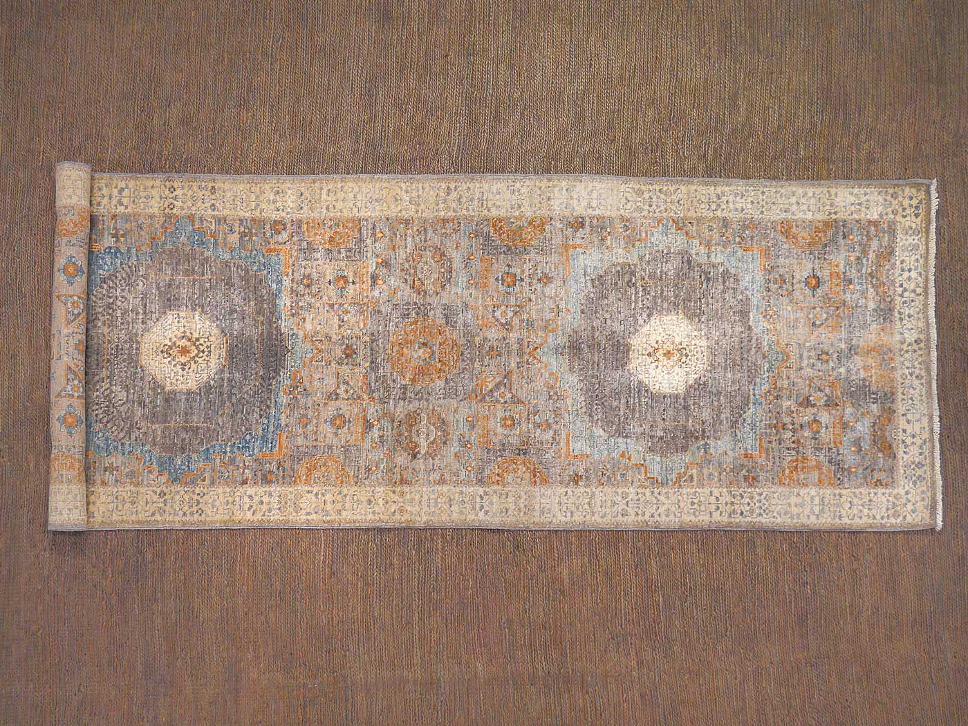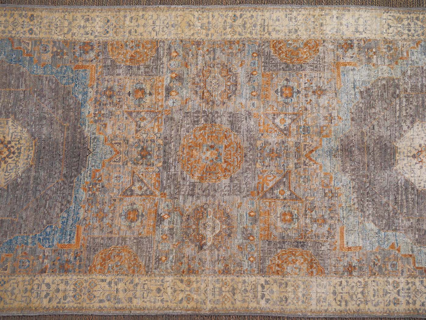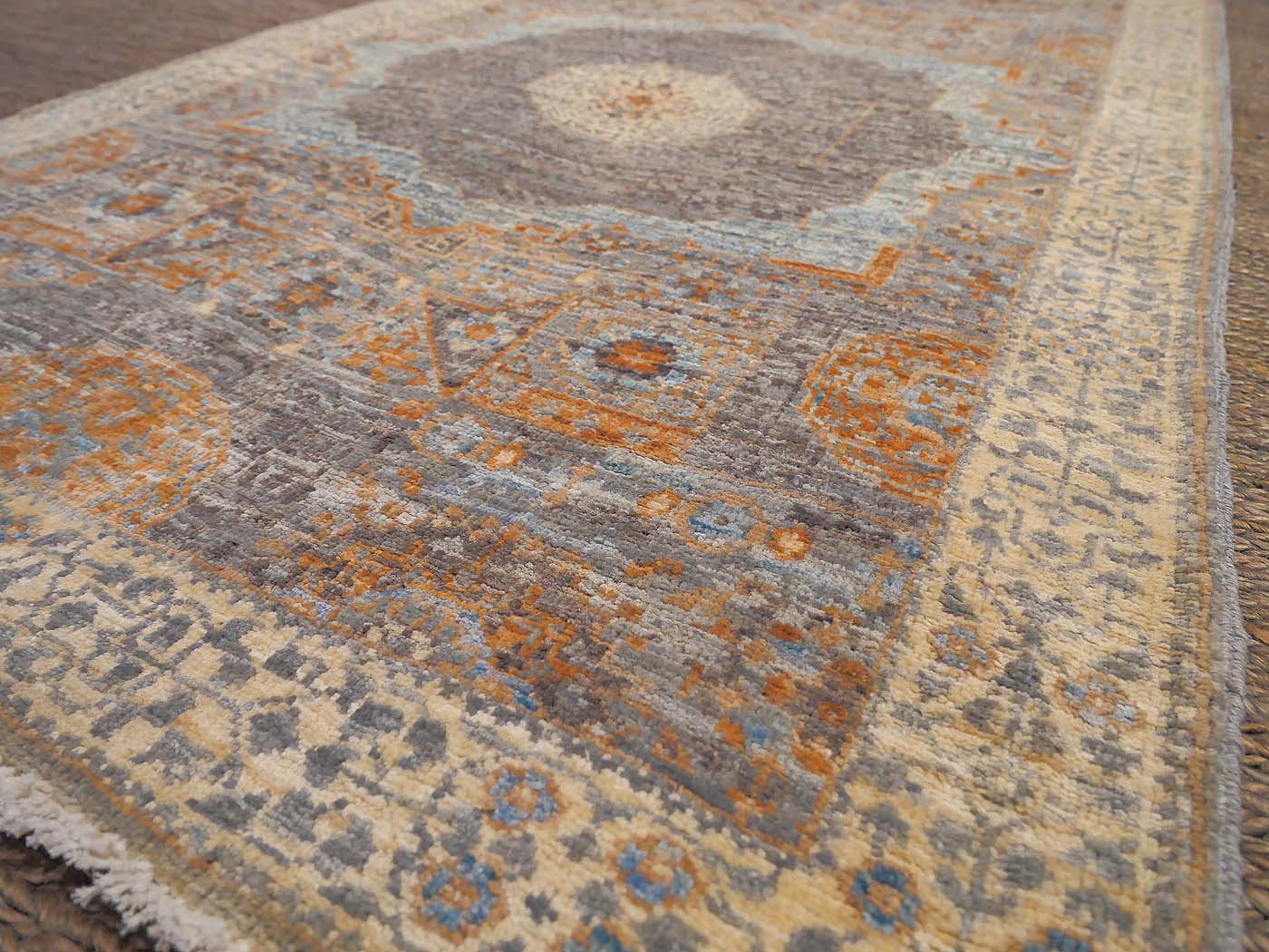 Hand knotted pile rug rug made using natural dyes and handspun wool. This rug comes from our Bamiyan collection, one of the more finely woven carpets produced anywhere with natural dyes and handspun wool. The knotting is over 130kpsi. This striking rug has a design inspired by rugs commissioned for Mamluk Sultans in their court workshops centuries ago. These unique geometric rugs are equally well suited for contemporary or traditional interiors. Entirely hand made. FREE Shipping and Easy Returns.