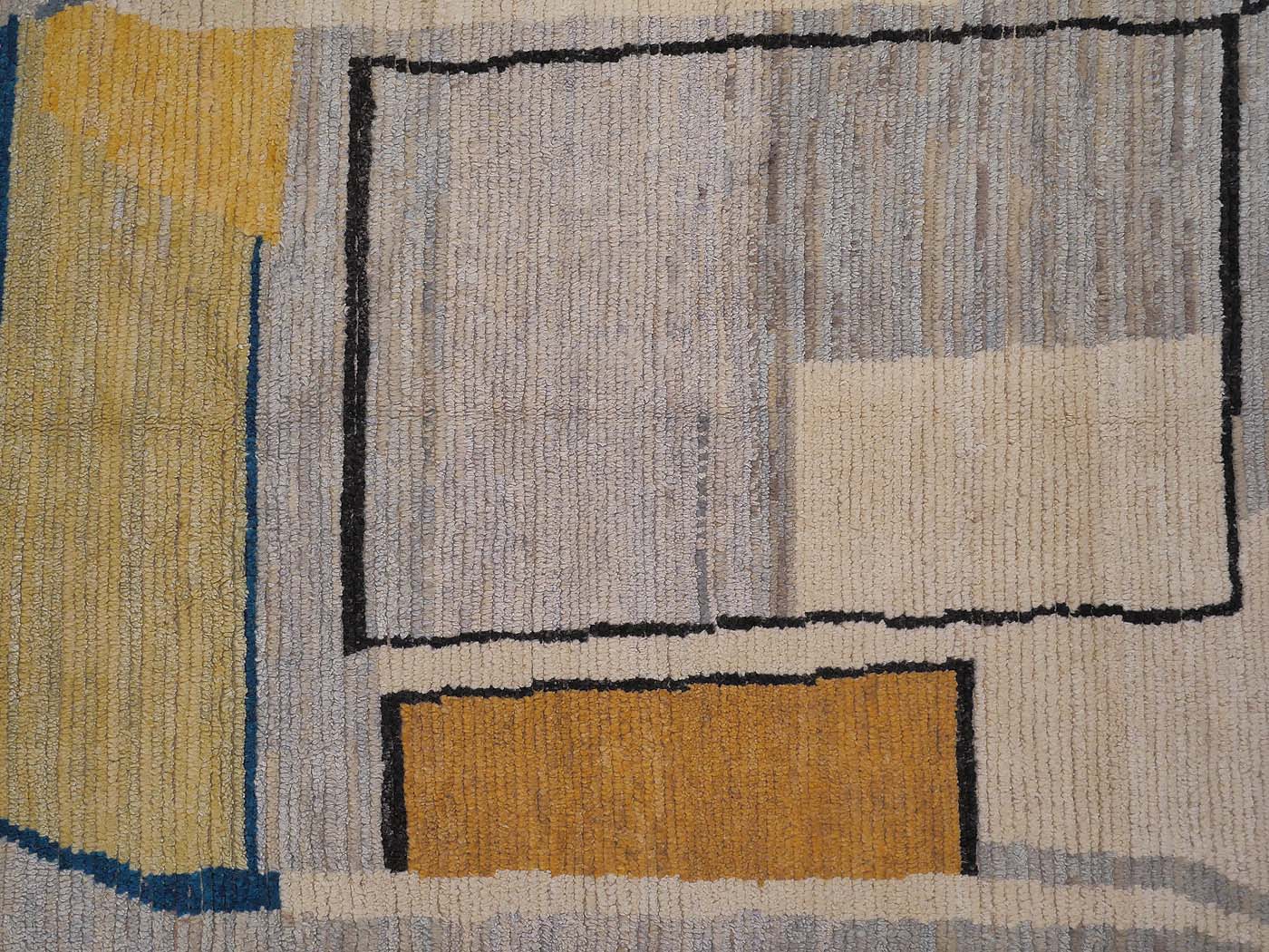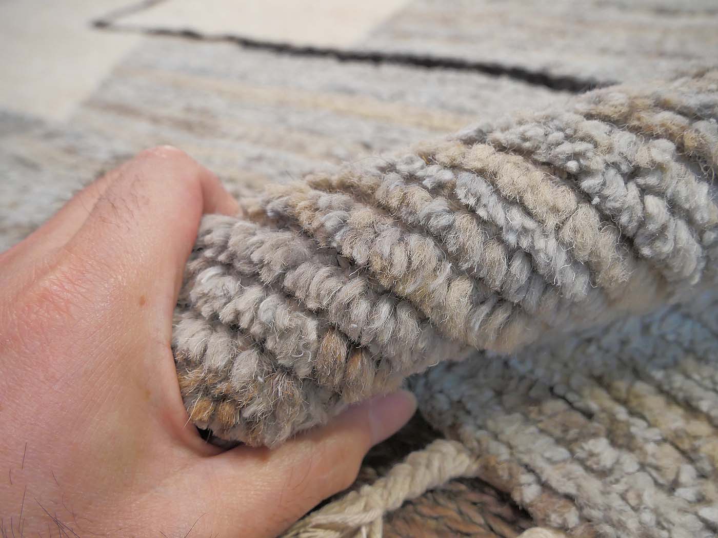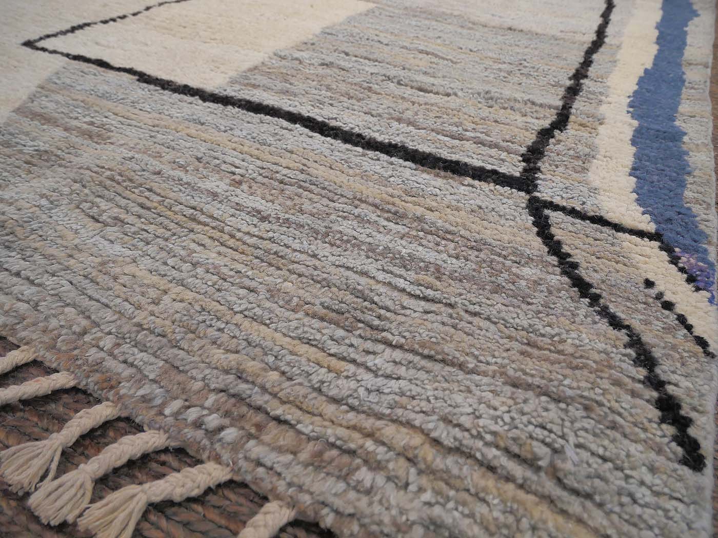 Hand knotted pile rug made using all long shag handspun wool. This wonderful carpet is modeled after an antique Moroccan tribal rug. It is knotted in a textured weave of around 40kpi. This coarse knotting along with the long shaggy soft handspun wool and spontaneous organic designs give this rug a “modern tribal” feel. Inspired by the many wonderful tribal rugs of the Berber weavers of Morocco. Add unique texture and design to your home and very soft texture underfoot. FREE Shipping and Easy Returns.