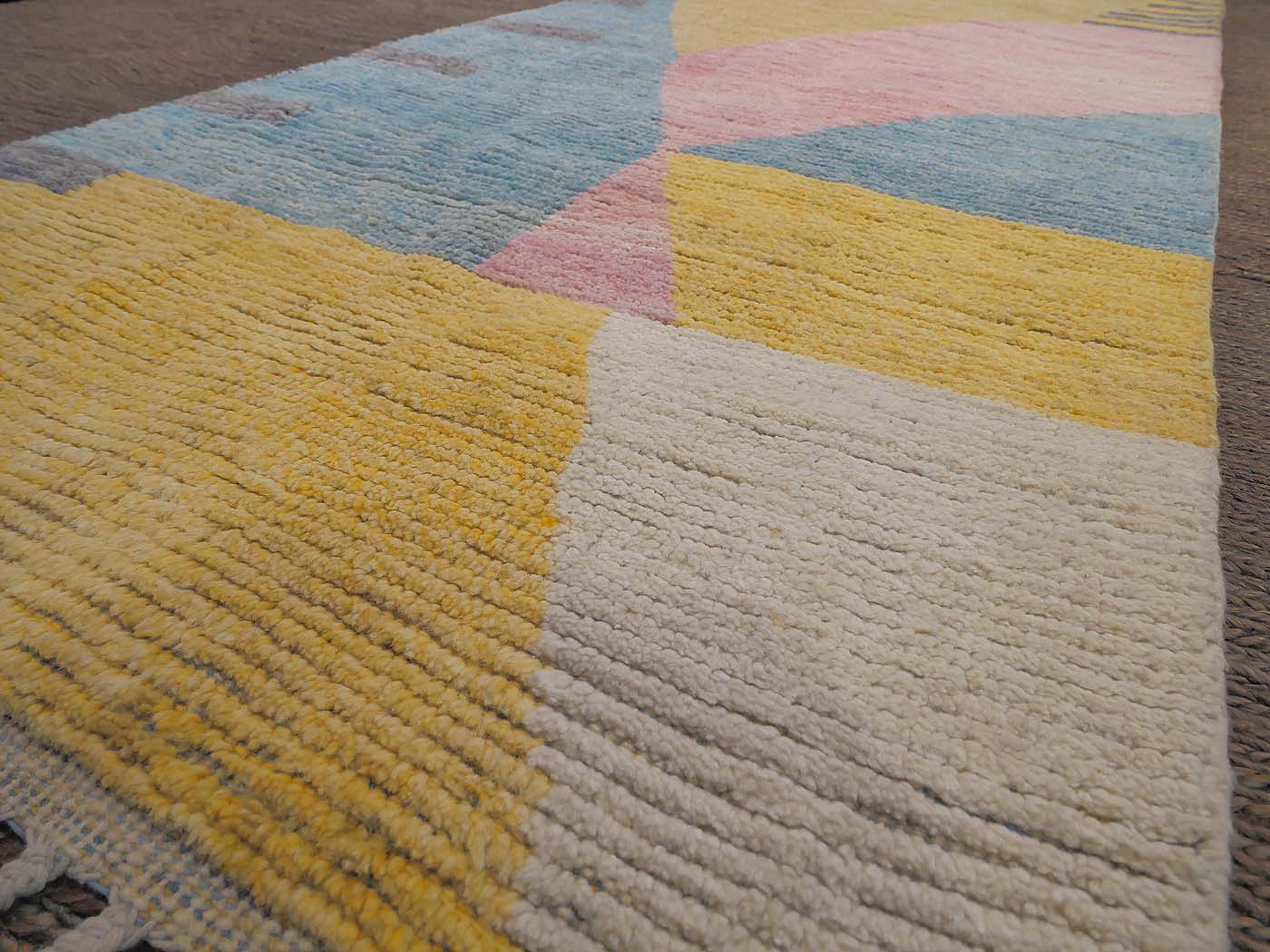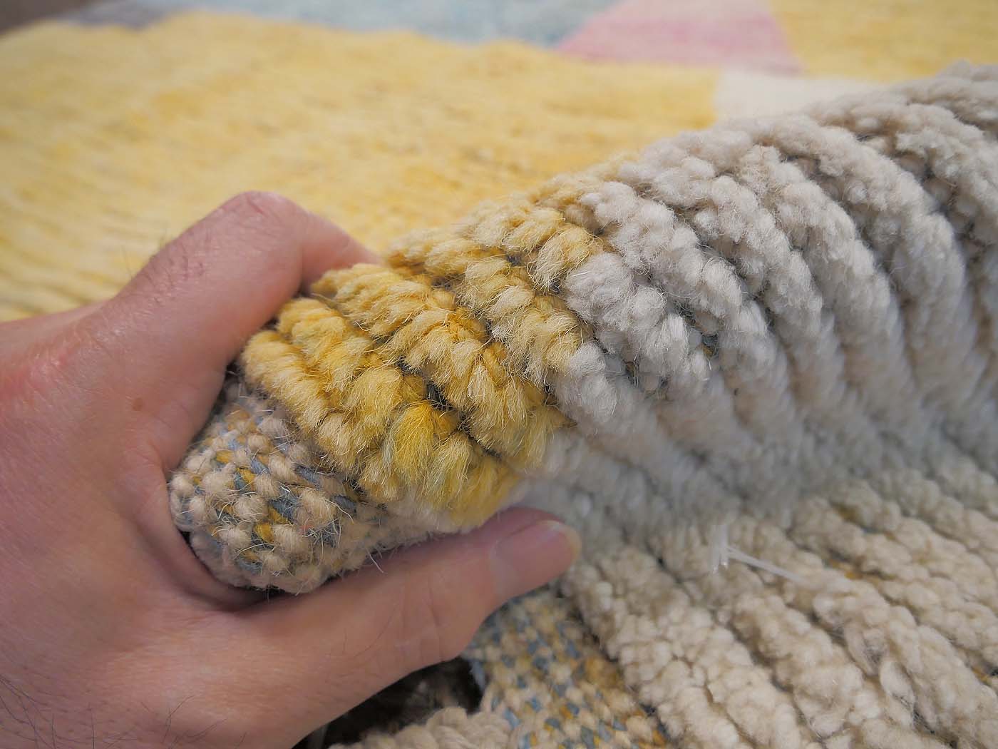 Hand knotted pile rug made using all long shag handspun wool. This wonderful carpet is modeled after an antique Moroccan tribal rug. It is knotted in a textured weave of around 40kpi. This coarse knotting along with the long shaggy soft handspun wool and spontaneous organic designs give this rug a “modern tribal” feel. Inspired by the many wonderful tribal rugs of the Berber weavers of Morocco. Add unique texture and design to your home and very soft texture underfoot. FREE Shipping and Easy Returns.