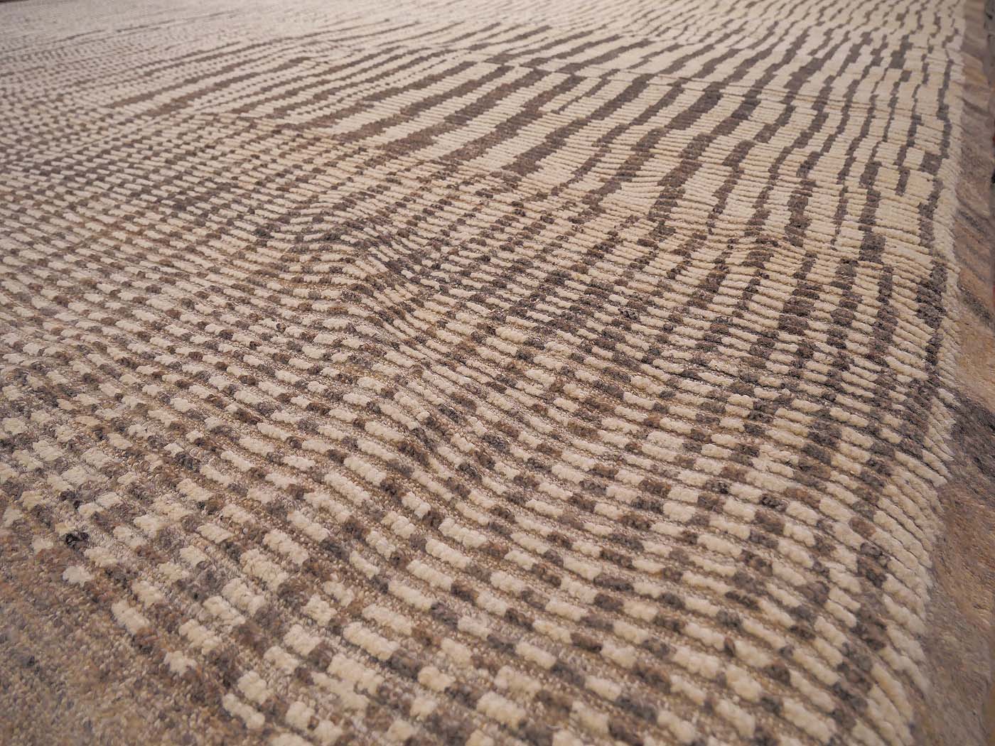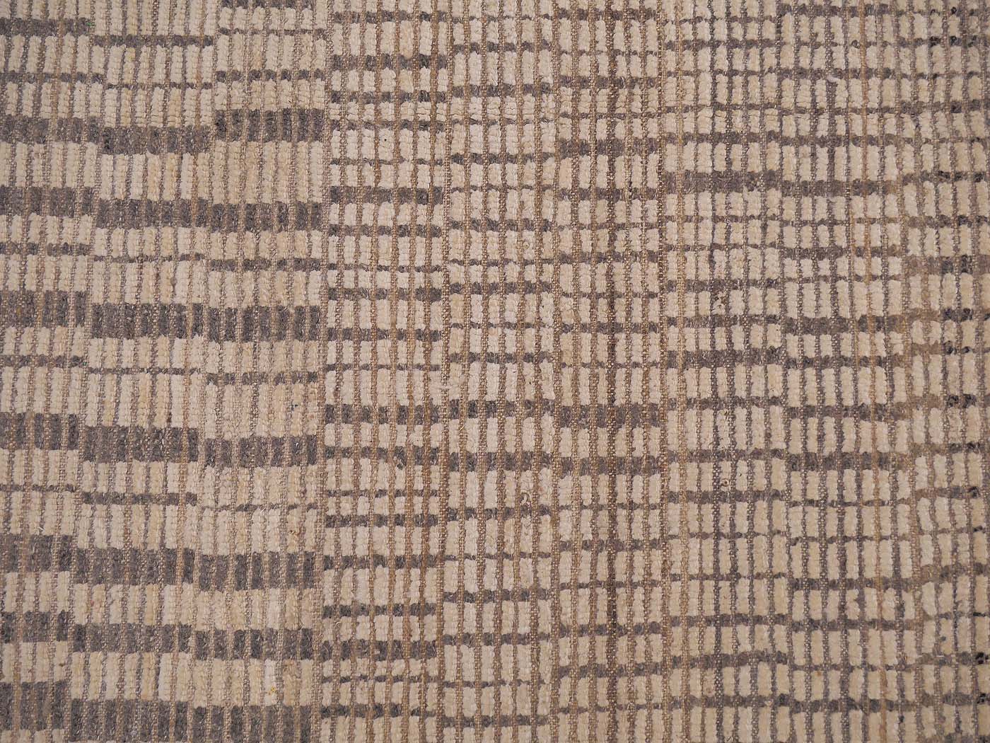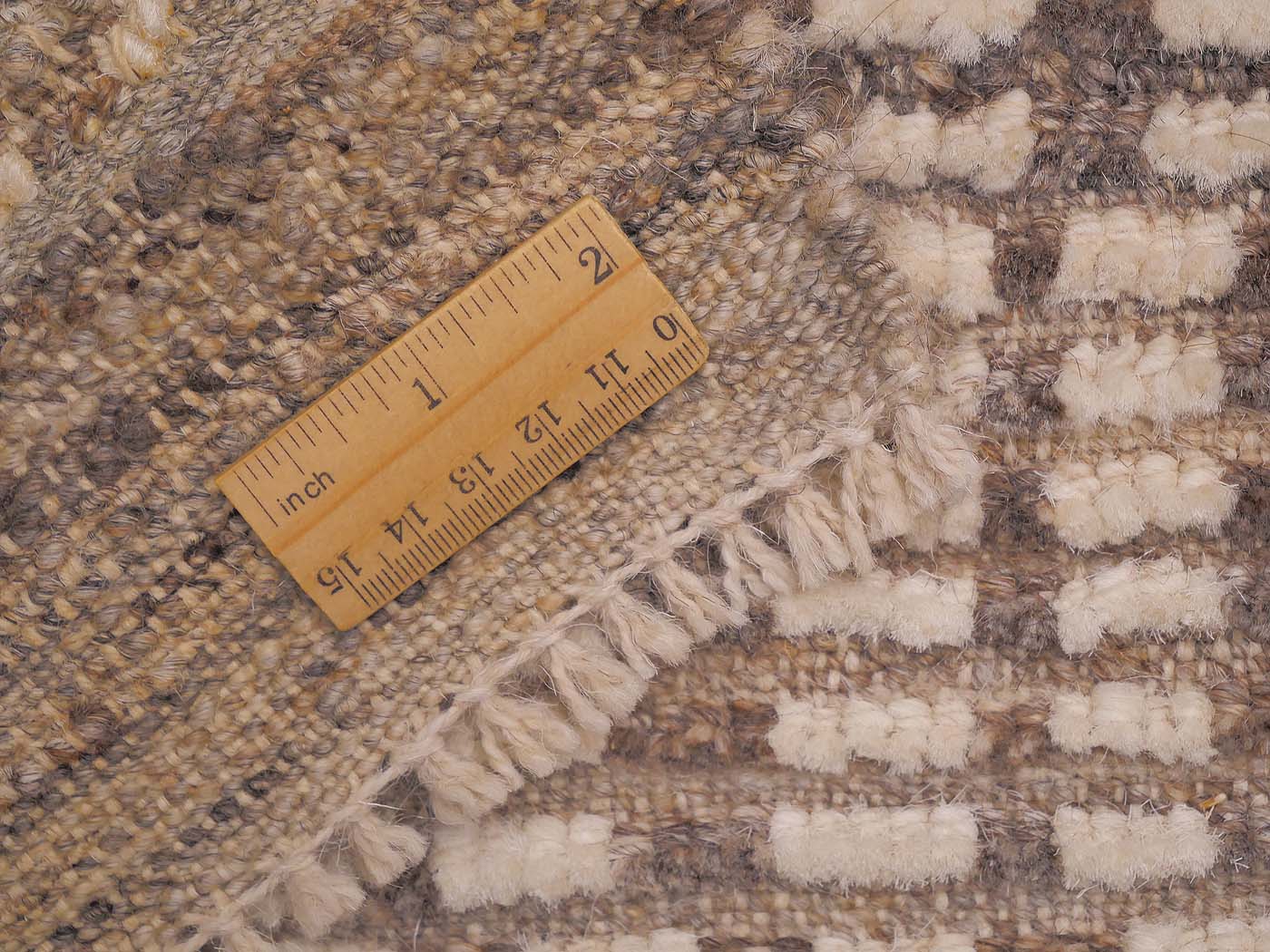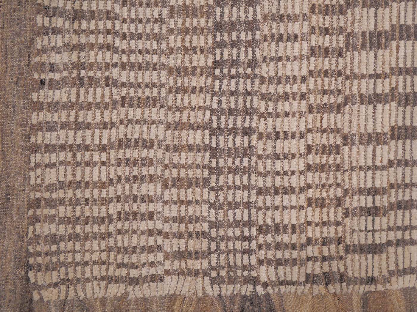 Hand knotted pile rug made using all long shag handspun wool. This wonderful carpet is modeled after an antique Moroccan tribal rug. It is knotted in a textured weave with rows of flat woven kilim between rows of hand knotted pile at around 40kpsi. This coarse knotting along with the kilim weave gives a wonderful texture and “modern tribal” feel. Inspired by the many wonderful tribal rugs of the Berber weavers of Morocco. Add unique texture and design to your home and very soft texture underfoot. Entirely hand made. FREE Shipping and Easy Returns.
