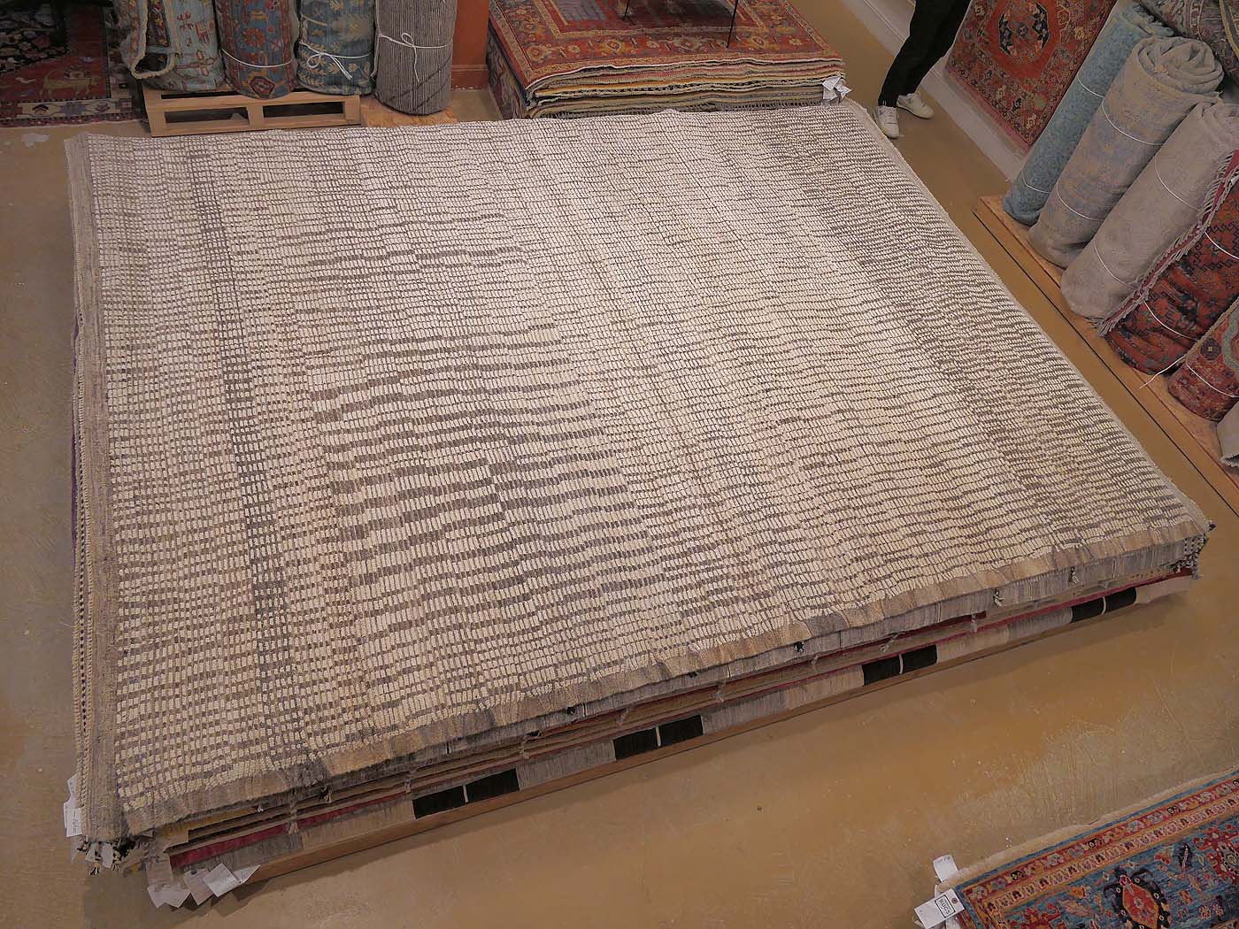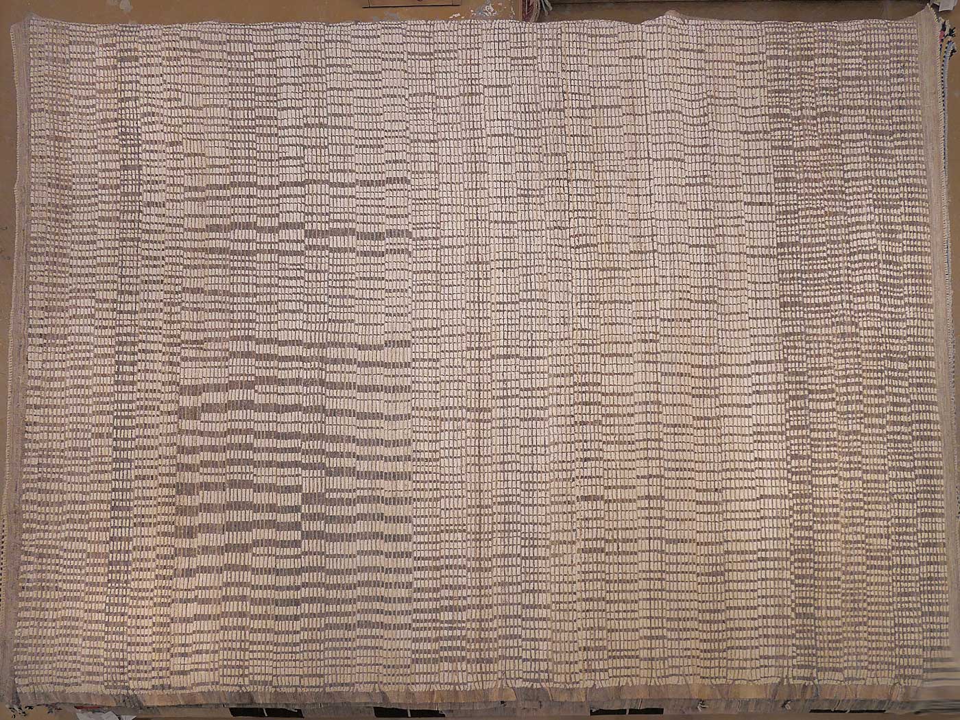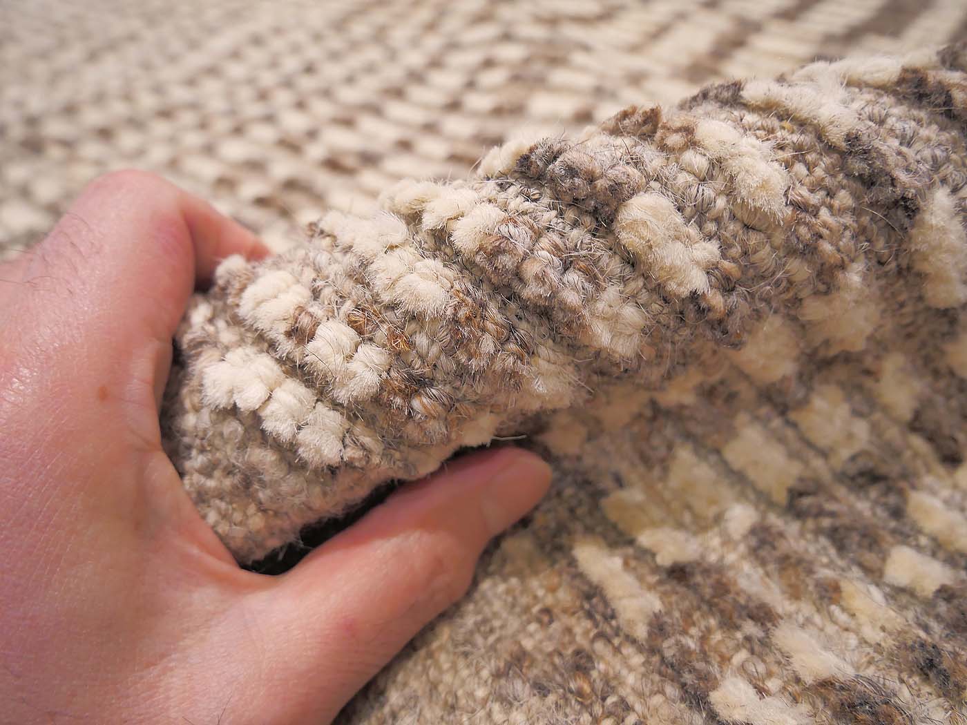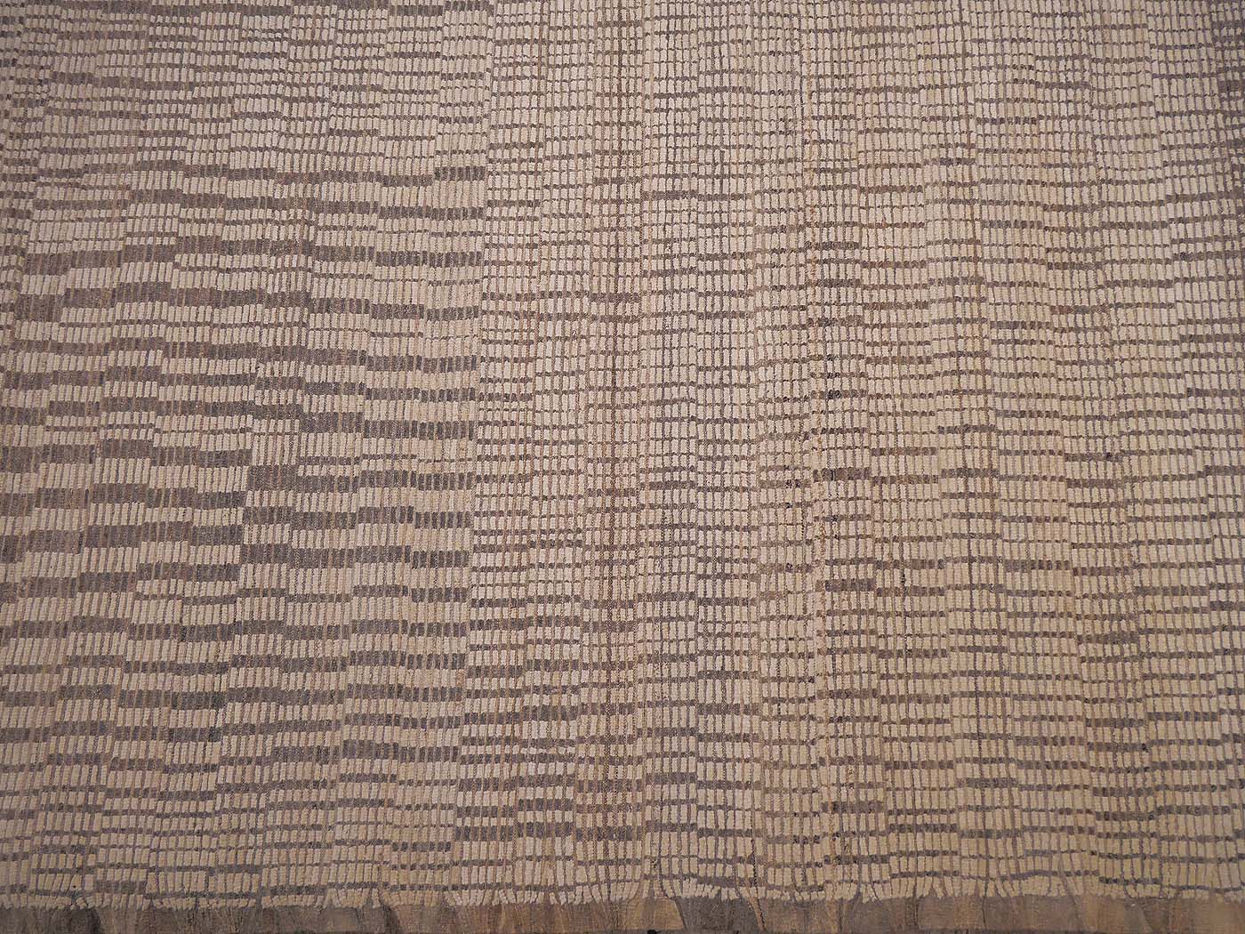 Hand knotted pile rug made using all long shag handspun wool. This wonderful carpet is modeled after an antique Moroccan tribal rug. It is knotted in a textured weave with rows of flat woven kilim between rows of hand knotted pile at around 40kpsi. This coarse knotting along with the kilim weave gives a wonderful texture and “modern tribal” feel. Inspired by the many wonderful tribal rugs of the Berber weavers of Morocco. Add unique texture and design to your home and very soft texture underfoot. Entirely hand made. FREE Shipping and Easy Returns.
