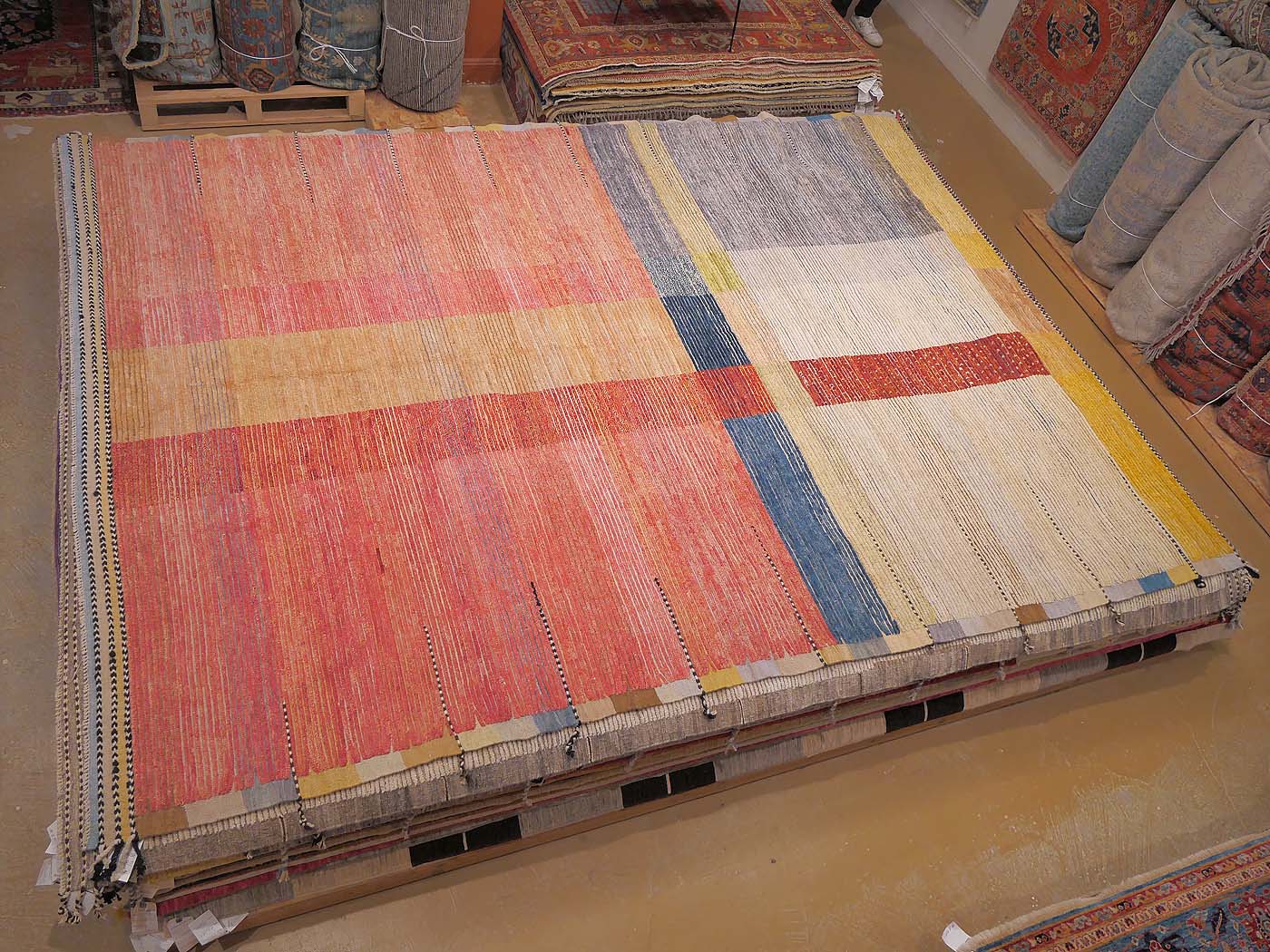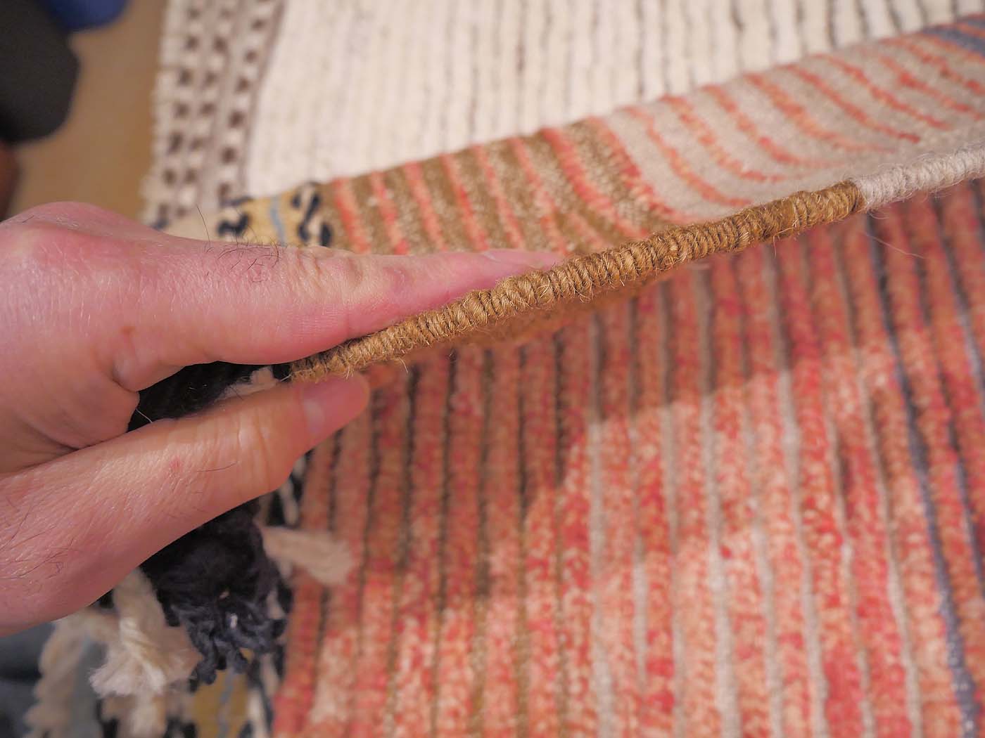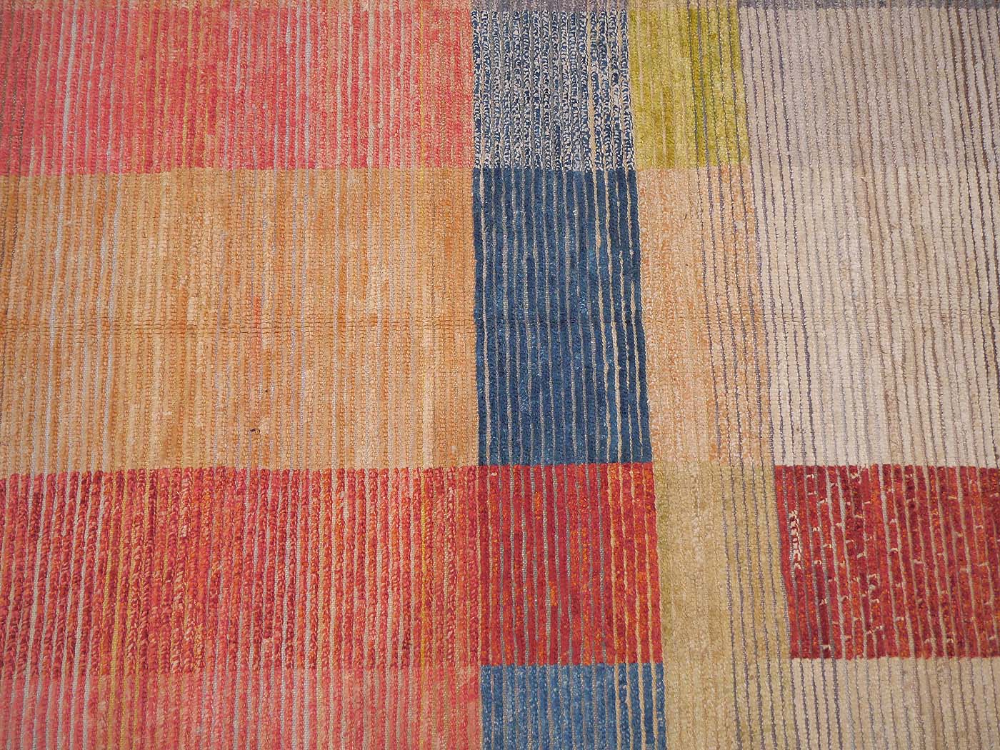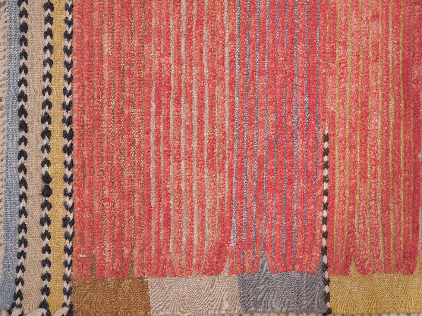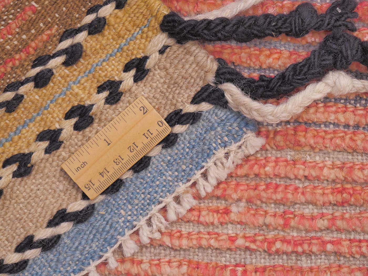Hand knotted pile rug made using all long shag handspun wool. This wonderful carpet is modeled after an antique Moroccan tribal rug. It is knotted in a textured weave with rows of flat woven kilim between rows of hand knotted pile at around 40kpsi. This coarse knotting along with the kilim weave gives a wonderful texture and “modern tribal” feel. Inspired by the many wonderful tribal rugs of the Berber weavers of Morocco. Add unique texture and design to your home and very soft texture underfoot. Entirely hand made. FREE Shipping and Easy Returns.