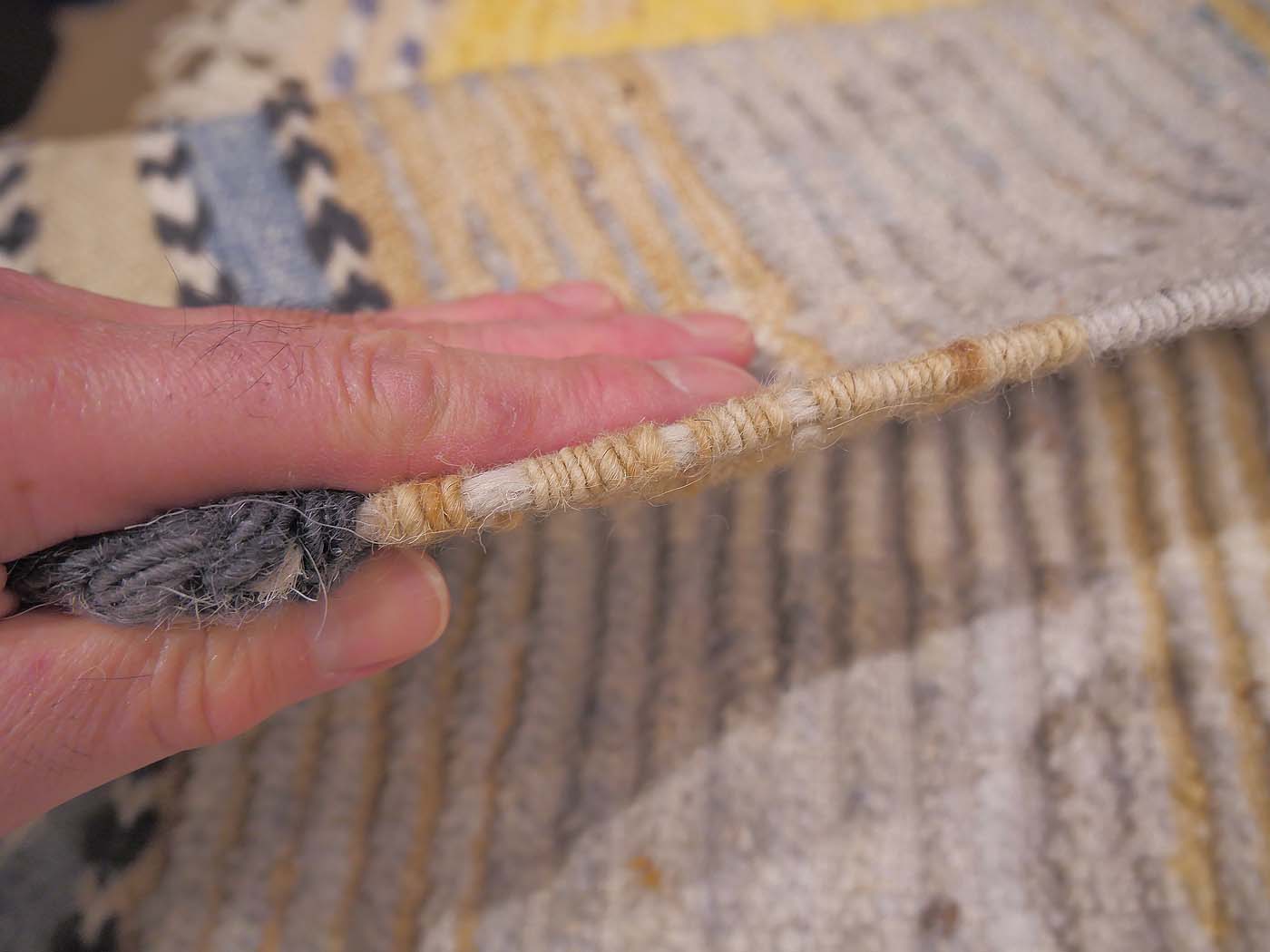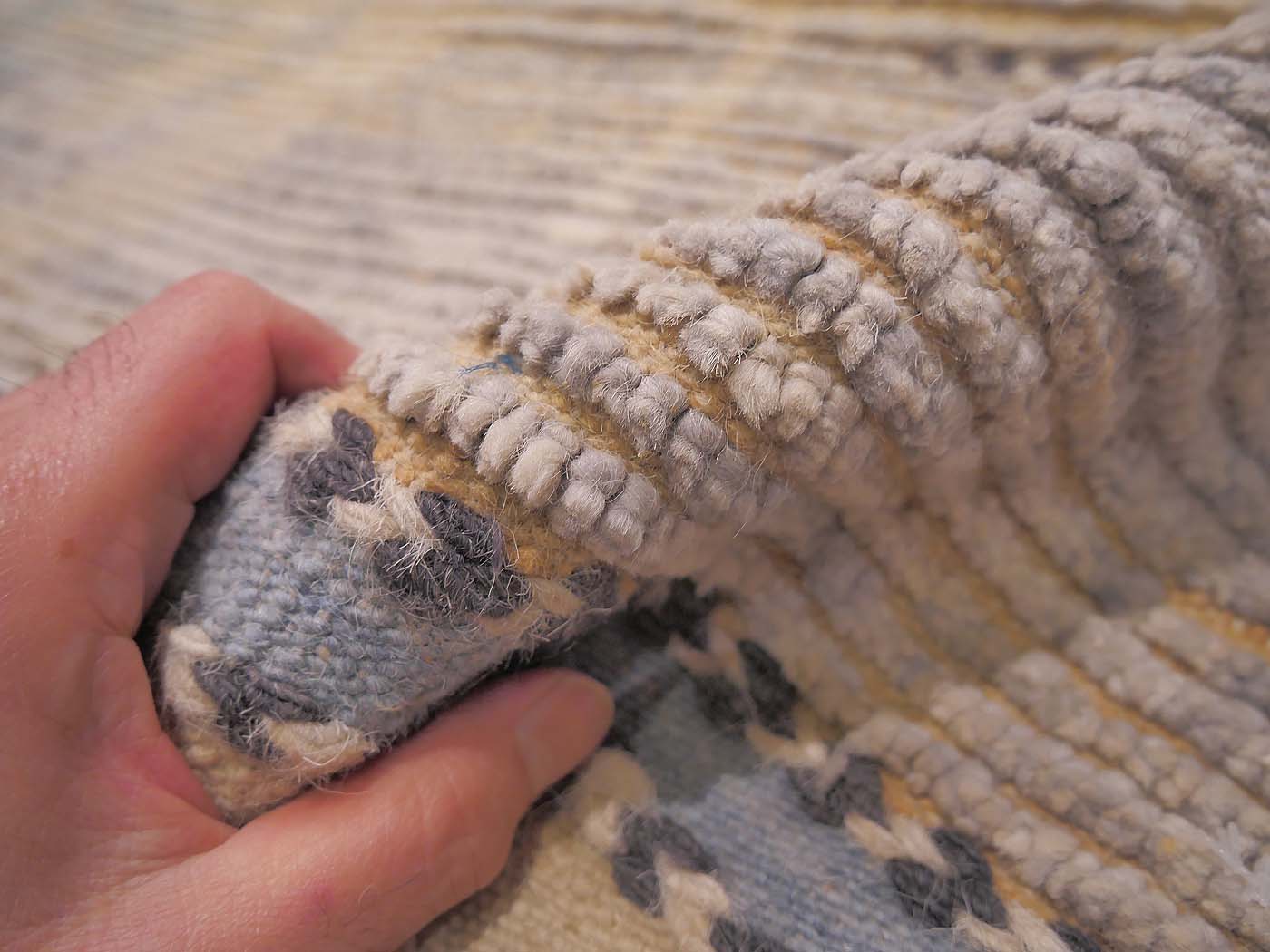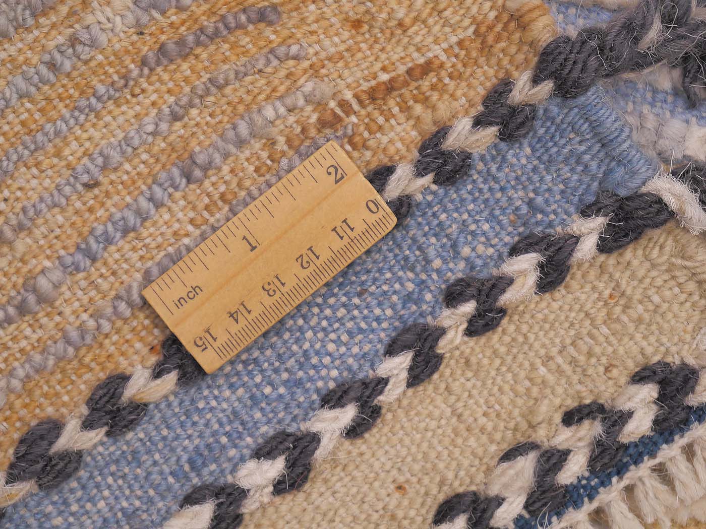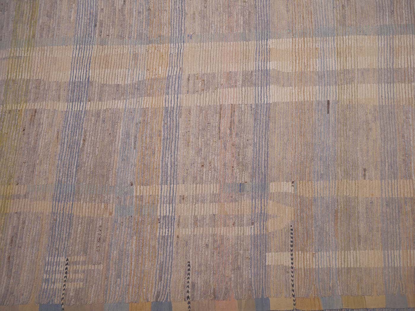 Hand knotted pile rug made using all long shag handspun wool. This wonderful carpet is modeled after an antique Moroccan tribal rug. It is knotted in a textured weave with rows of flat woven kilim between rows of hand knotted pile at around 40kpsi. This coarse knotting along with the kilim weave gives a wonderful texture and “modern tribal” feel. Inspired by the many wonderful tribal rugs of the Berber weavers of Morocco. Add unique texture and design to your home and very soft texture underfoot. Entirely hand made. FREE Shipping and Easy Returns.