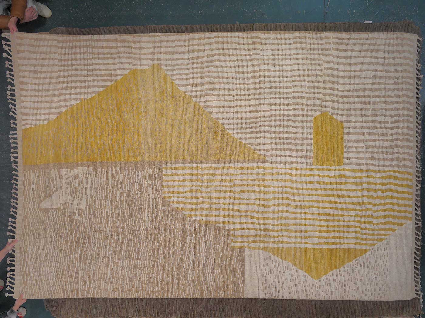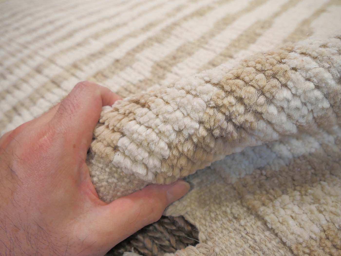 Hand knotted pile rug made using all long shag handspun wool. This wonderful carpet is modeled after an antique Moroccan tribal rug. It is knotted in a textured weave of around 40kpi. This coarse knotting along with the long shaggy soft handspun wool and spontaneous organic designs give this rug a “modern tribal” feel. Inspired by the many wonderful tribal rugs of the Berber weavers of Morocco. Add unique texture and design to your home and very soft texture underfoot. FREE Shipping and Easy Returns.
