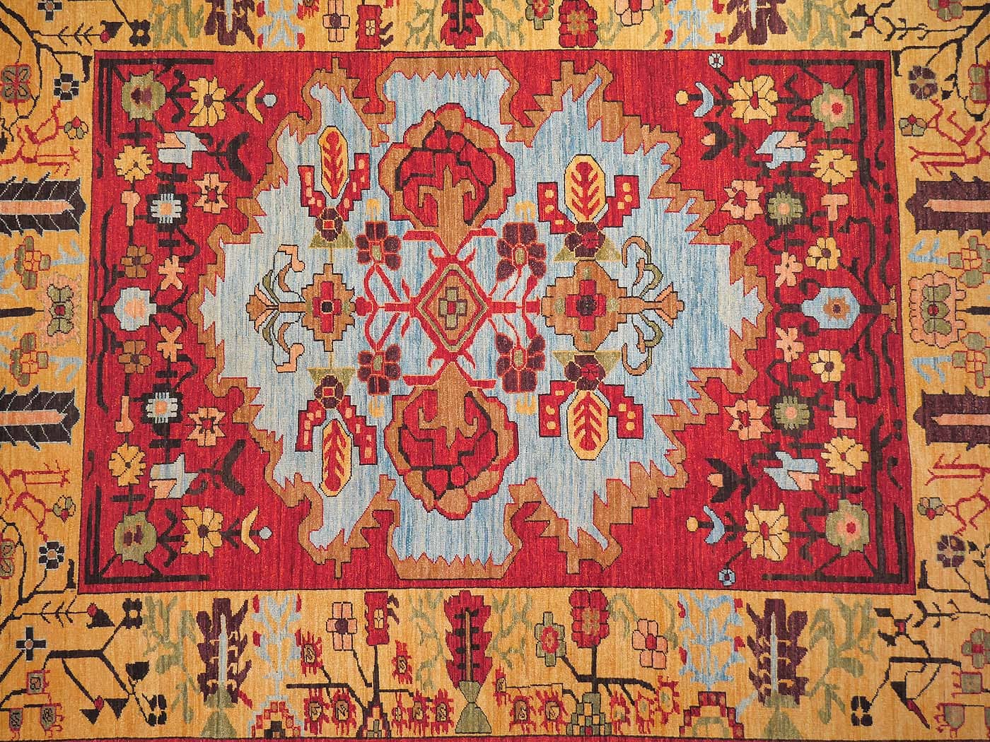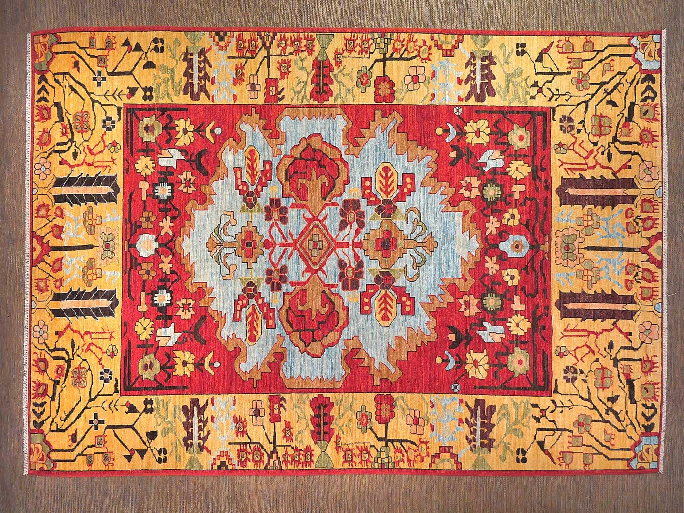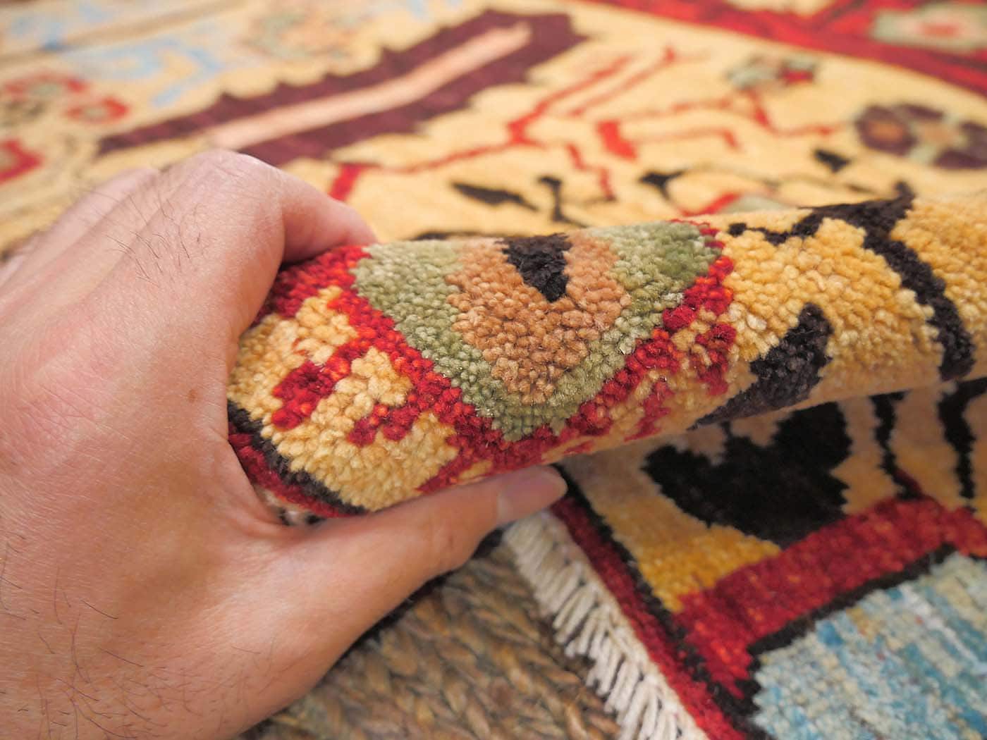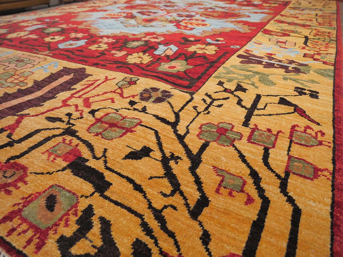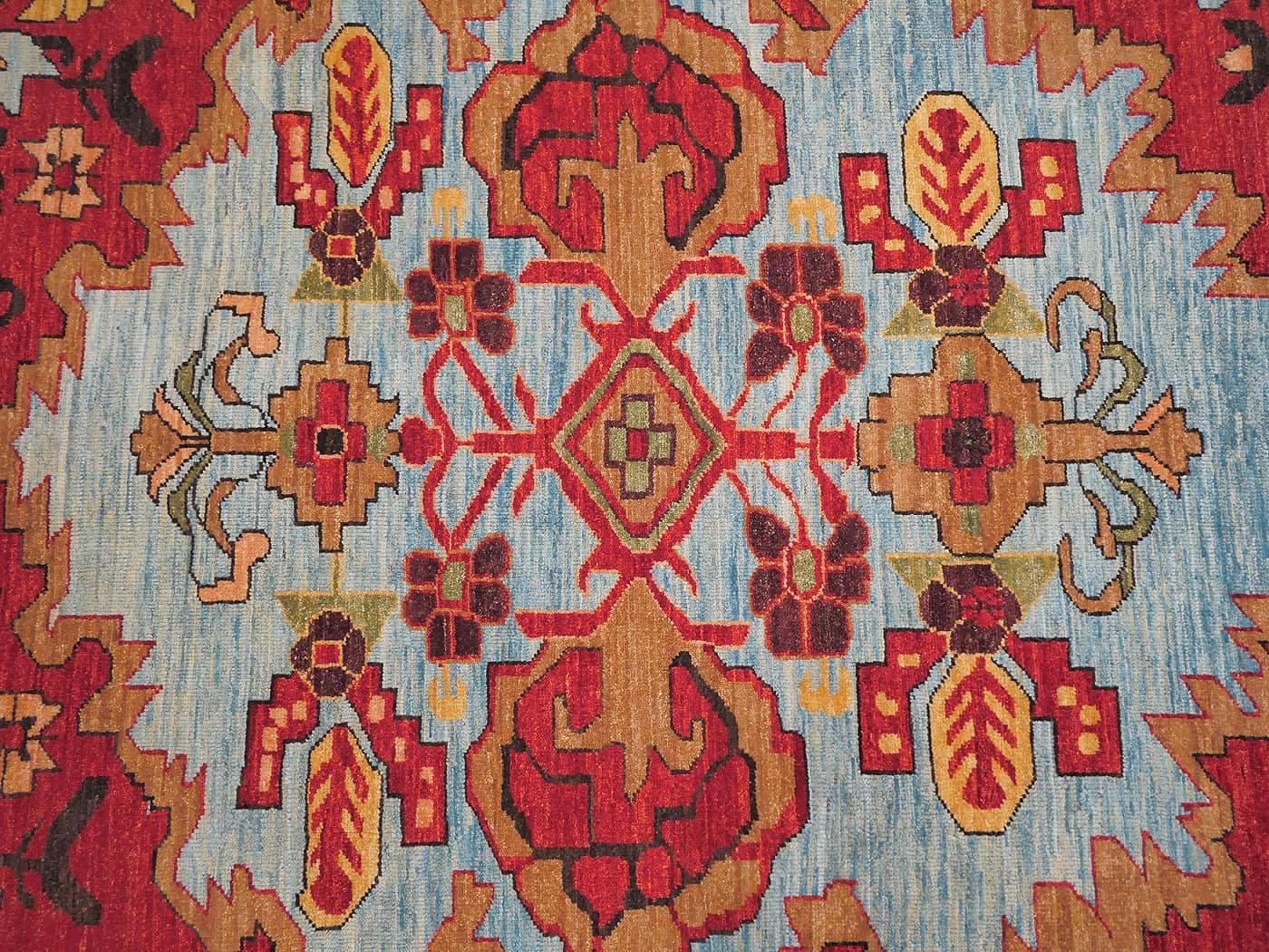 This hand knotted pile rug is made using natural dyes and handspun wool; commissioned by the Nomad Rugs design team and woven by Turquoise Mt. weavers. Thousands of women in Afghanistan are being supported in this weaving project which creates a sustainable livelihood for weaving families. Label Step ensure a comprehensive set of fair trade standards and environmentally friendly production. This rug features a unique Serapi design in rich colors and a fine 100kpsi weave. Entirely hand made. FREE Shipping and Easy Returns.