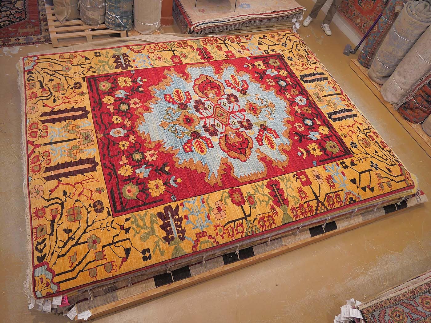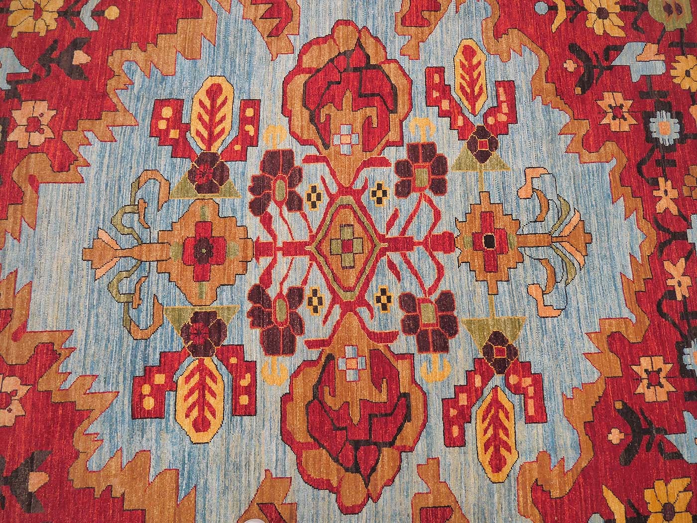 This hand knotted pile rug is made using natural dyes and handspun wool; commissioned by the Nomad Rugs design team and woven by Turquoise Mt. weavers. Thousands of women in Afghanistan are being supported in this weaving project which creates a sustainable livelihood for weaving families. Label Step ensure a comprehensive set of fair trade standards and environmentally friendly production. This rug features a unique Serapi design in rich colors and a fine 100kpsi weave. Entirely hand made. FREE Shipping and Easy Returns.