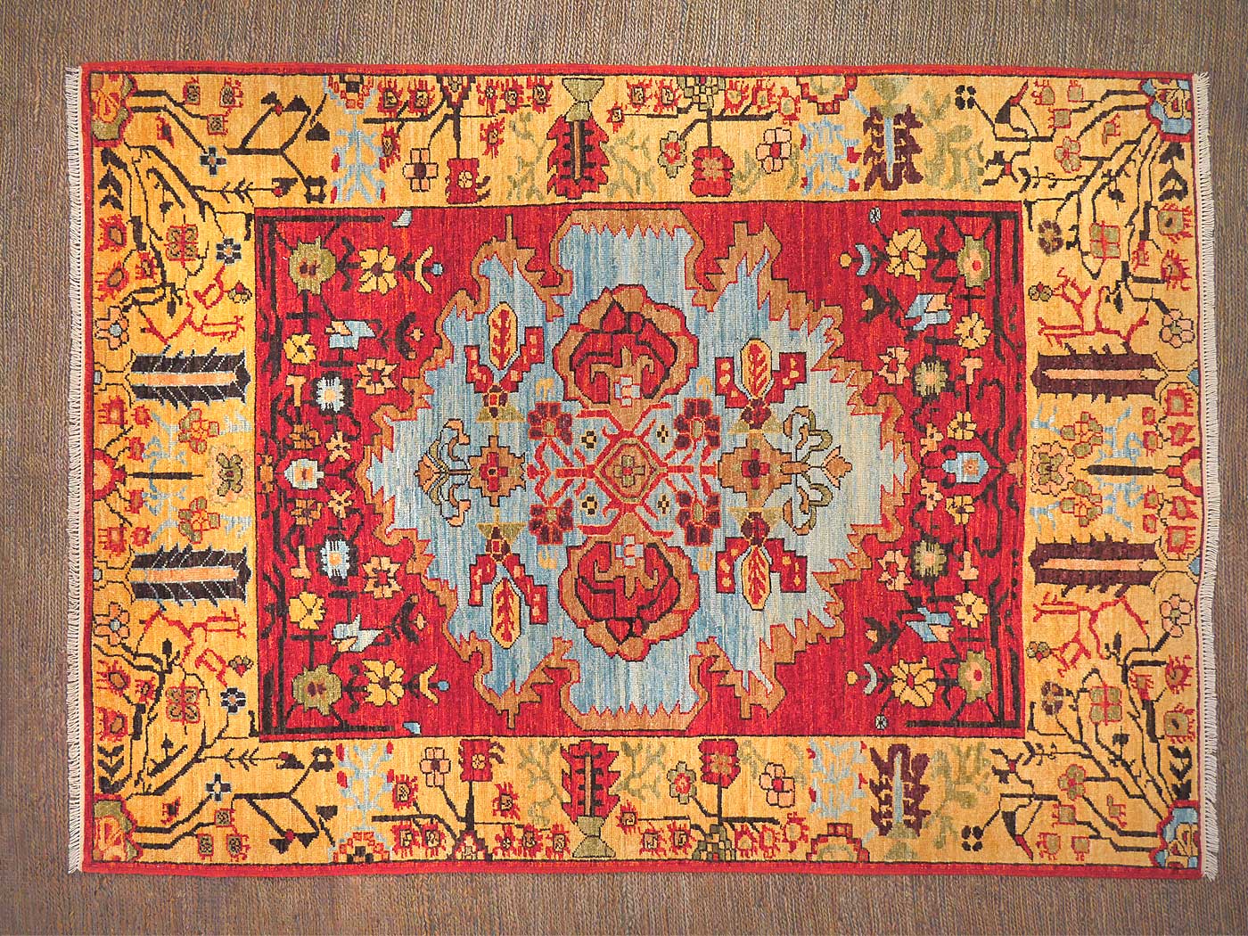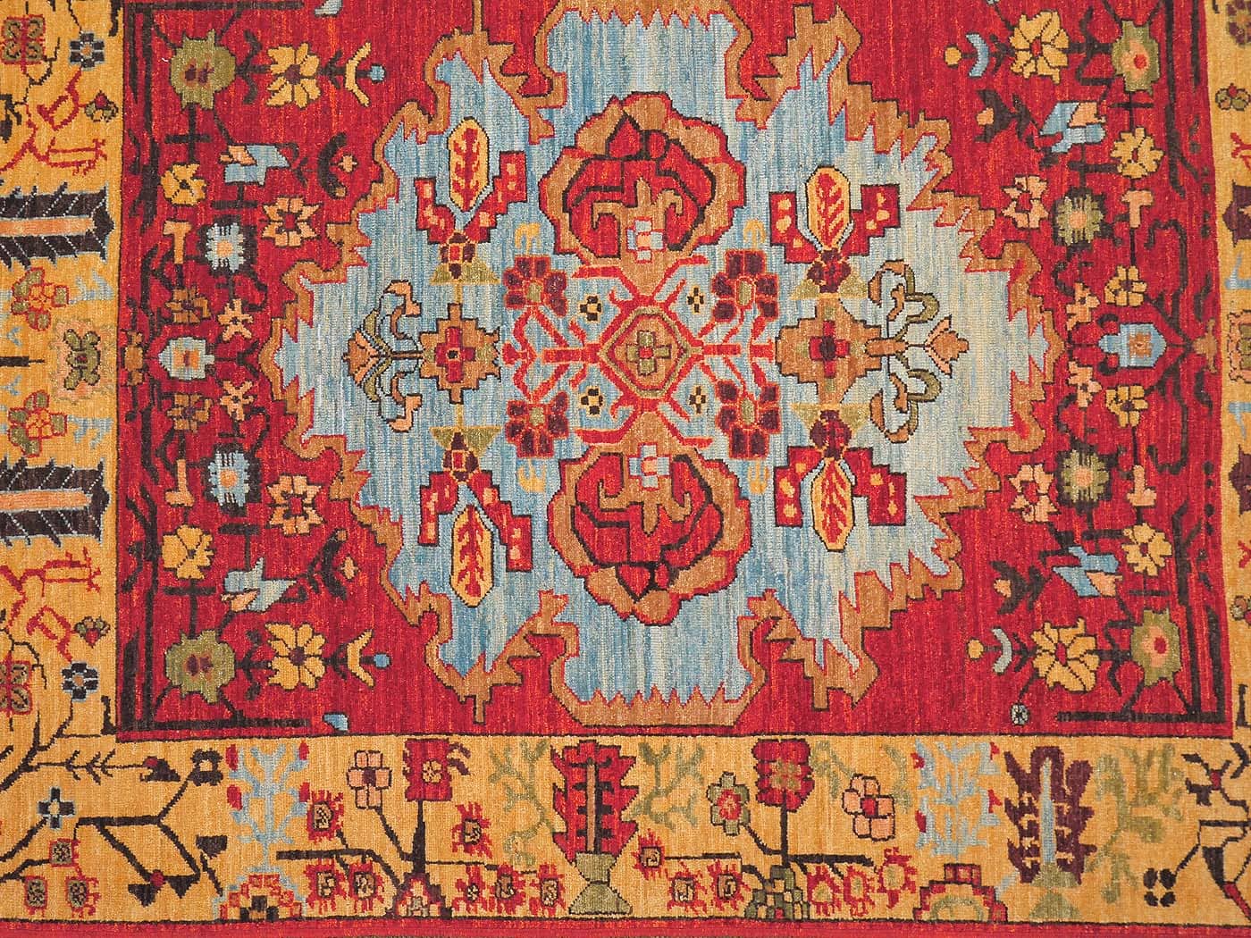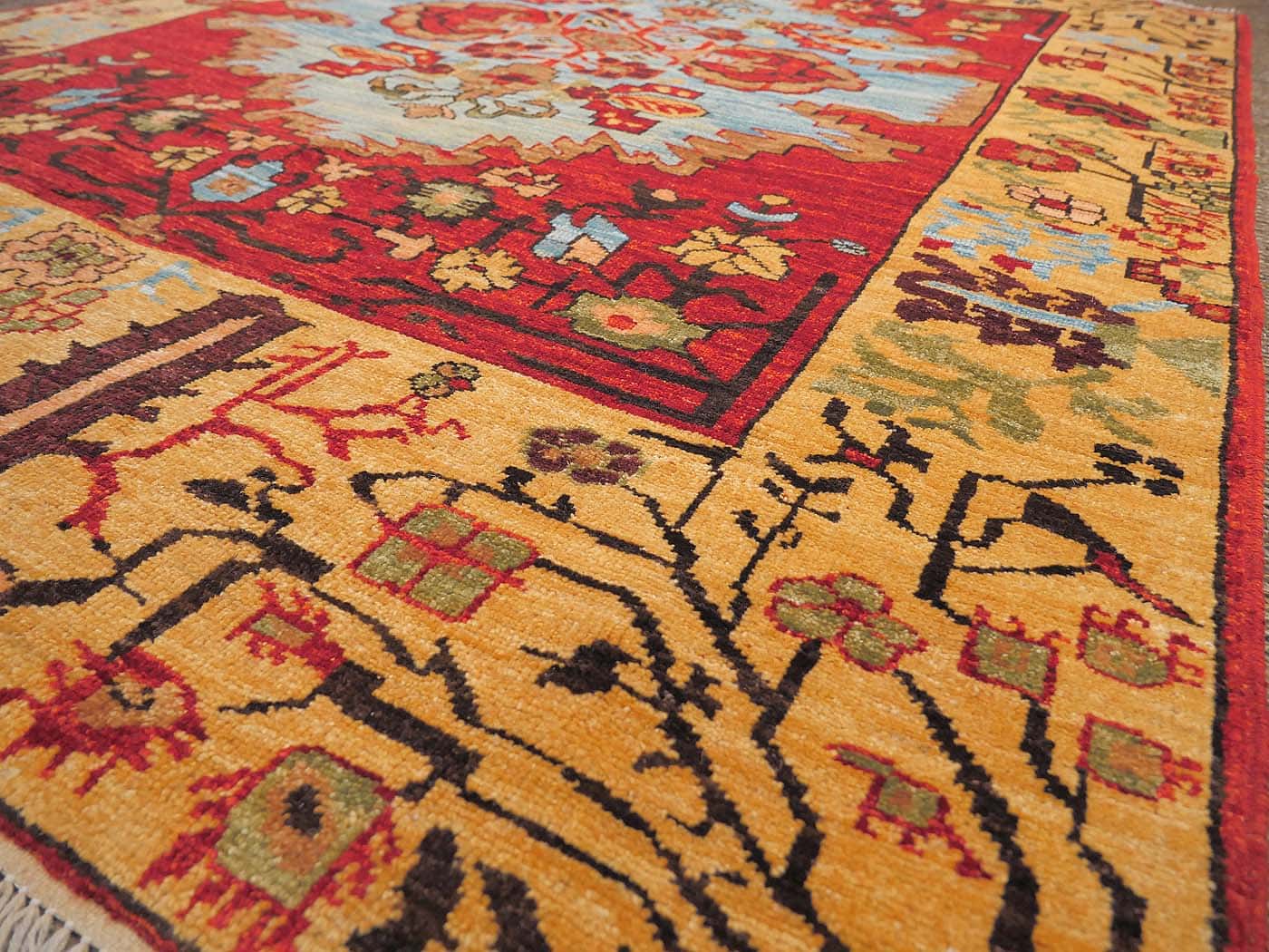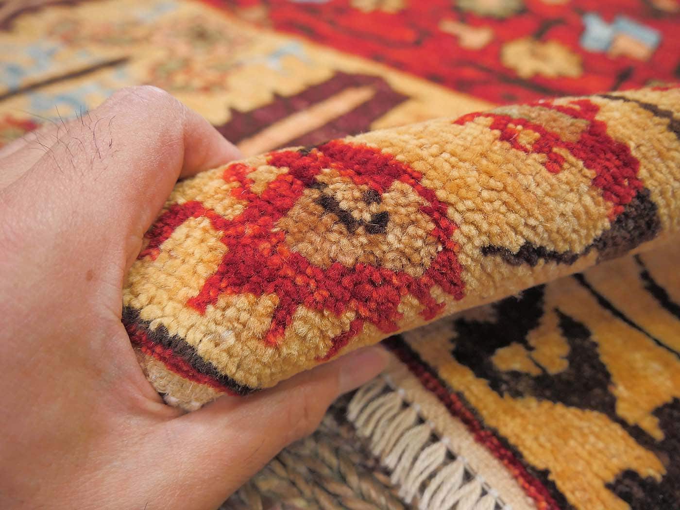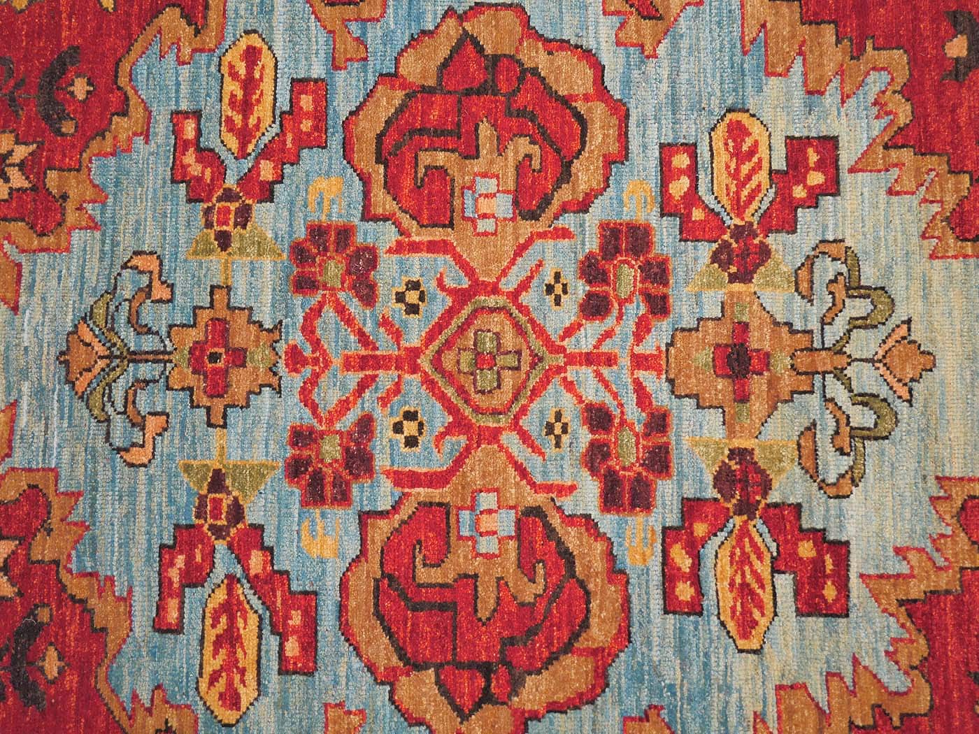 This hand knotted pile rug is made using natural dyes and handspun wool; commissioned by the Nomad Rugs design team and woven by Turquoise Mt. weavers. Thousands of women in Afghanistan are being supported in this weaving project which creates a sustainable livelihood for weaving families. Label Step ensure a comprehensive set of fair trade standards and environmentally friendly production. This rug features a unique Serapi design in rich colors and a fine 100kpsi weave. Entirely hand made. FREE Shipping and Easy Returns.