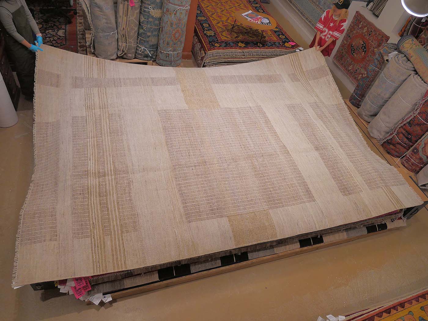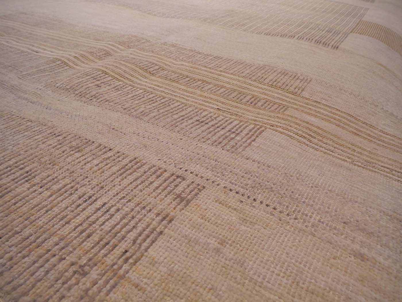 Hand knotted pile rug made handspun wool. This wonderful carpet has a distinctly modern look. It is knotted in a textured weave of around 40kpsi. This knotting along with the short cut handspun wool and linear designs give this rug a sophisticated look and feel. Add unique texture and design to your home and very soft texture underfoot. Entirely hand made and hand knotted. FREE Shipping and Easy Returns.
