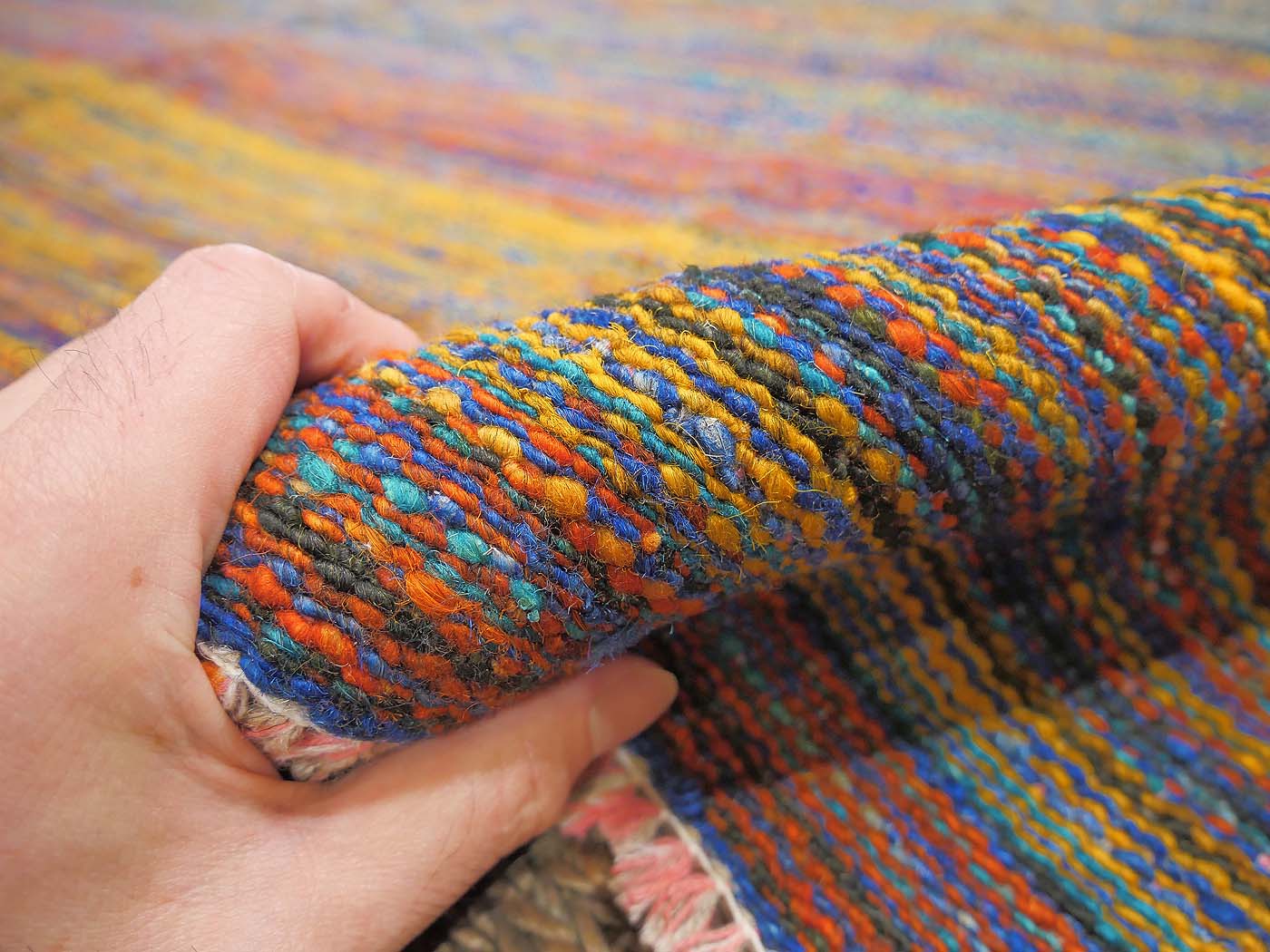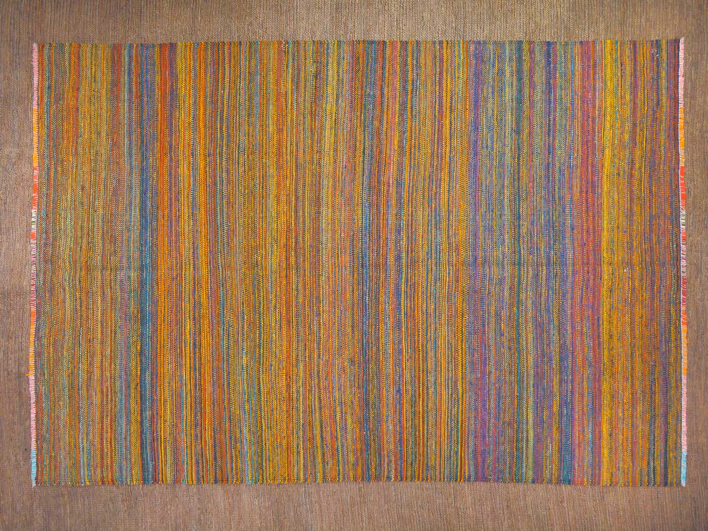 This handmade kilim rug is tightly flat woven in a tapestry weave technique. Made exclusively for Nomad Rugs with natural dyes and handspun wool. These kilims have a slightly primitive texture and a rich abrash. These kilims are inspired by world textiles and modern abstractions. These are simply the nicest hand woven kilim rugs made today. Entirely hand made. FREE Shipping and Easy Returns.