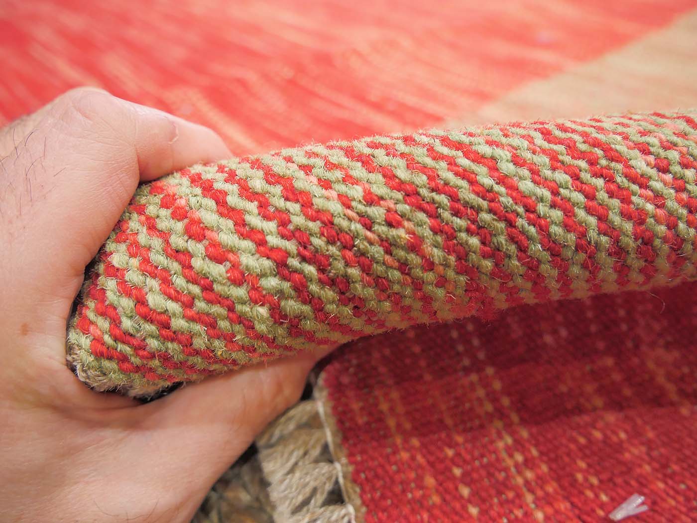 This handmade kilim rug is tightly flat woven in a tapestry weave technique. Made exclusively for Nomad Rugs with natural dyes and handspun wool. These kilims have a slightly primitive texture and a rich abrash. These kilims are inspired by world textiles and modern abstractions. These are simply the nicest hand woven kilim rugs made today. Entirely hand made. FREE Shipping and Easy Returns.