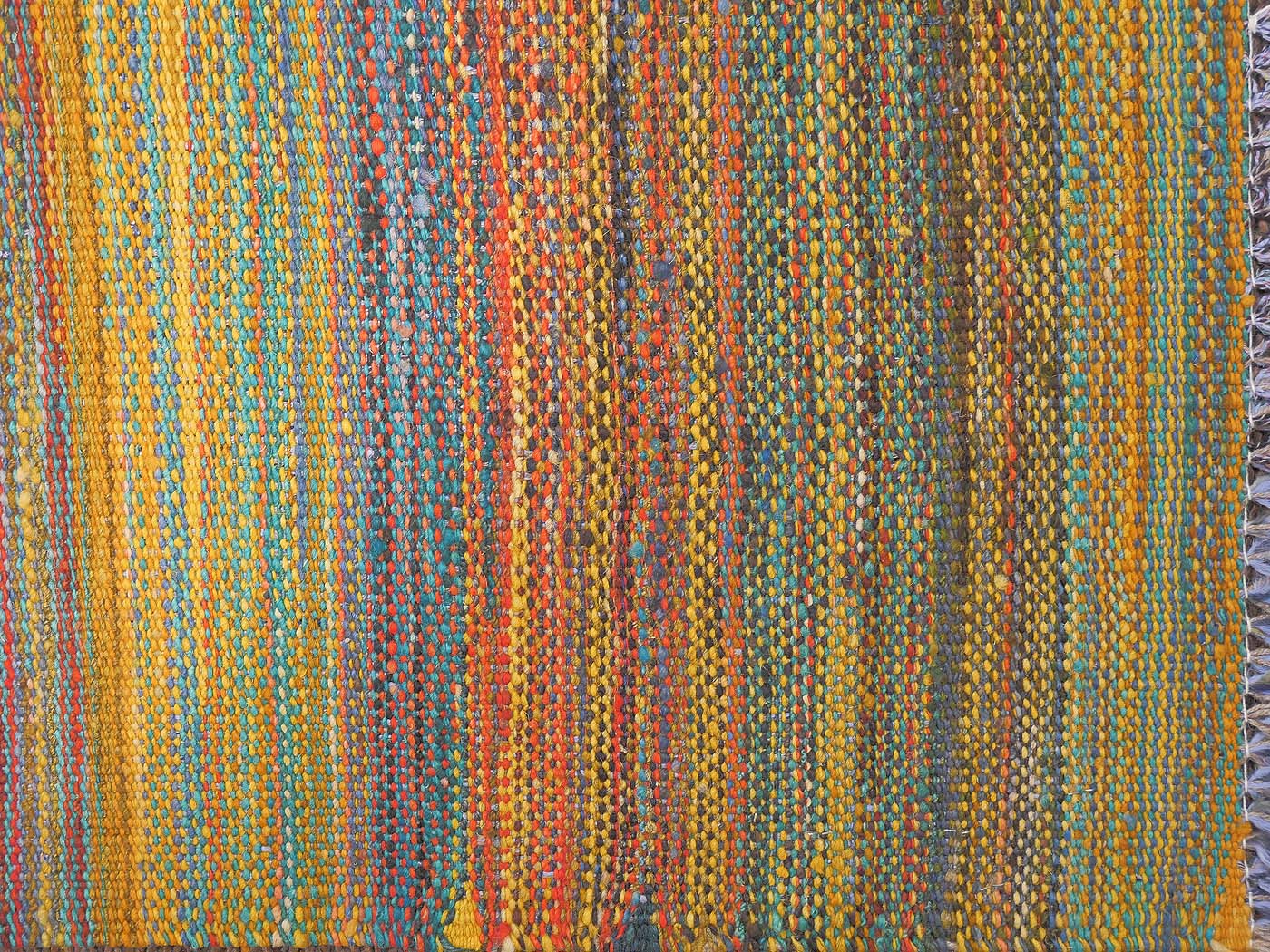 This handmade kilim rug is tightly flat woven in a tapestry weave technique. Made exclusively for Nomad Rugs with natural dyes and handspun wool. These kilims have a slightly primitive texture and a rich abrash. These kilims are inspired by world textiles and modern abstractions. These are simply the nicest hand woven kilim rugs made today. Entirely hand made. FREE Shipping and Easy Returns.