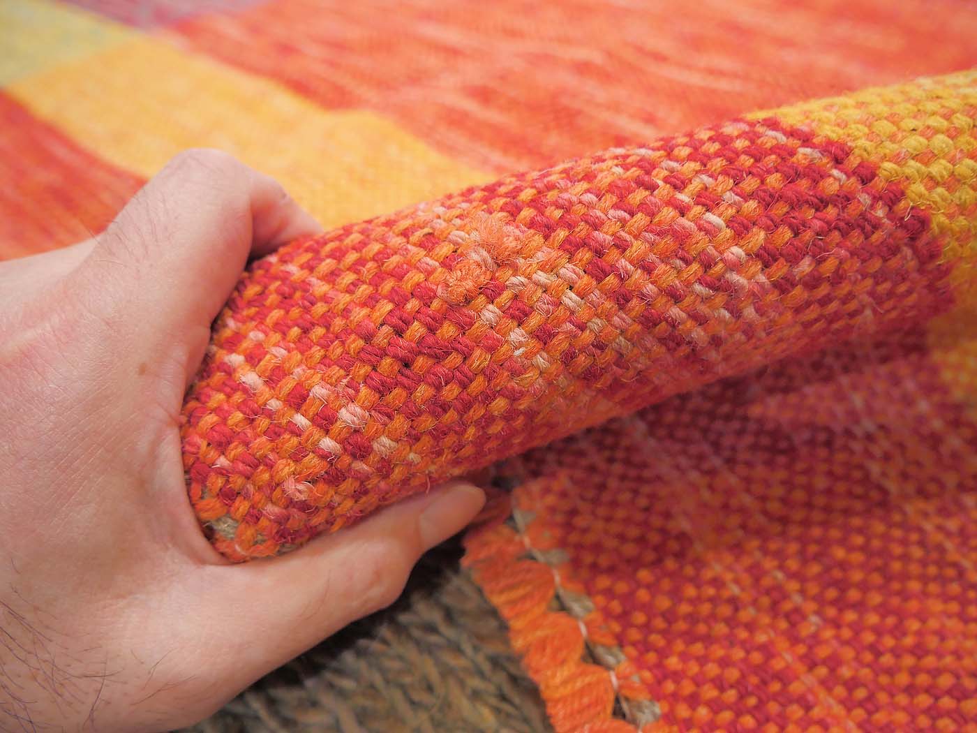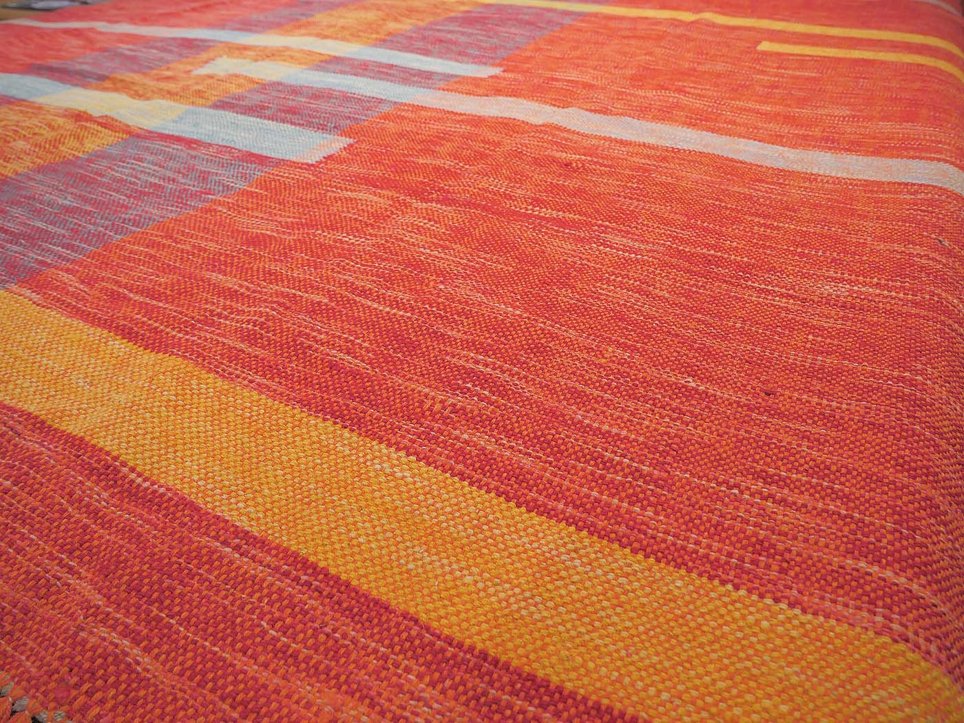 This handmade kilim rug is tightly flat woven in a tapestry weave technique. Made exclusively for Nomad Rugs with natural dyes and handspun wool. These kilims have a slightly primitive texture and a rich abrash. These kilims are inspired by world textiles and modern abstractions. These are simply the nicest hand woven kilim rugs made today. Entirely hand made. FREE Shipping and Easy Returns.