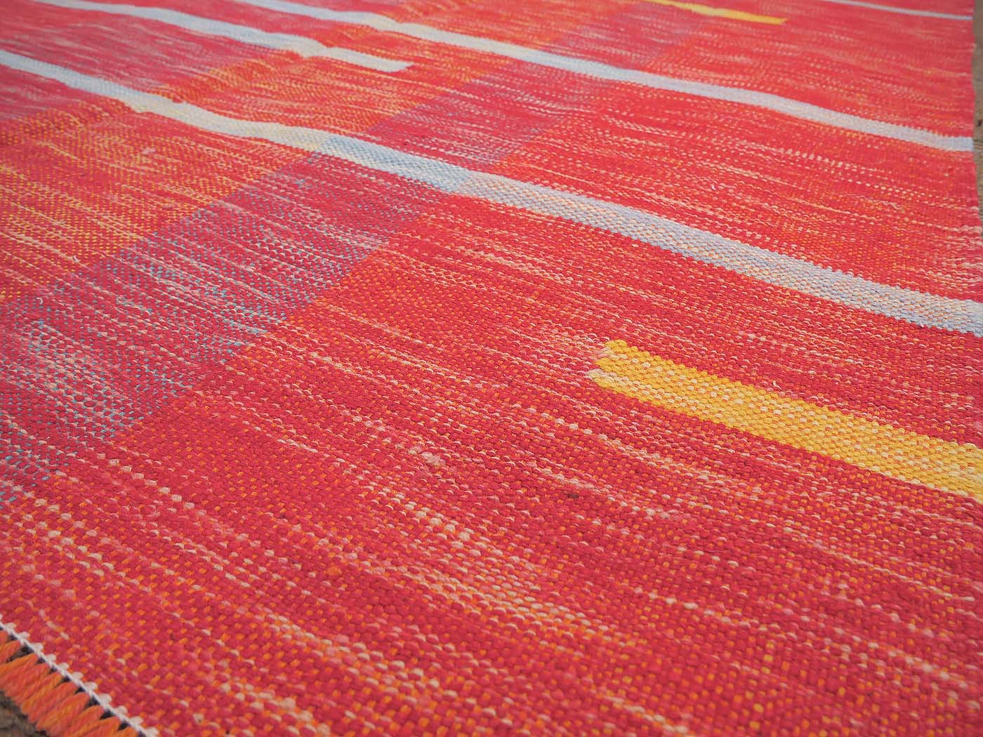 This handmade kilim rug is tightly flat woven in a tapestry weave technique. Made exclusively for Nomad Rugs with natural dyes and handspun wool. These kilims have a slightly primitive texture and a rich abrash. These kilims are inspired by world textiles and modern abstractions. These are simply the nicest hand woven kilim rugs made today. Entirely hand made. FREE Shipping and Easy Returns.