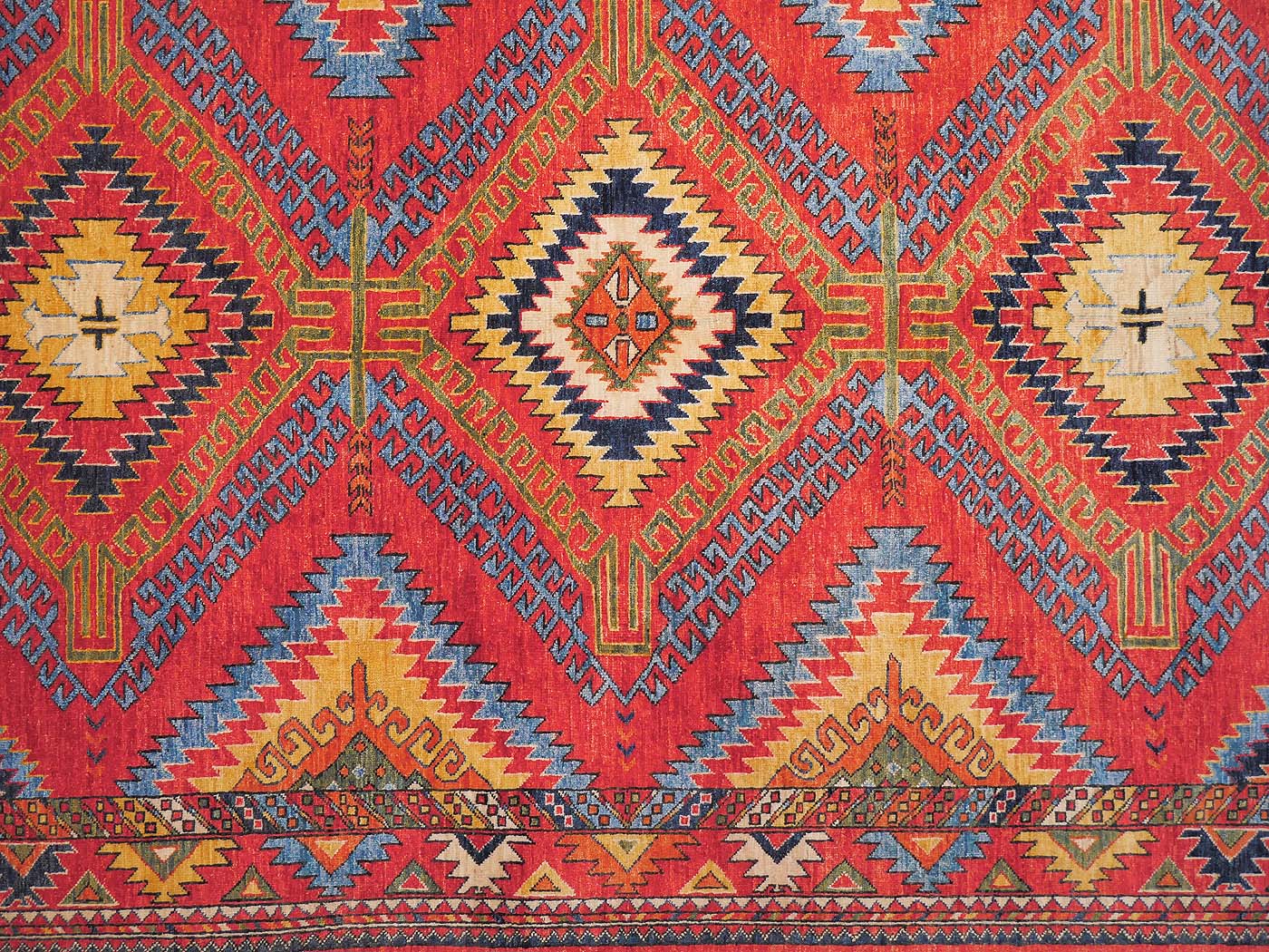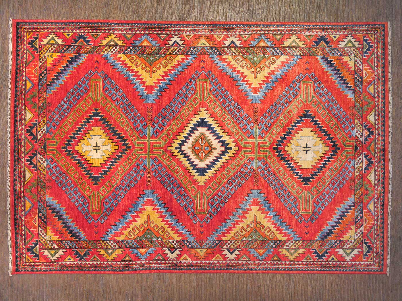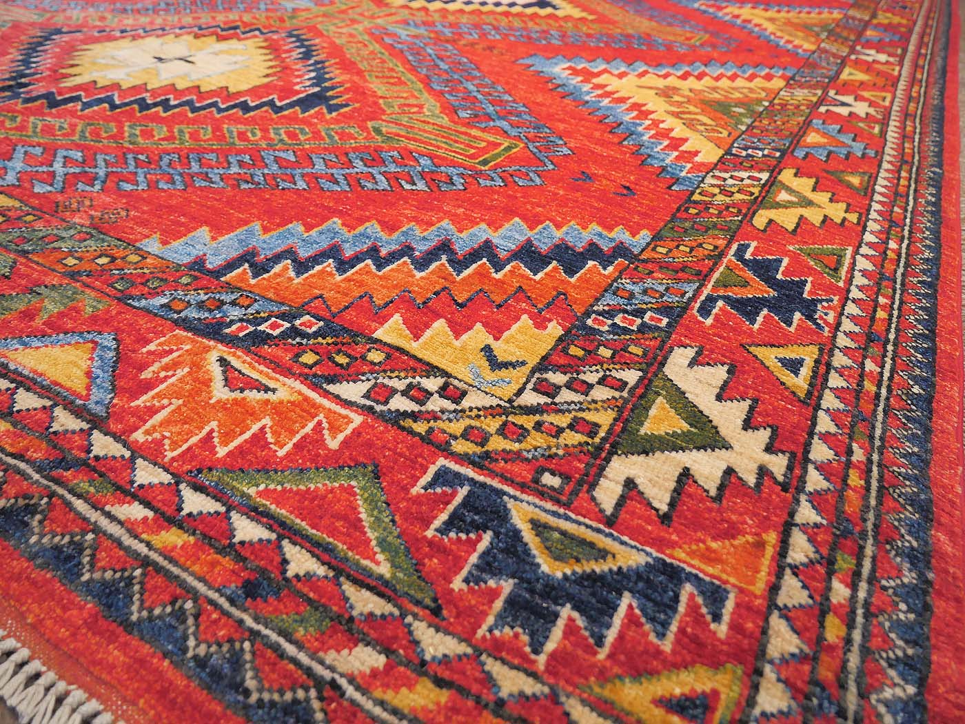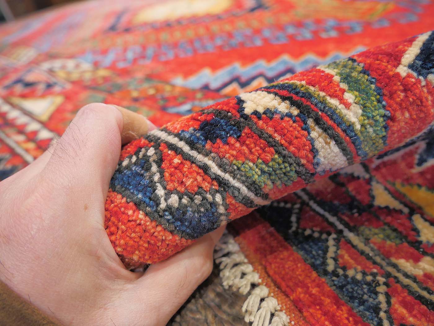 This hand knotted pile tribal rug is made with all natural dyes and handspun wool. This rug was woven in a project whose goal is to pay homage to the art of the traditional tribal carpets. This rug is more finely woven with around 100kpsi and all wool warps and wefts. This particular rug has a classic Mushwani Belouch design with its eye-dazzler motif and rich colors. This weaving project has produced some of my all-time favorite tribal rugs. Entirely hand made. FREE Shipping and Easy Returns.