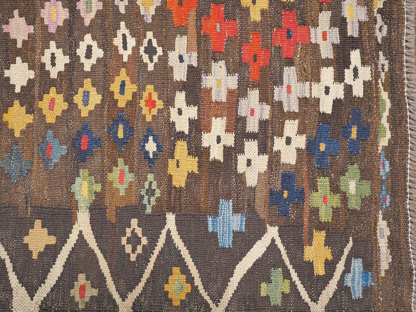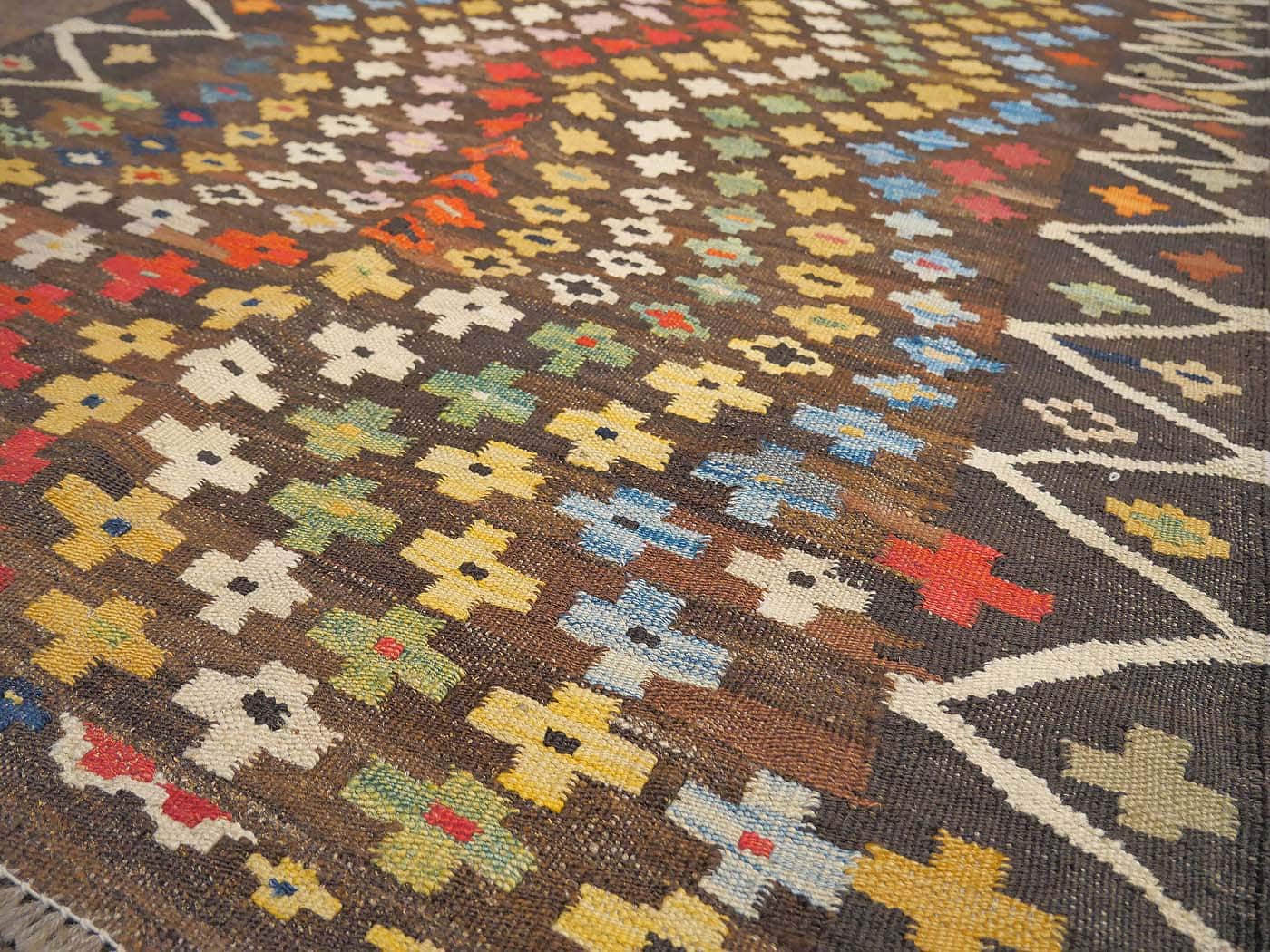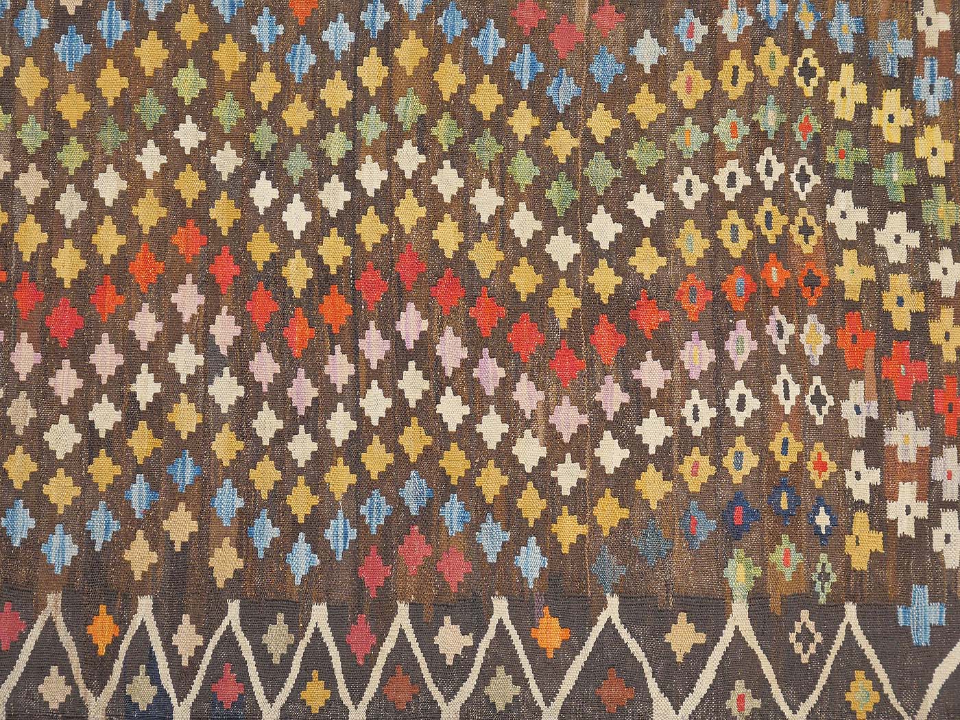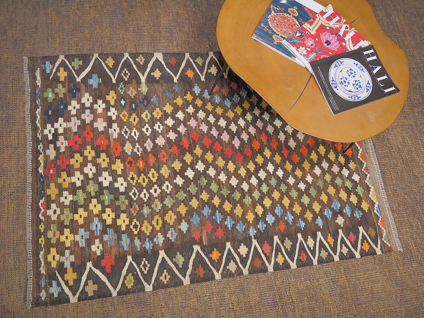 This handmade kilim rug is tightly flat woven in a tapestry weave technique. Made exclusively for Nomad Rugs with natural dyes and handspun wool. These kilims have a slightly primitive texture and a rich abrash which makes them look much like the antique kilims prized by collectors. We search far and wide for the designs that we gleam from an eclectic array of sources including classic tribal flat weaves, world textiles and modern abstractions. These are simply the nicest hand woven kilim rugs made today. FREE Shipping and Easy Returns.