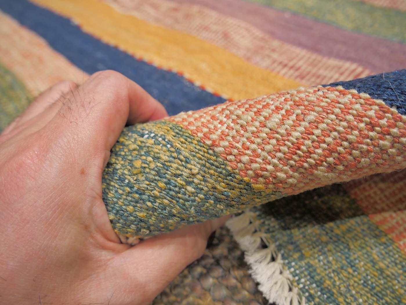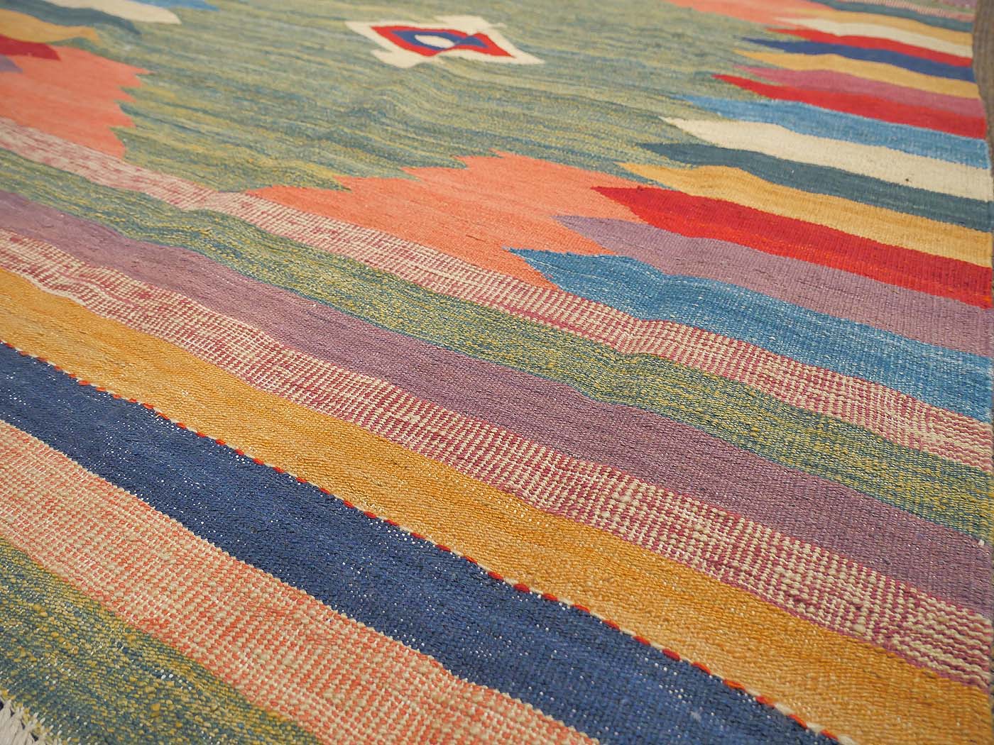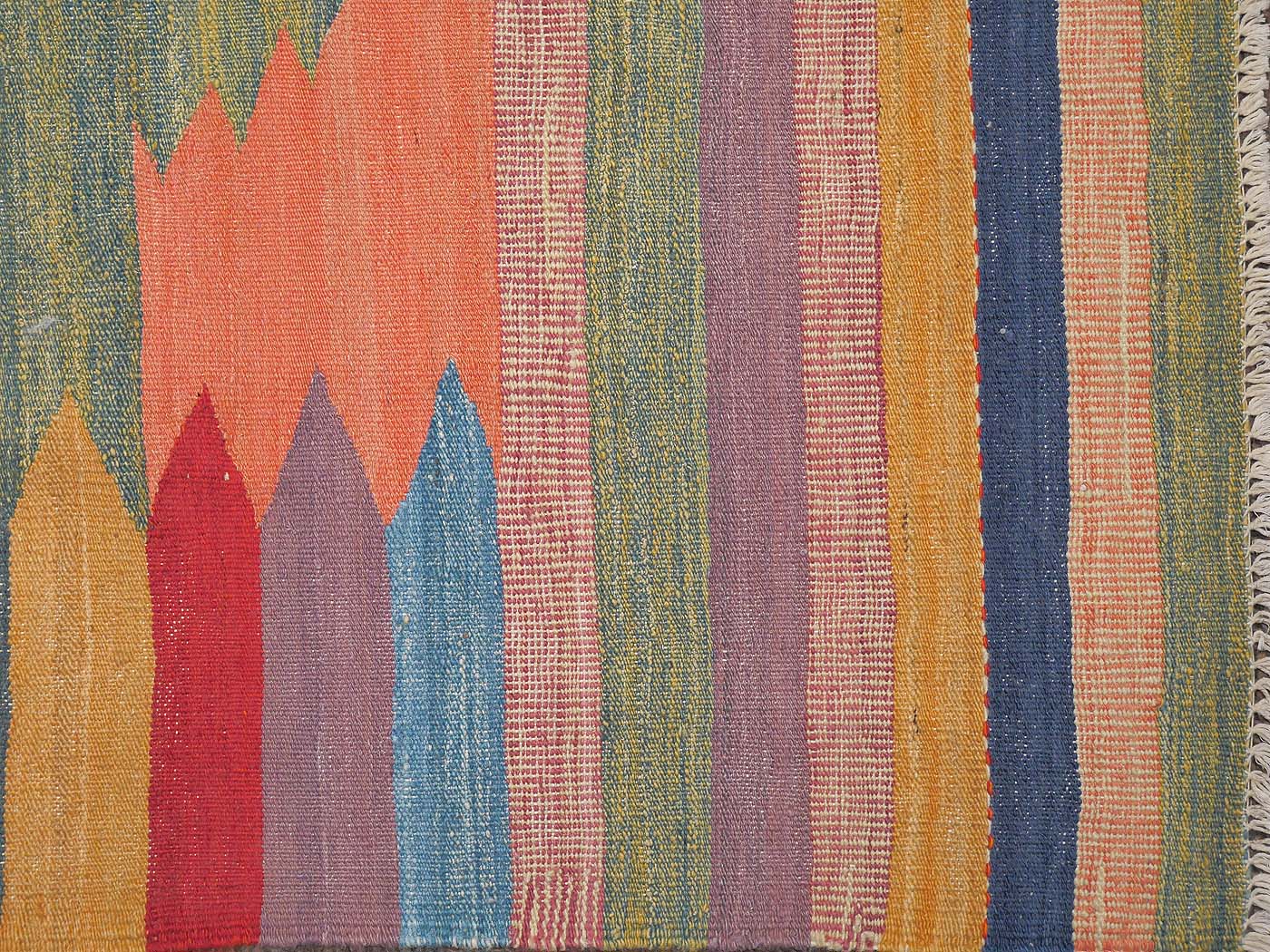 This handmade kilim rug is tightly flat woven in a tapestry weave technique. Made exclusively for Nomad Rugs by Turquoise Mt. weavers. Thousands of women in Afghanistan are being supported in this weaving project which creates a sustainable livelihood for weaving families. These kilims have a slightly primitive texture and a rich abrash. The designs are gleamed from an eclectic array of sources including classic tribal flat weaves, world textiles and modern abstractions; some of the nicest hand woven kilim rugs made today! FREE Shipping and Easy Returns.