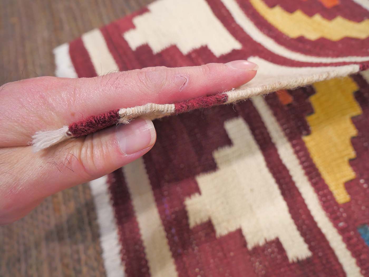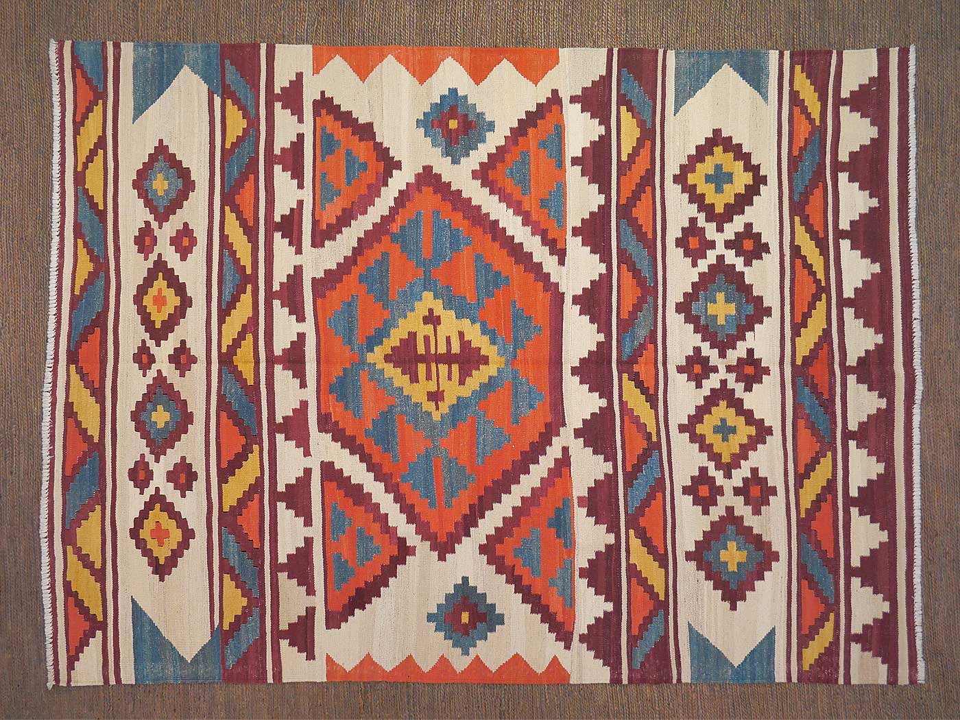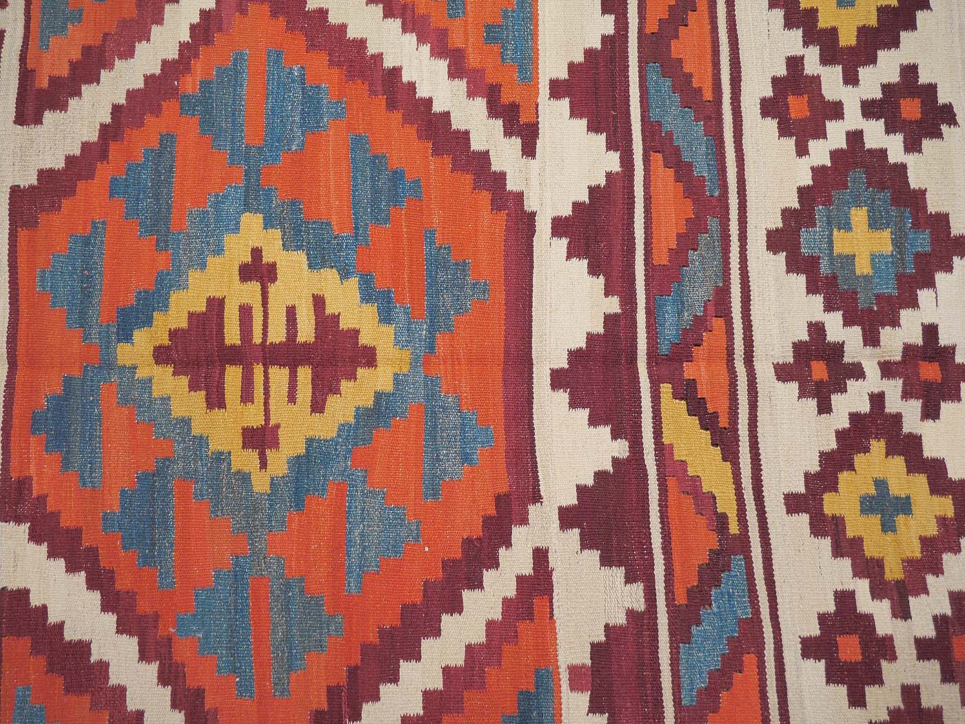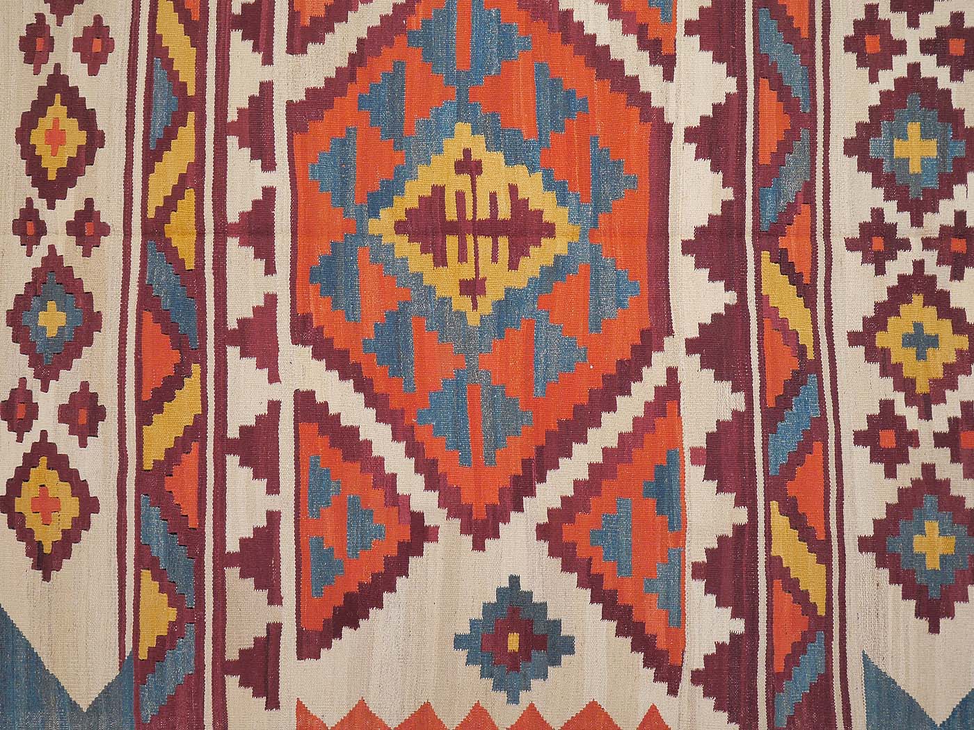 This handmade kilim rug is tightly flat woven in a tapestry weave technique. Made exclusively for Nomad Rugs with natural dyes and handspun wool. These kilims have a slightly primitive texture and a rich abrash which makes them look much like the antique kilims prized by collectors. We search far and wide for the designs that we gleam from an eclectic array of sources including classic tribal flat weaves, world textiles and modern abstractions. These are simply the nicest hand woven kilim rugs made today. FREE Shipping and Easy Returns.