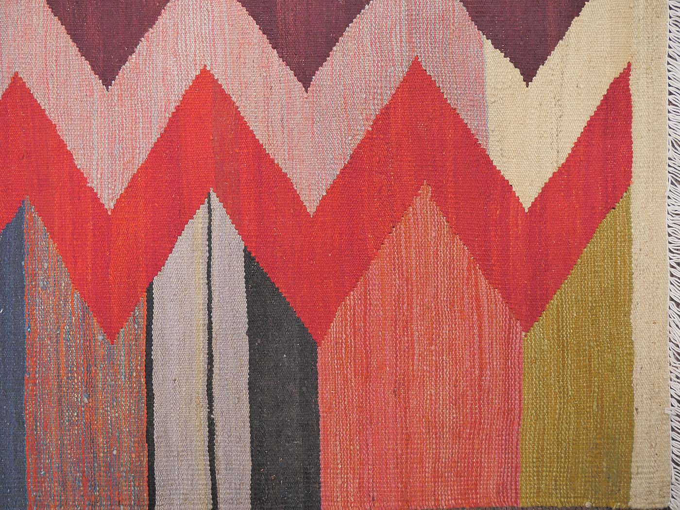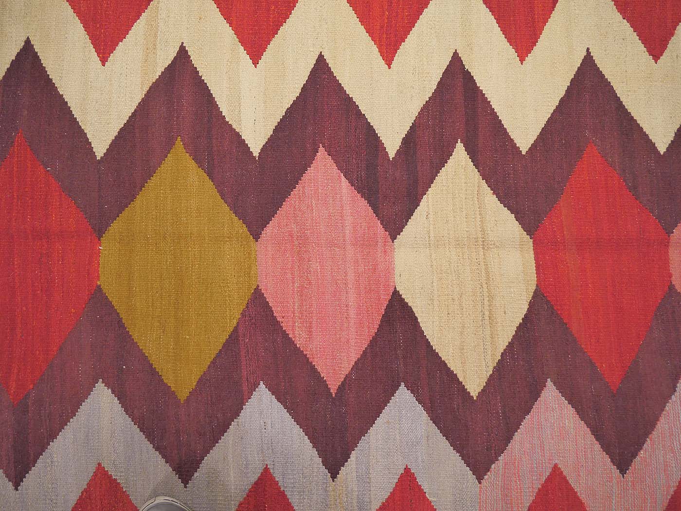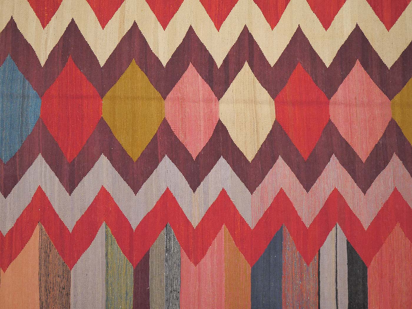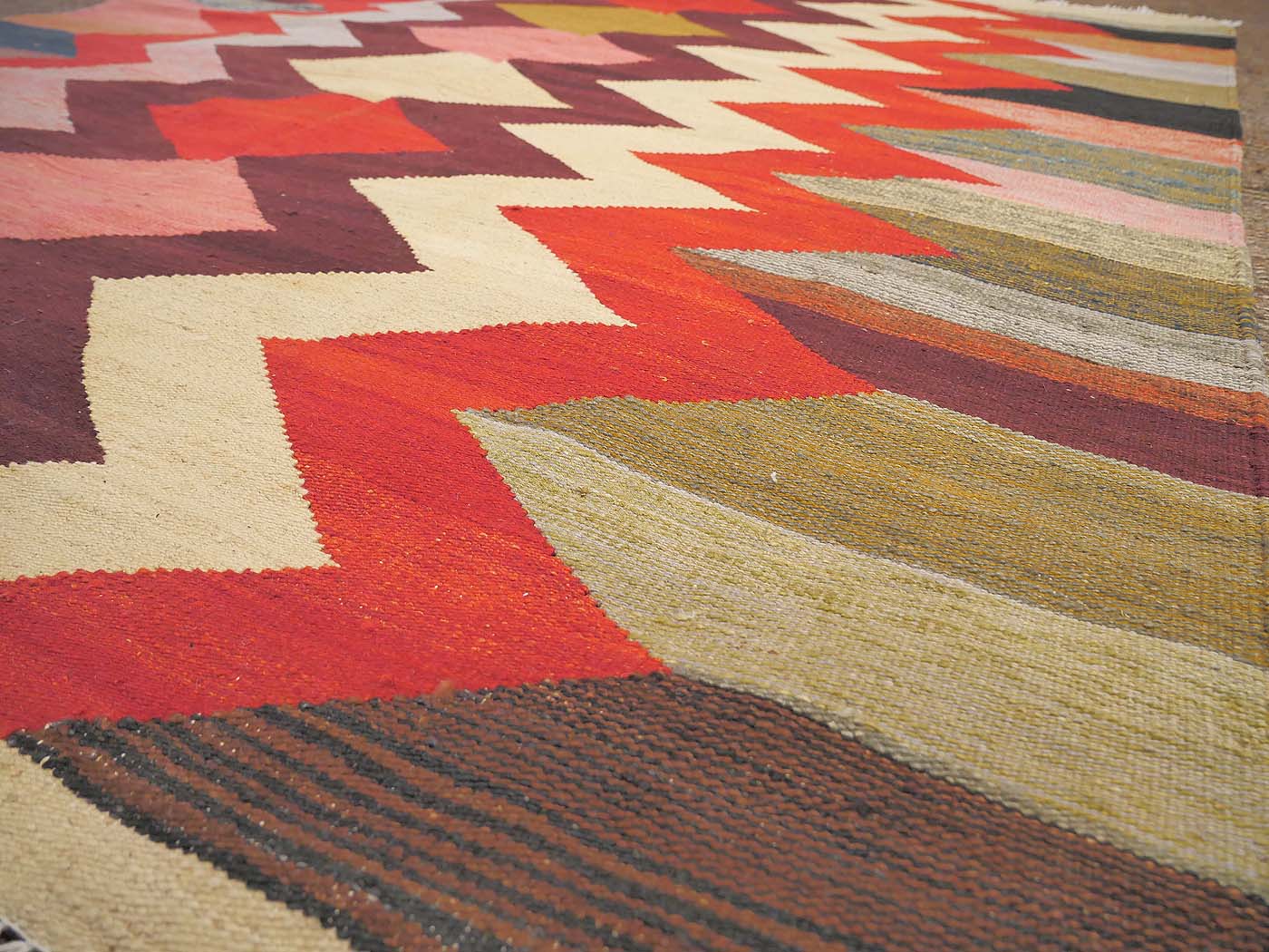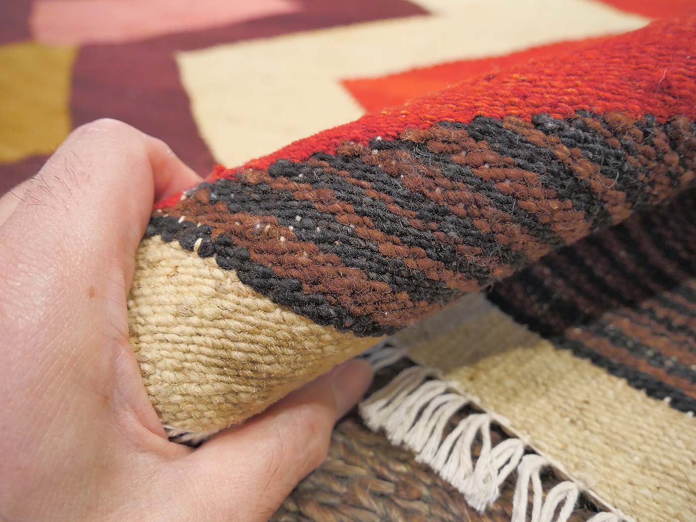 This handmade kilim rug is tightly flat woven in a tapestry weave technique. Made exclusively for Nomad Rugs with natural dyes and handspun wool. These kilims have a slightly primitive texture and a rich abrash which makes them look much like the antique kilims prized by collectors. We search far and wide for the designs that we gleam from an eclectic array of sources including classic tribal flat weaves, world textiles and modern abstractions. These are simply the nicest hand woven kilim rugs made today. FREE Shipping and Easy Returns.