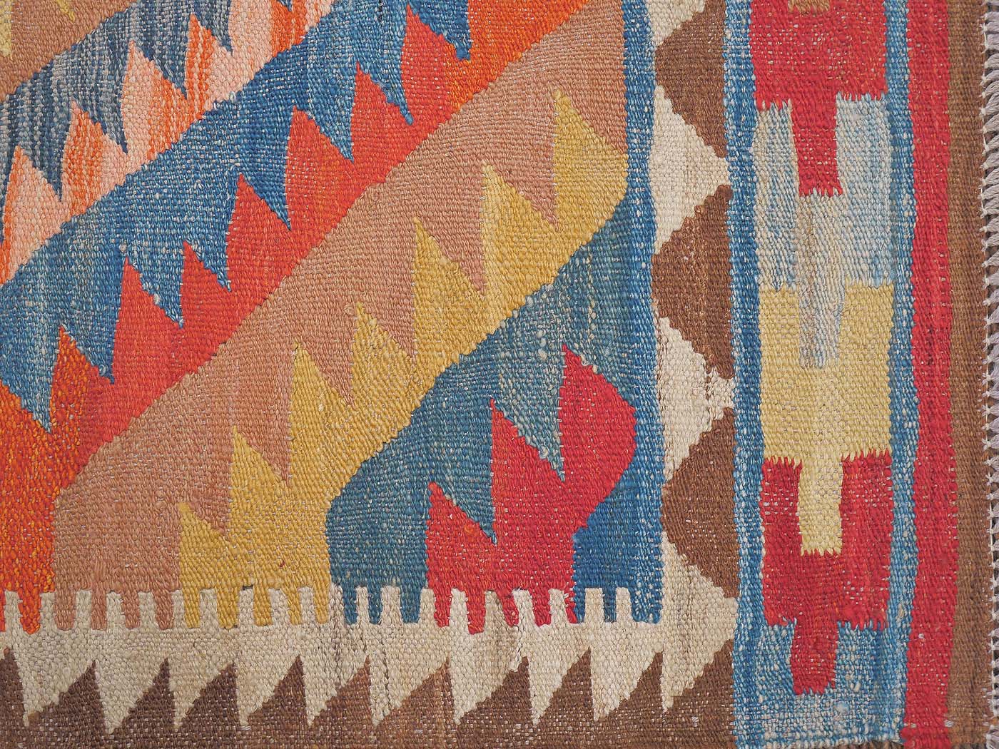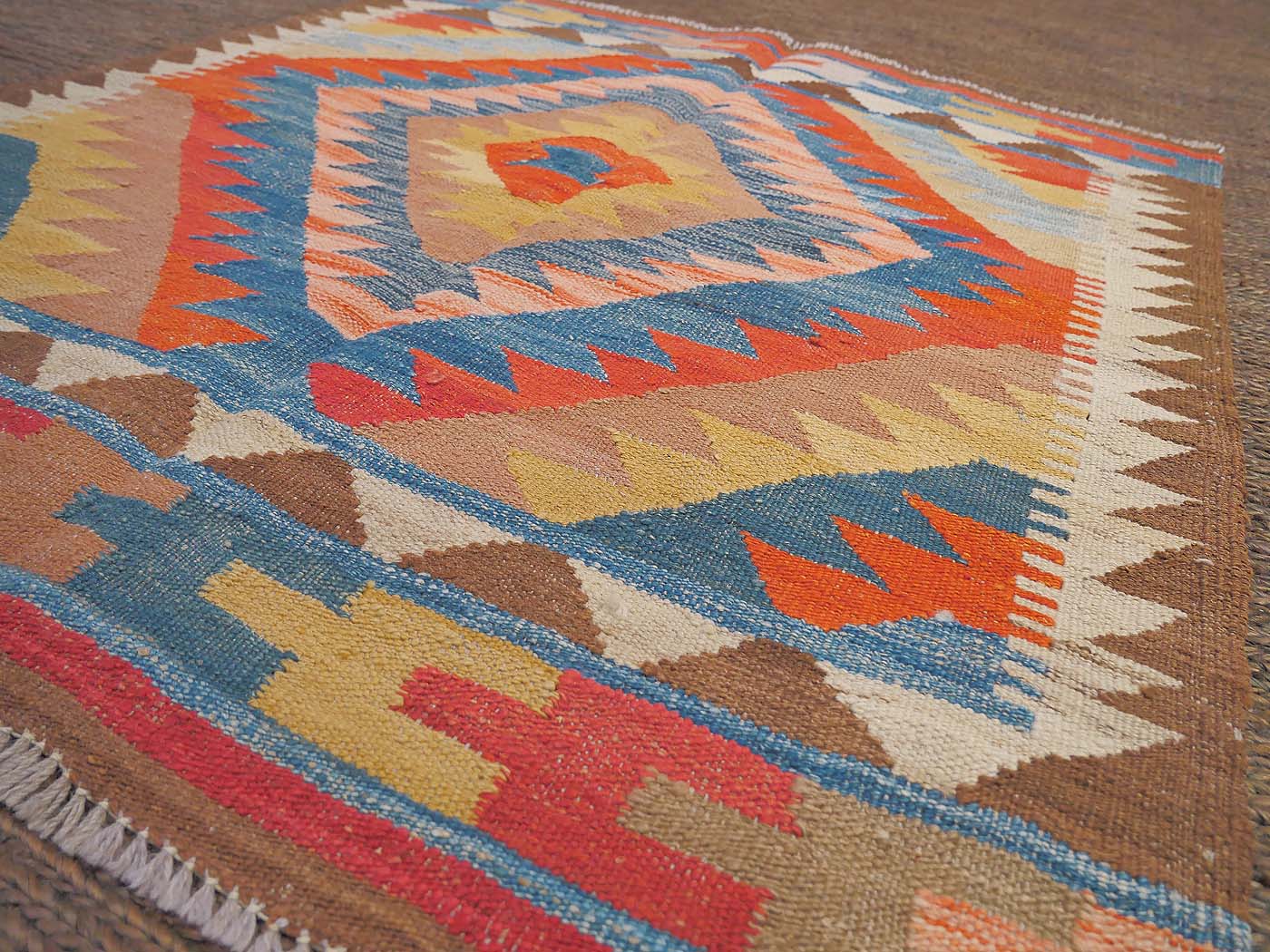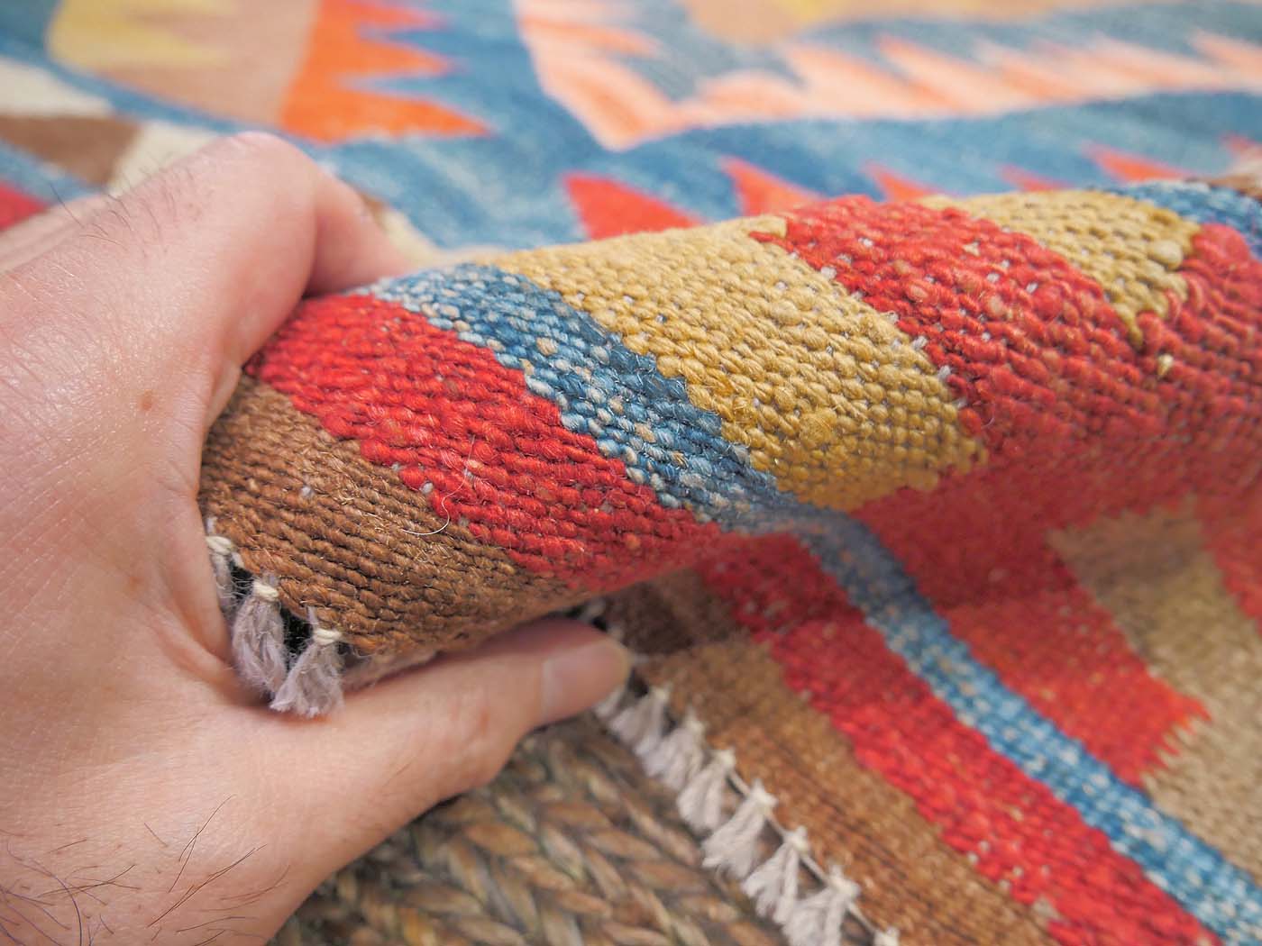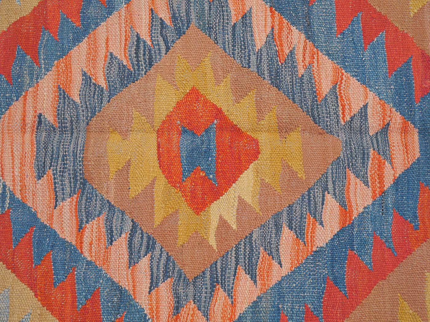 This handmade kilim rug is tightly flat woven in a tapestry weave technique. Made exclusively for Nomad Rugs with natural dyes and handspun wool. These kilims have a slightly primitive texture and a rich abrash which makes them look much like the antique kilims prized by collectors. We search far and wide for the designs that we gleam from an eclectic array of sources including classic tribal flat weaves, world textiles and modern abstractions. These are simply the nicest hand woven kilim rugs made today. FREE Shipping and Easy Returns.
