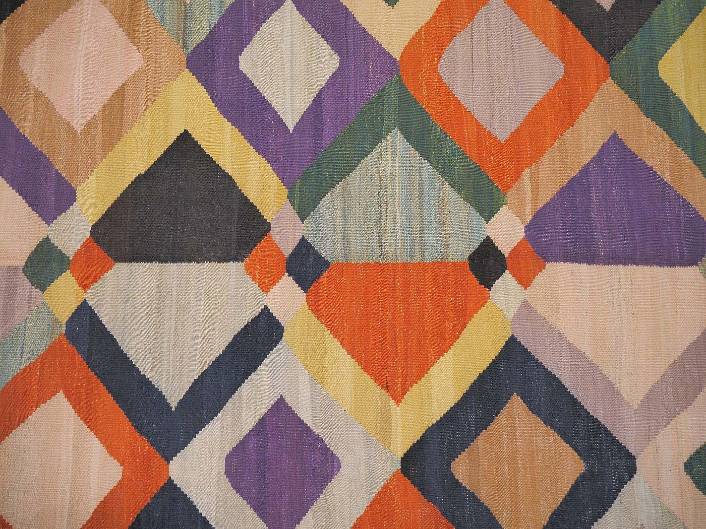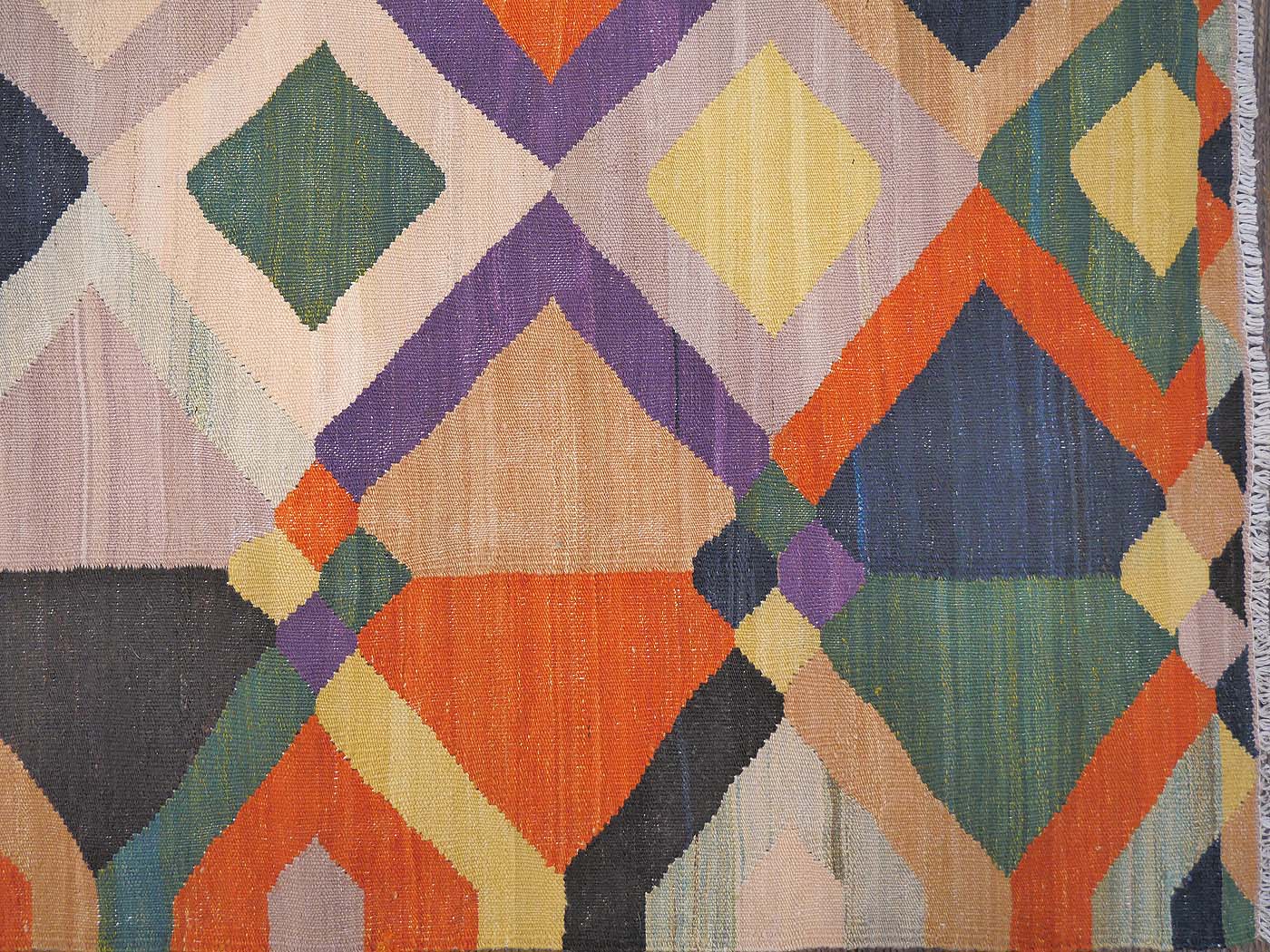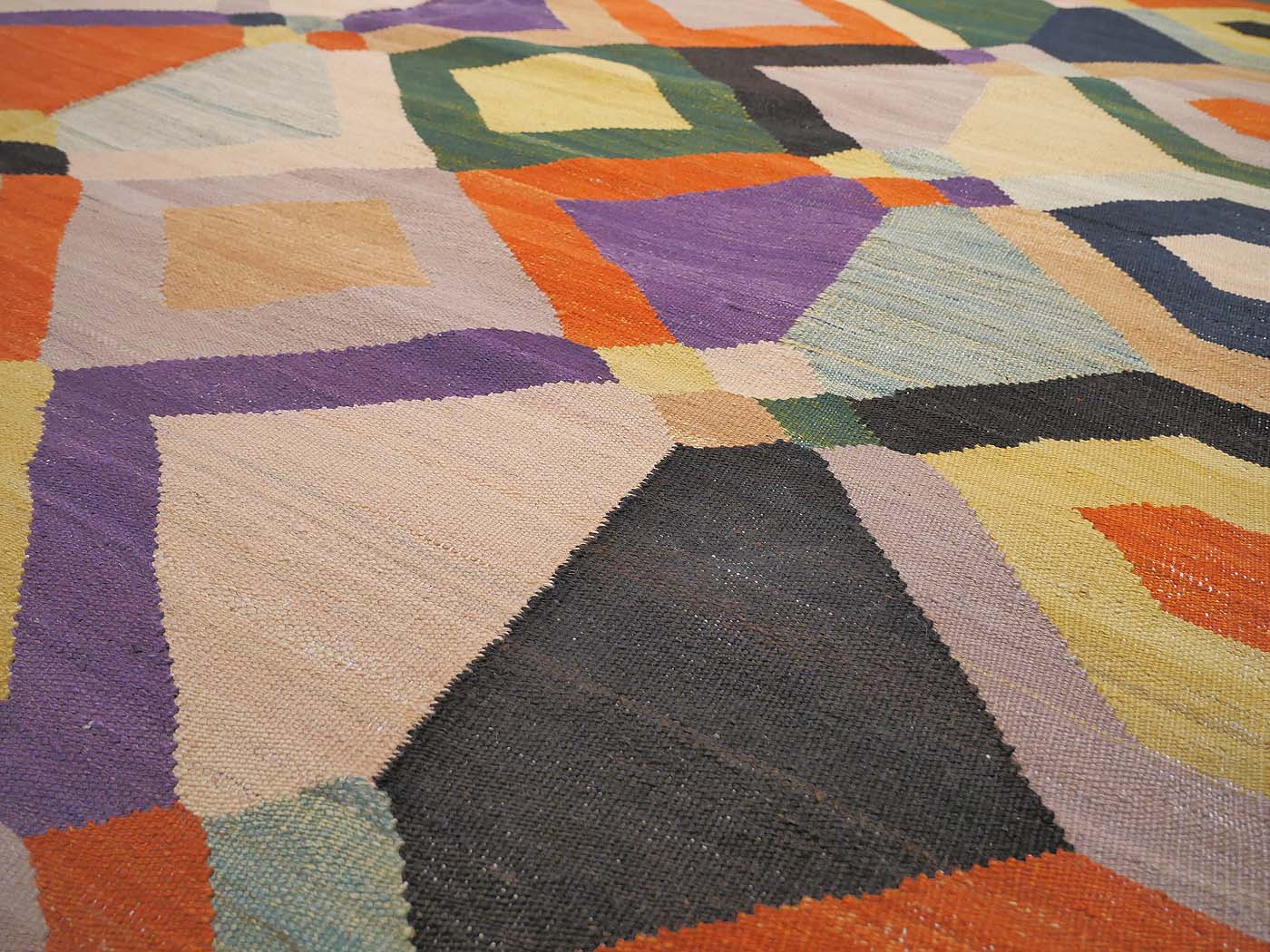 This handmade kilim rug is tightly flat woven in a tapestry weave technique. Made exclusively for Nomad Rugs with natural dyes and handspun wool. These kilims have a slightly primitive texture and a rich abrash which makes them look much like the antique kilims prized by collectors. We search far and wide for the designs that we gleam from an eclectic array of sources including classic tribal flat weaves, world textiles and modern abstractions. These are simply the nicest hand woven kilim rugs made today. FREE Shipping and Easy Returns.