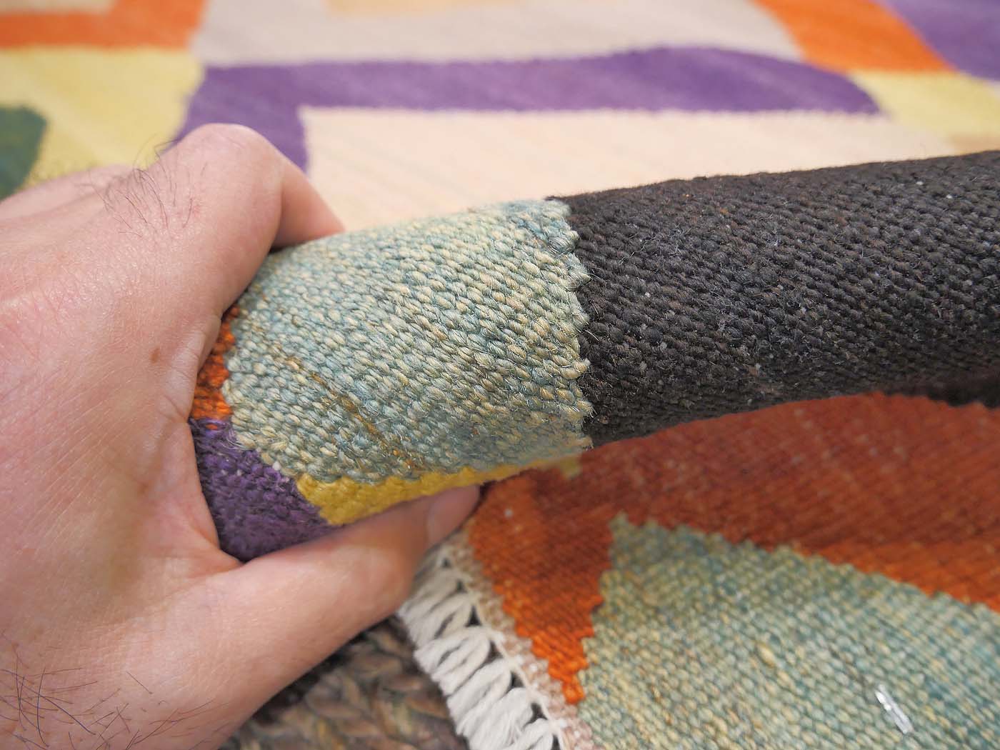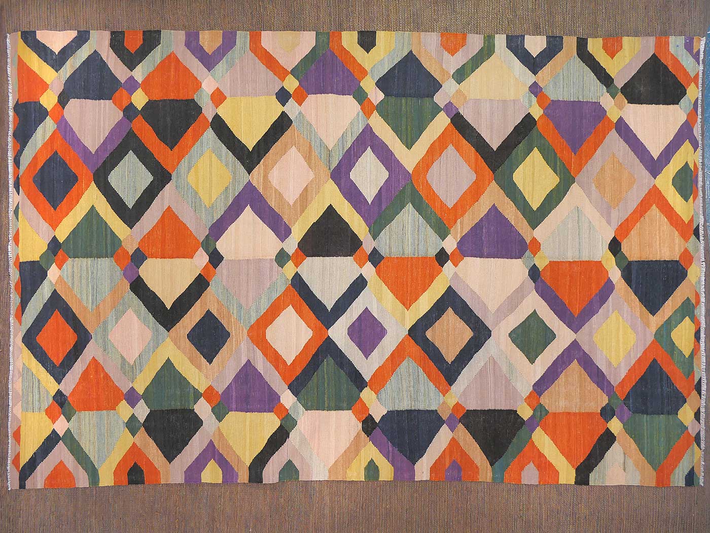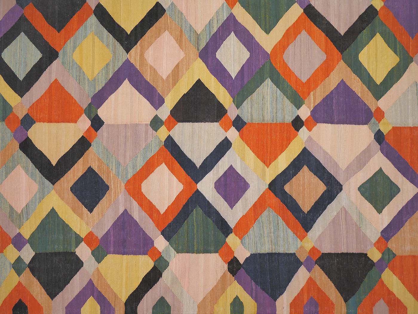 This handmade kilim rug is tightly flat woven in a tapestry weave technique. Made exclusively for Nomad Rugs with natural dyes and handspun wool. These kilims have a slightly primitive texture and a rich abrash which makes them look much like the antique kilims prized by collectors. We search far and wide for the designs that we gleam from an eclectic array of sources including classic tribal flat weaves, world textiles and modern abstractions. These are simply the nicest hand woven kilim rugs made today. FREE Shipping and Easy Returns.