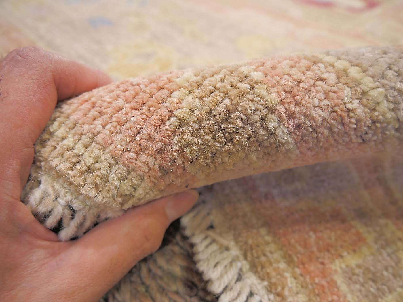 This hand knotted pile rug is made using natural dyes and handspun wool; commissioned by the Nomad Rugs design team and woven by Turquoise Mt. weavers. Thousands of women in Afghanistan are being supported in this weaving project which creates a sustainable livelihood for weaving families. Label Step ensure a comprehensive set of fair trade standards and environmentally friendly production. This rug features a classic Oushak design in soft colors and a 60kpsi weave. Entirely hand made. FREE Shipping and Easy Returns.