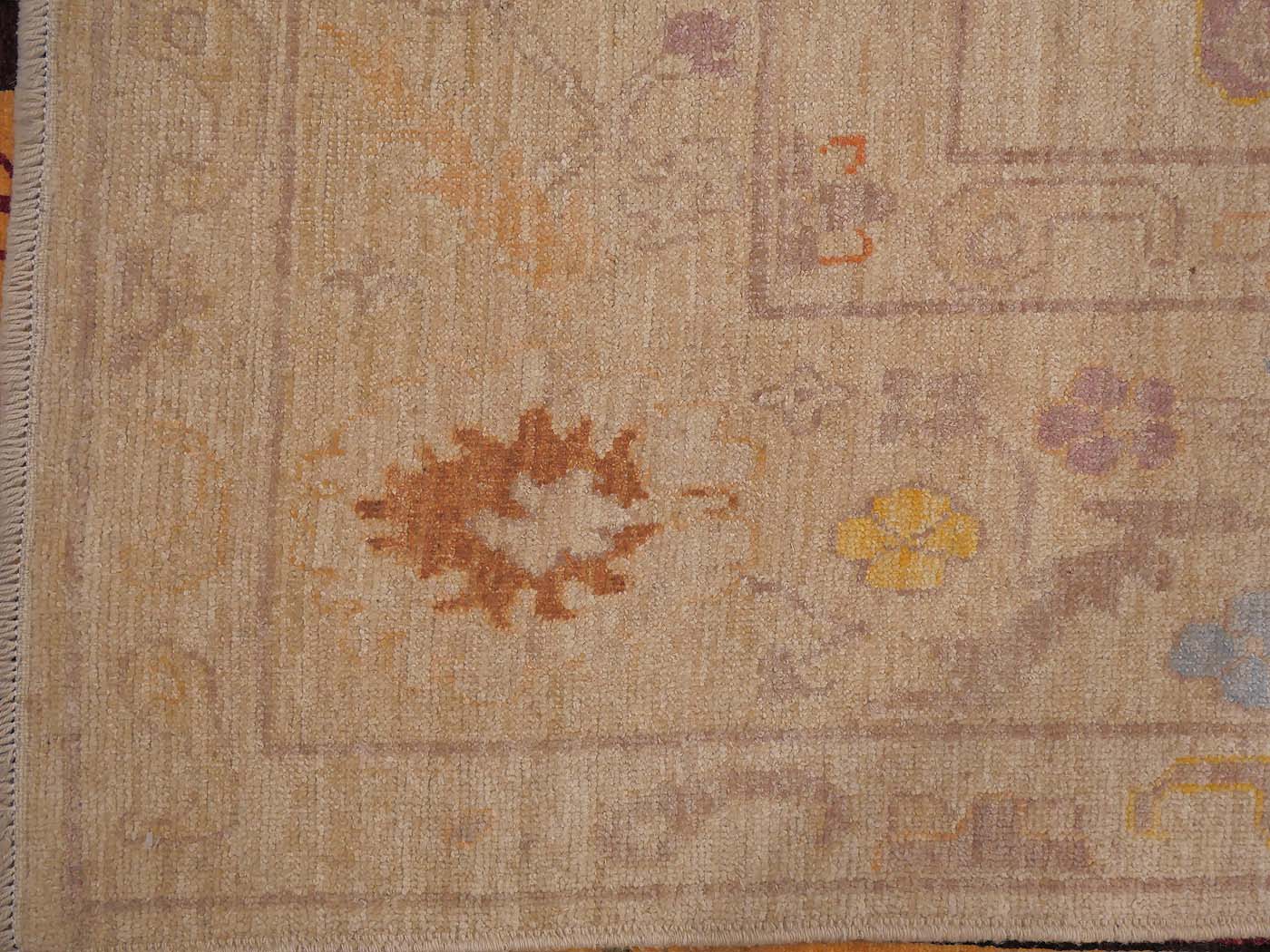 This hand knotted pile rug is made using natural dyes and handspun wool; commissioned by the Nomad Rugs design team and woven by Turquoise Mt. weavers. Thousands of women in Afghanistan are being supported in this weaving project which creates a sustainable livelihood for weaving families. Label Step ensure a comprehensive set of fair trade standards and environmentally friendly production. This rug features a classic Oushak design in soft colors and a 60kpsi weave. Entirely hand made. FREE Shipping and Easy Returns.