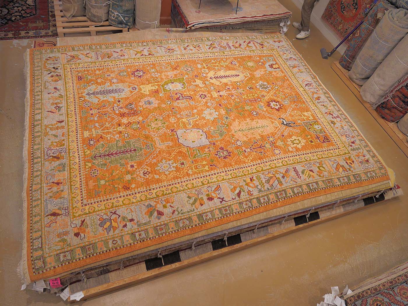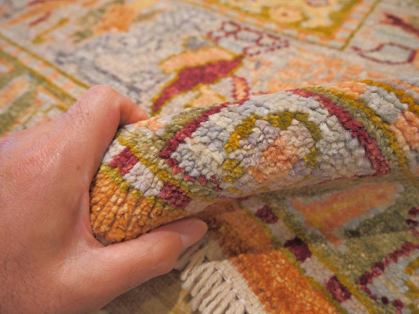 This hand knotted pile rug is made using natural dyes and handspun wool; commissioned by the Nomad Rugs design team and woven by Turquoise Mt. weavers. Thousands of women in Afghanistan are being supported in this weaving project which creates a sustainable livelihood for weaving families. Label Step ensure a comprehensive set of fair trade standards and environmentally friendly production. This rug features a classic Oushak design in soft colors and a 60kpsi weave. Entirely hand made. FREE Shipping and Easy Returns.
