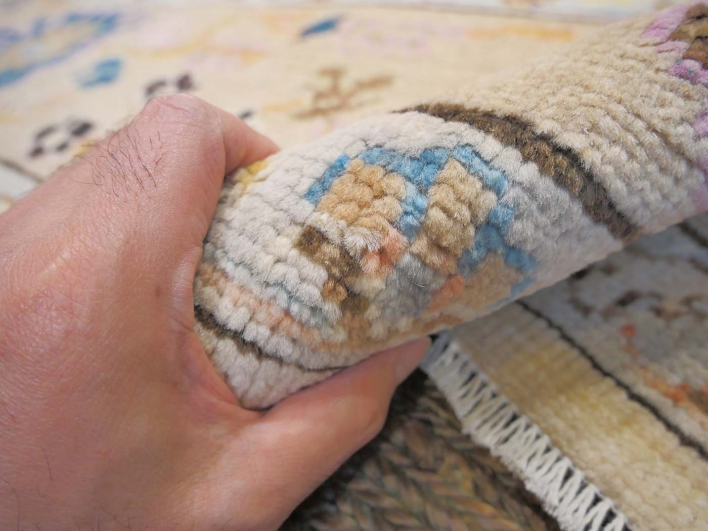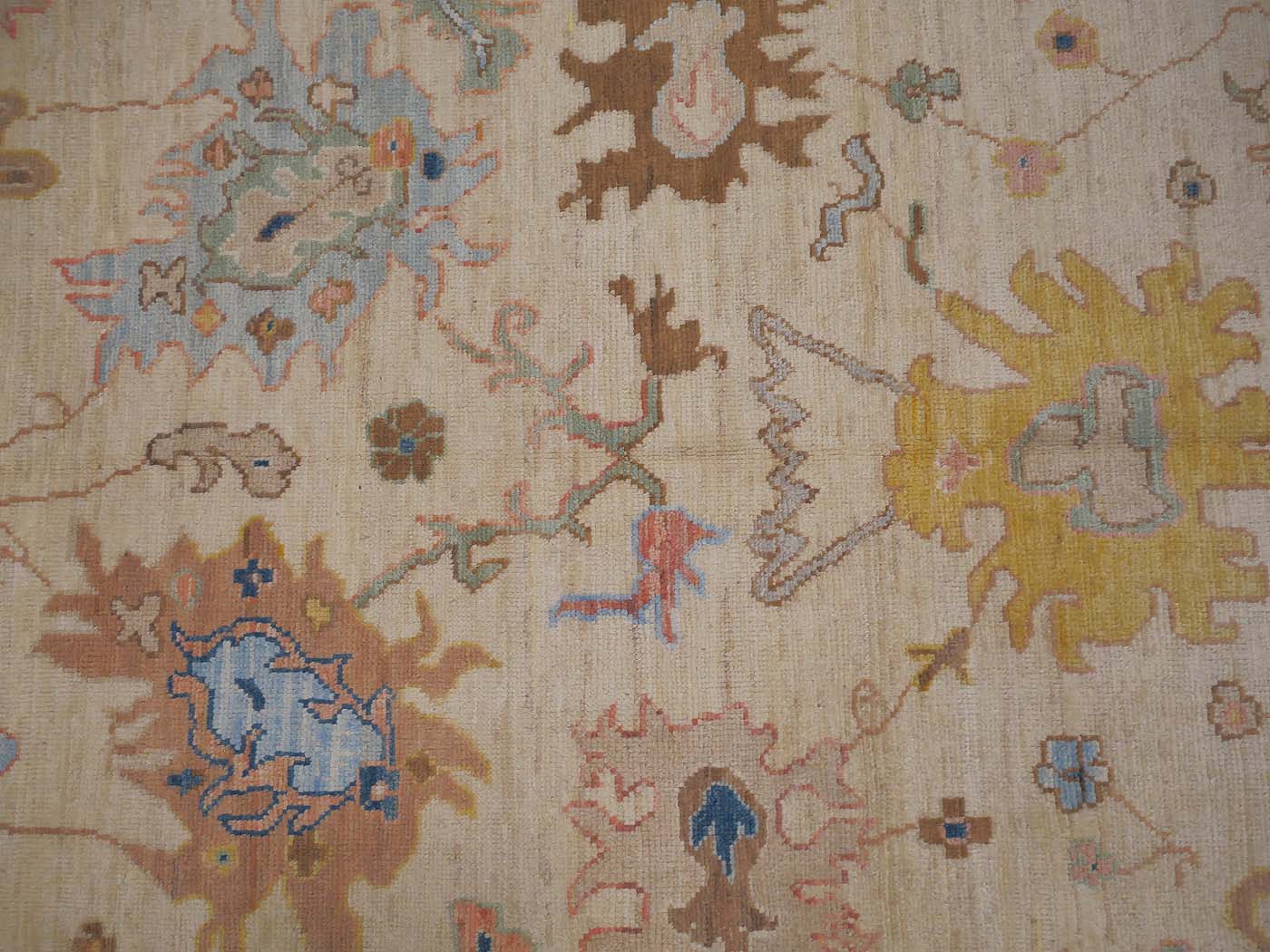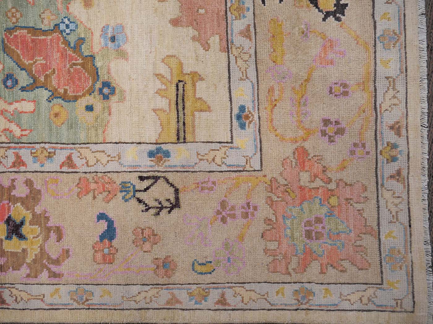 Hand knotted pile rug made with handspun wool and a 70kpi weave. These fabulous rugs are modeled after the highly coveted 19th century production of Oushak rugs from Turkey. Oushak rugs (also spelled Ushak or Usak) originated in the small town of Oushak in west central Anatolia, roughly 100 miles directly south of the city of Istanbul in Turkey. Oushak has produced some of the most decorative Persian influenced rugs of all times. These carpets have always been in very high demand by decorators and designers for their soft pleasing palate and informal designs. These rugs are extremely versatile and work in a myriad of interiors. FREE Shipping and Easy Returns.
