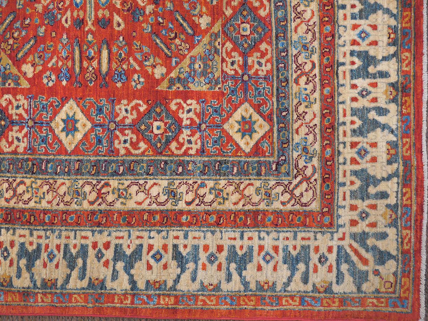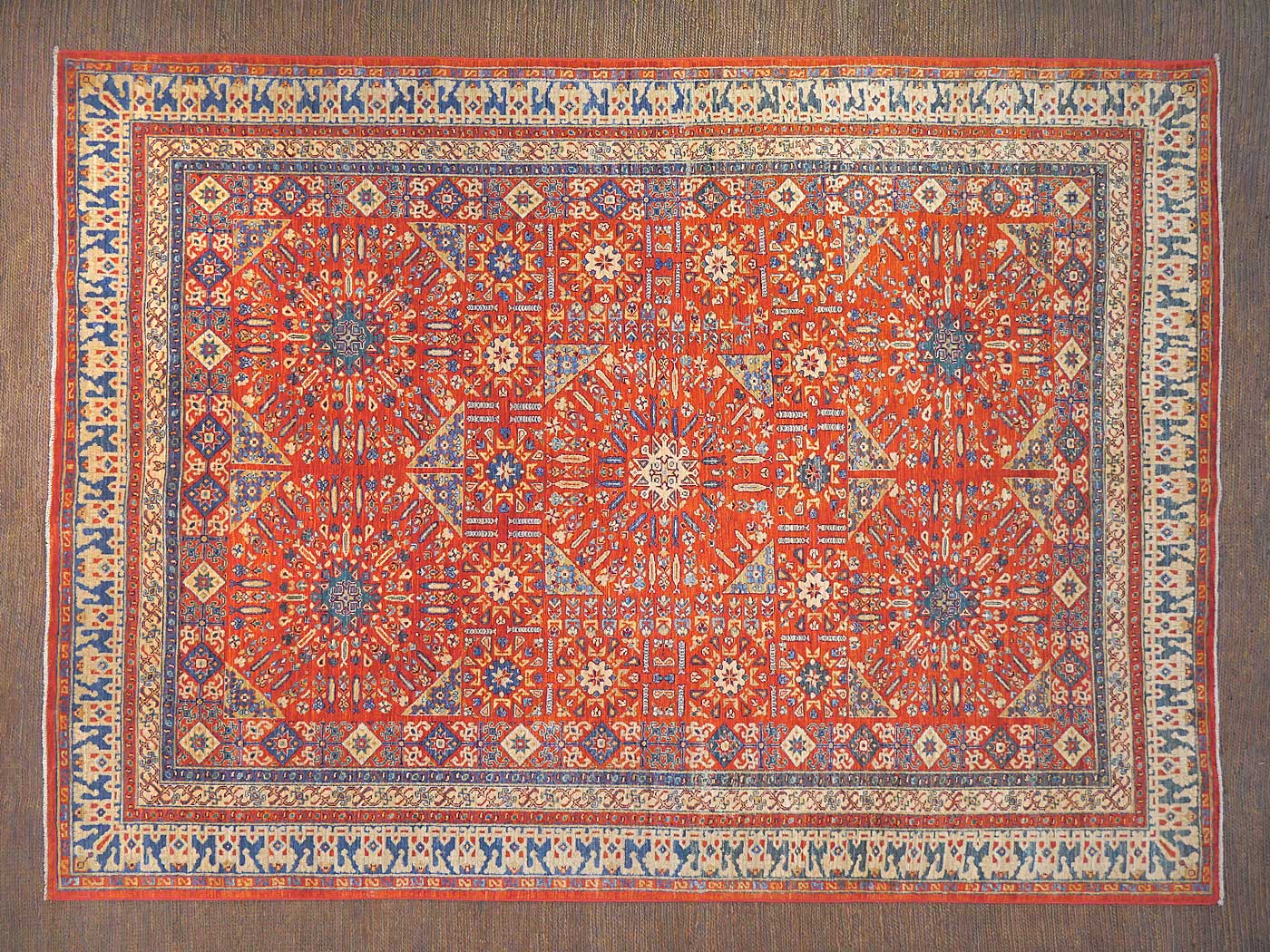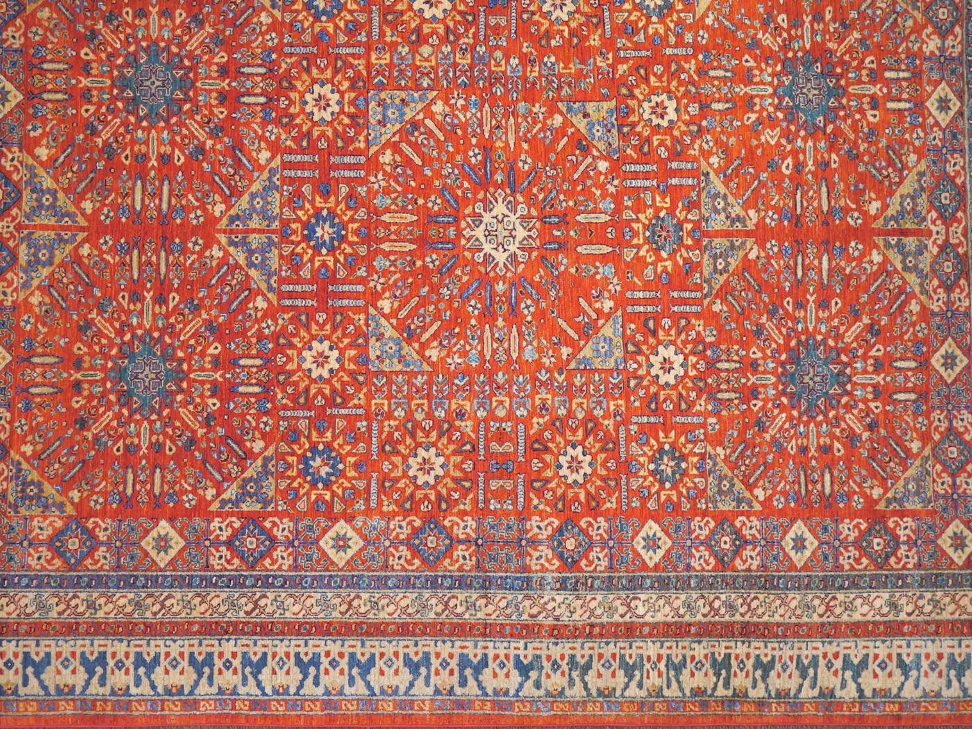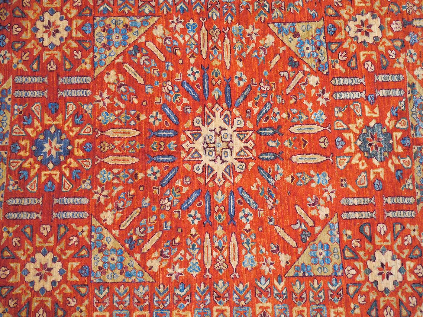 Hand knotted pile rug which is made using natural dyes and handspun wool. This rug is finely woven with over 130kpi and a stunning 16th century design with complex motifs related to the earlier Mamluk carpets that was commissioned exclusively for the Nomad Rugs team. Weaving takes place in the northern areas of Afghanistan, the home of the Turkmen people. Carpet weaving is perhaps the most essential and revered cultural activity for Turkmen; something which traditionally all women take part in. The art of weaving is reverently passed on from mother to daughter with the weaving of these rugs taking place in individual family homes. FREE Shipping and Easy Returns.