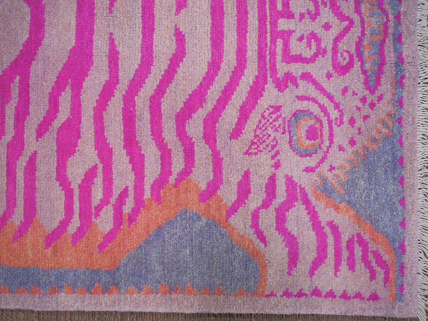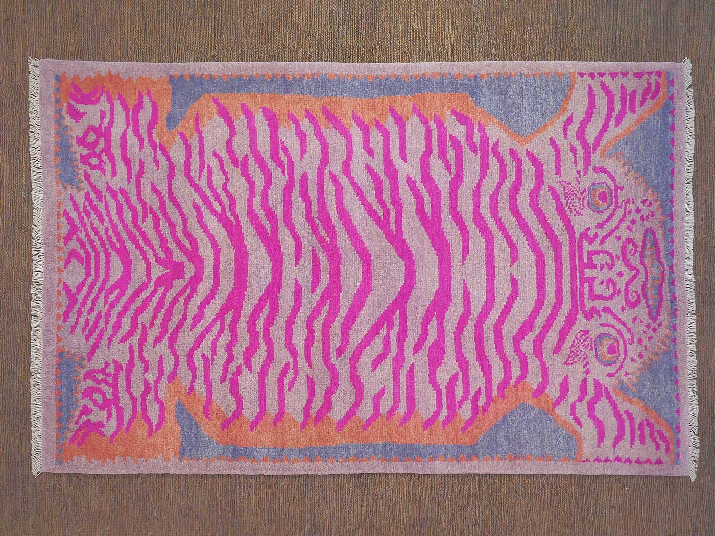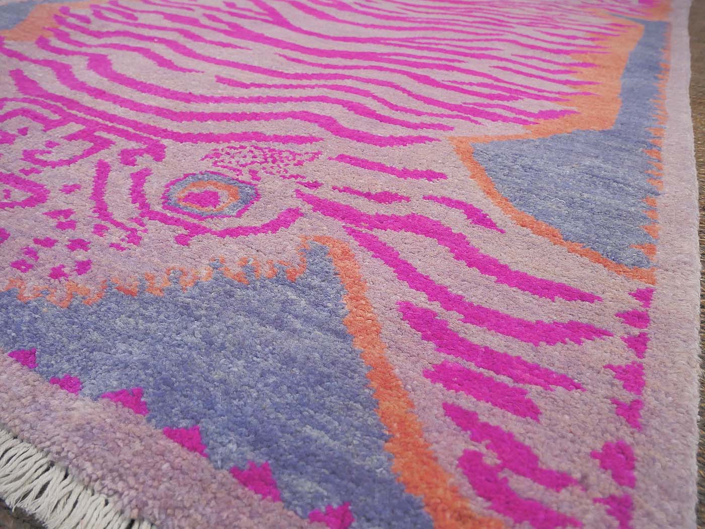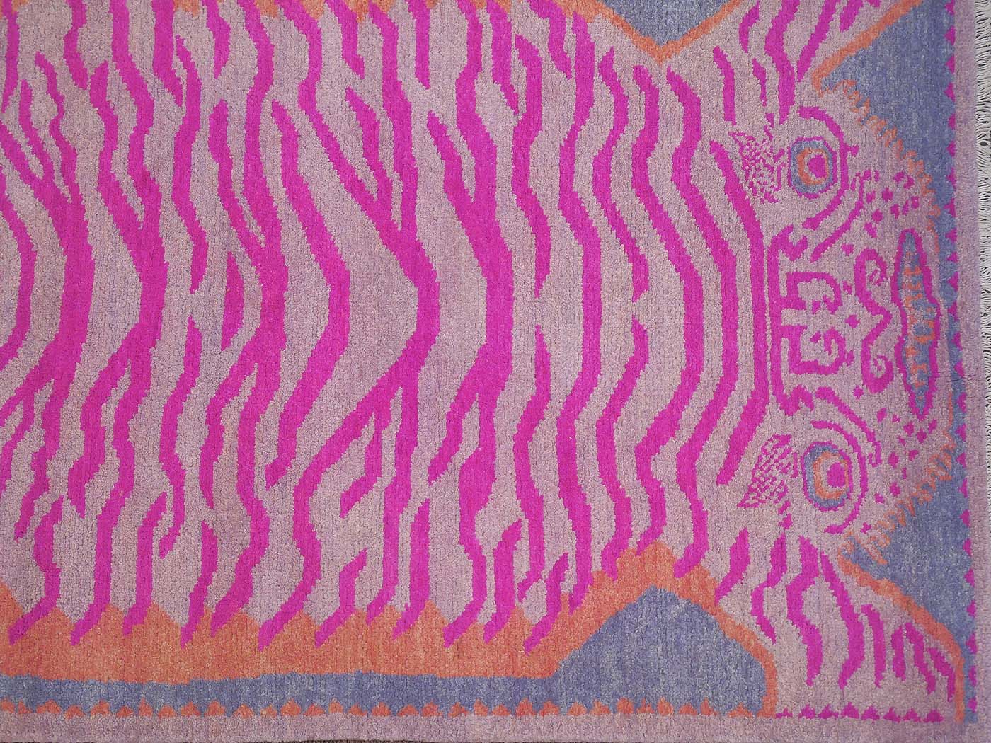 This thick hand knotted pile rug is made using handspun wool and custom made expressly for the Nomad Rugs team. This rug is woven in homage of the famous antique Tibetan Tiger rugs. In times past, tiger rugs (which were linked to tantric beliefs) were often gifted to the lamas in remote Tibetan monasteries. The tiger motif was thought to protect the person during meditation. This new rug was modeled on an antique rug and is woven with around 40kpi. The coarse knotting along with the long silky soft handspun wool and rich dyes give this rug a warm and cosy feel. The rug is both timelessly tribal and progressively modern. FREE Shipping and Easy Returns.