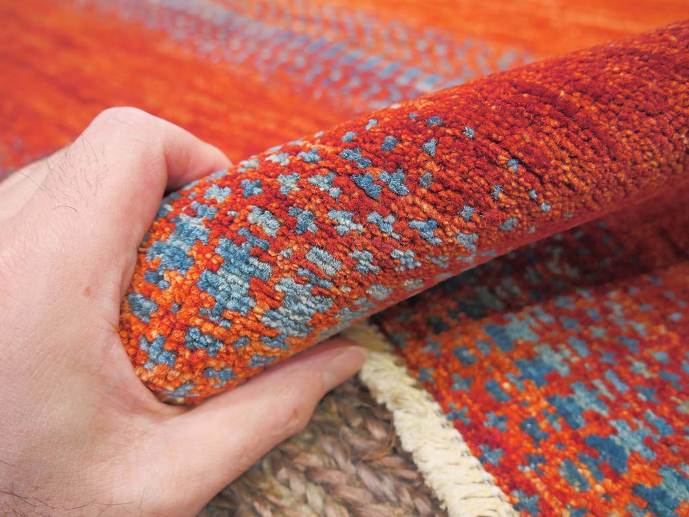 This hand knotted pile rug is made using rich natural dyes and handspun wool pile. In Persian, gabbeh means raw, unclipped or in-the-rough; an apt description for these thick, whimsical gems of tribal art. Their thick wool made for ideal insulation against the desert whose temperatures fluctuate from extreme hot and cold. Wonderful color and texture in this great rug! FREE Shipping and Easy Returns.