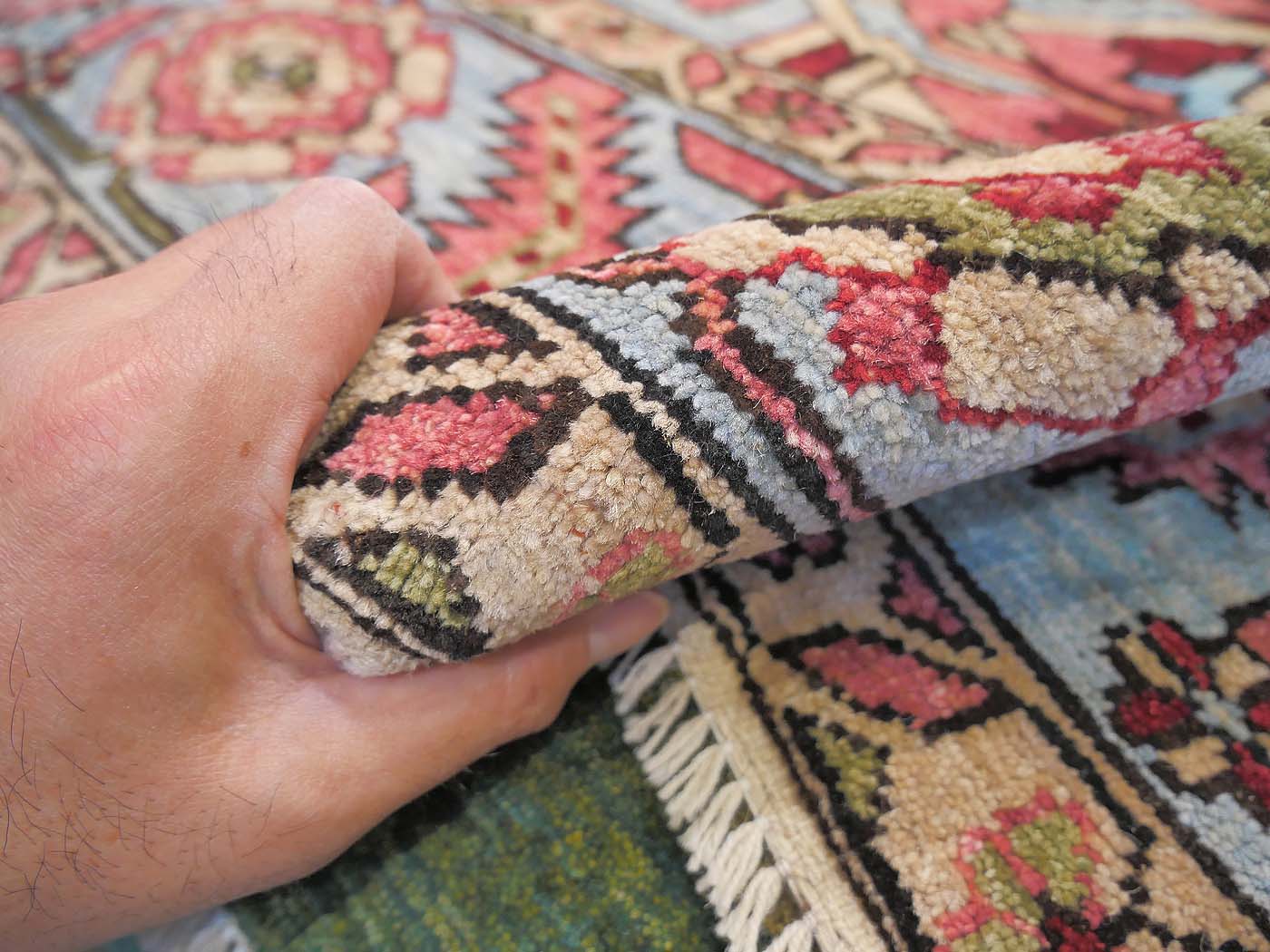 This hand knotted pile rug is made using natural dyes and handspun wool; commissioned by the Nomad Rugs design team and woven by Turquoise Mt. weavers. Thousands of women in Afghanistan are being supported in this weaving project which creates a sustainable livelihood for weaving families. Label Step ensure a comprehensive set of fair trade standards and environmentally friendly production. This rug features a Persian Heriz design in soft colors and a fine 100kpsi weave. Entirely hand made. FREE Shipping and Easy Returns.
