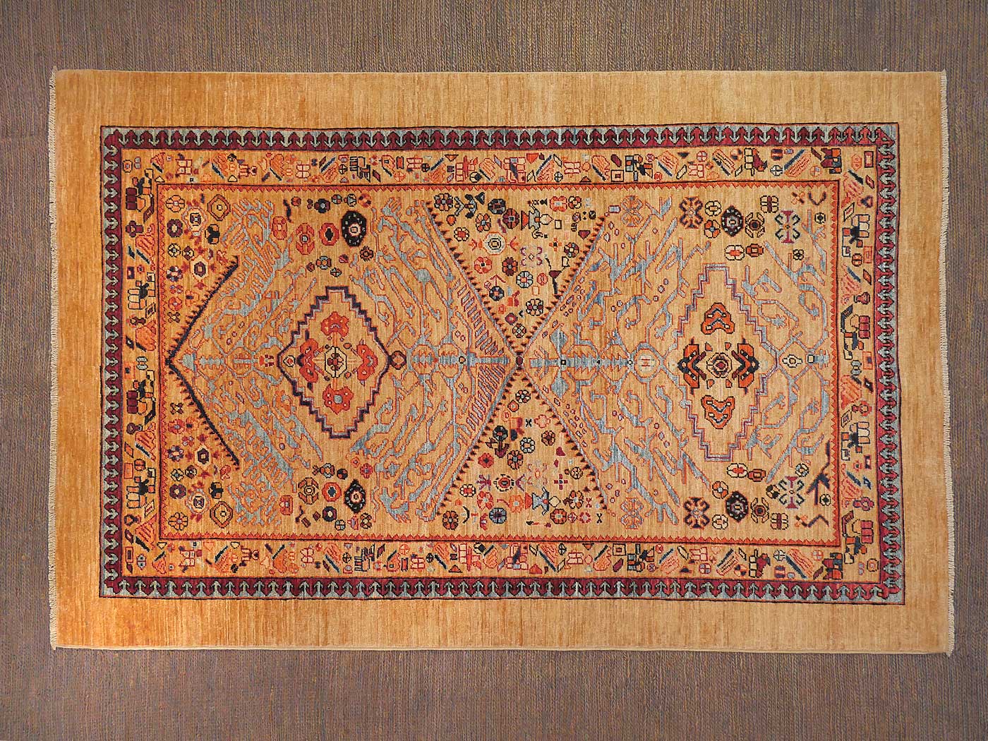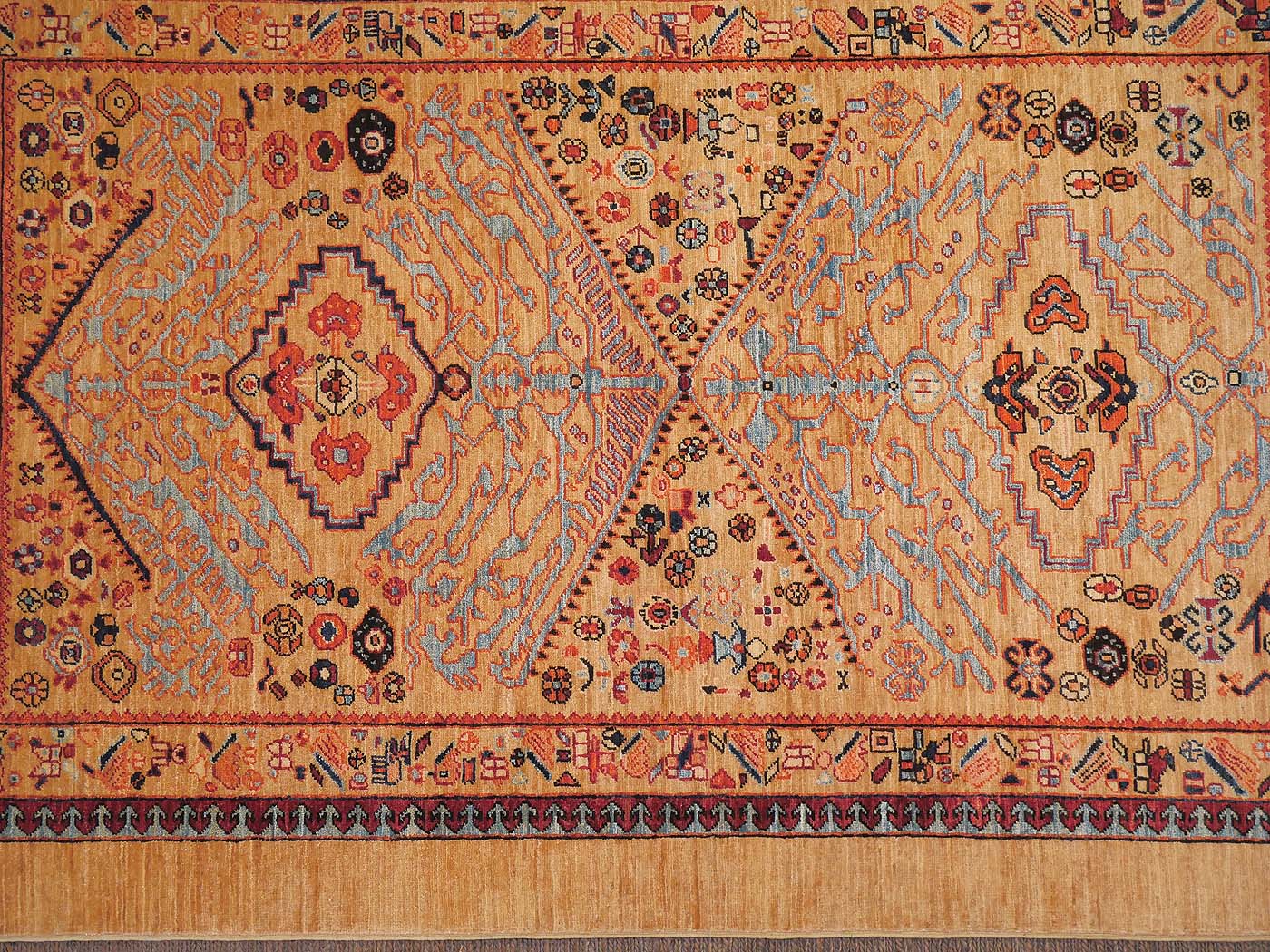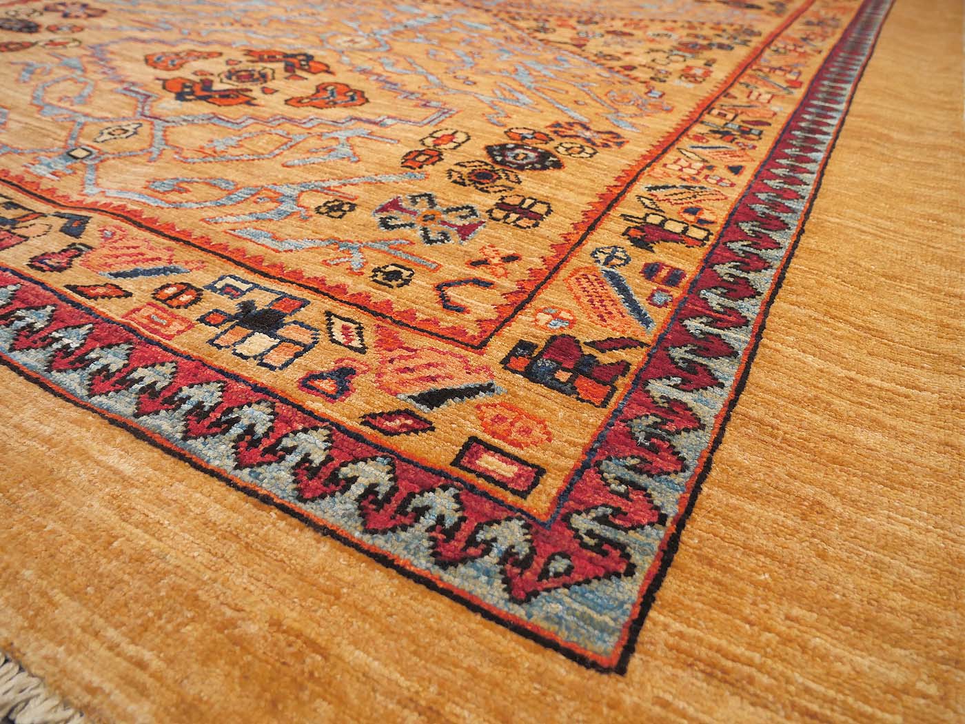 This hand knotted pile rug is made using natural dyes and handspun wool. This rug is woven with around 90kpsi and a wonderful Persian Serab design with rich colors made especially for the Nomad Rugs team. Weaving takes place in the northern areas of Afghanistan, the home of the Turkmen people. Carpet weaving is perhaps the most essential and revered cultural activity for Turkmen; something which traditionally all women take part in. The art of weaving is reverently passed on from mother to daughter with the weaving of these rugs taking place in individual family homes. Entirely hand made! FREE Shipping and Easy Returns.