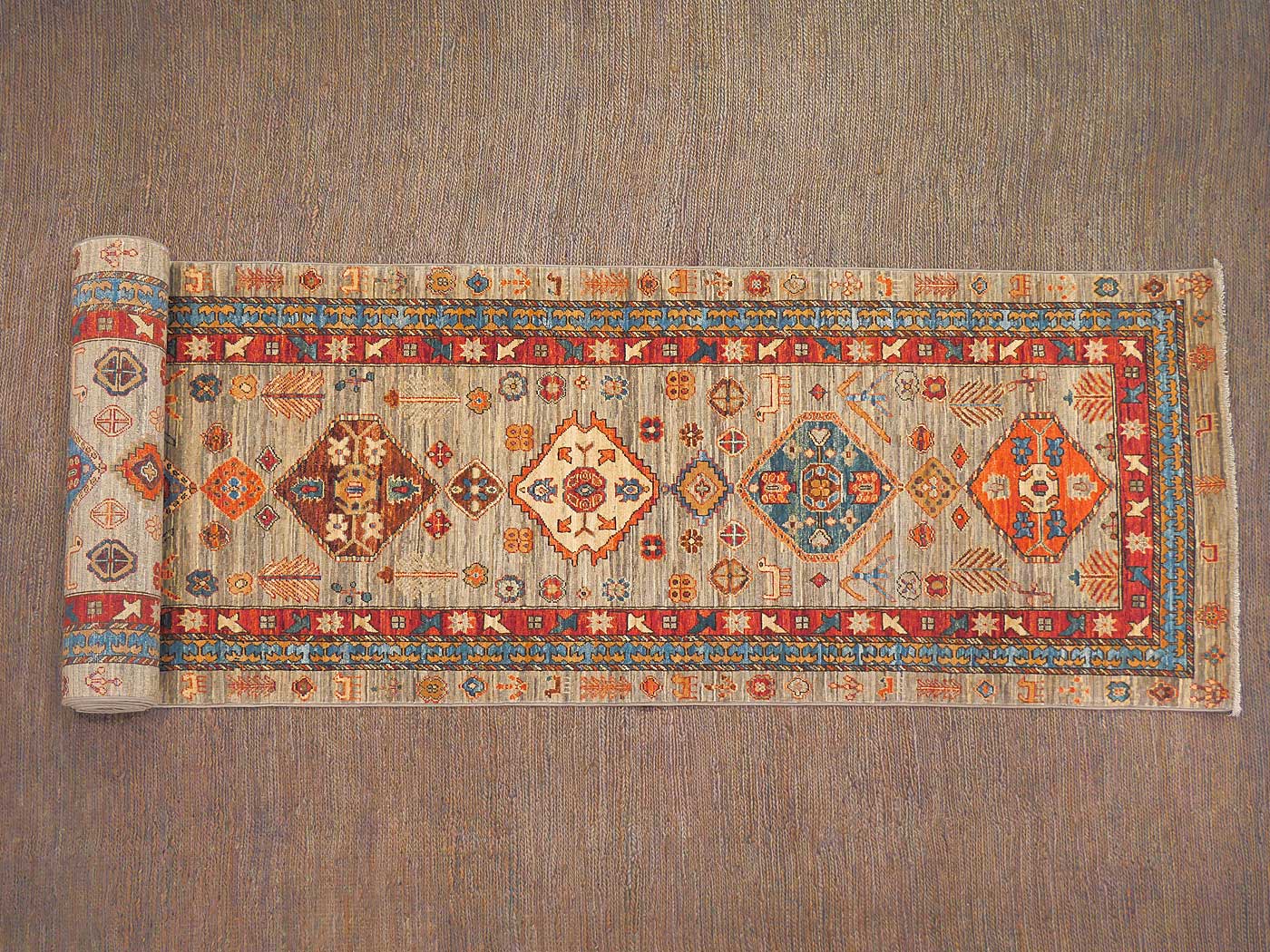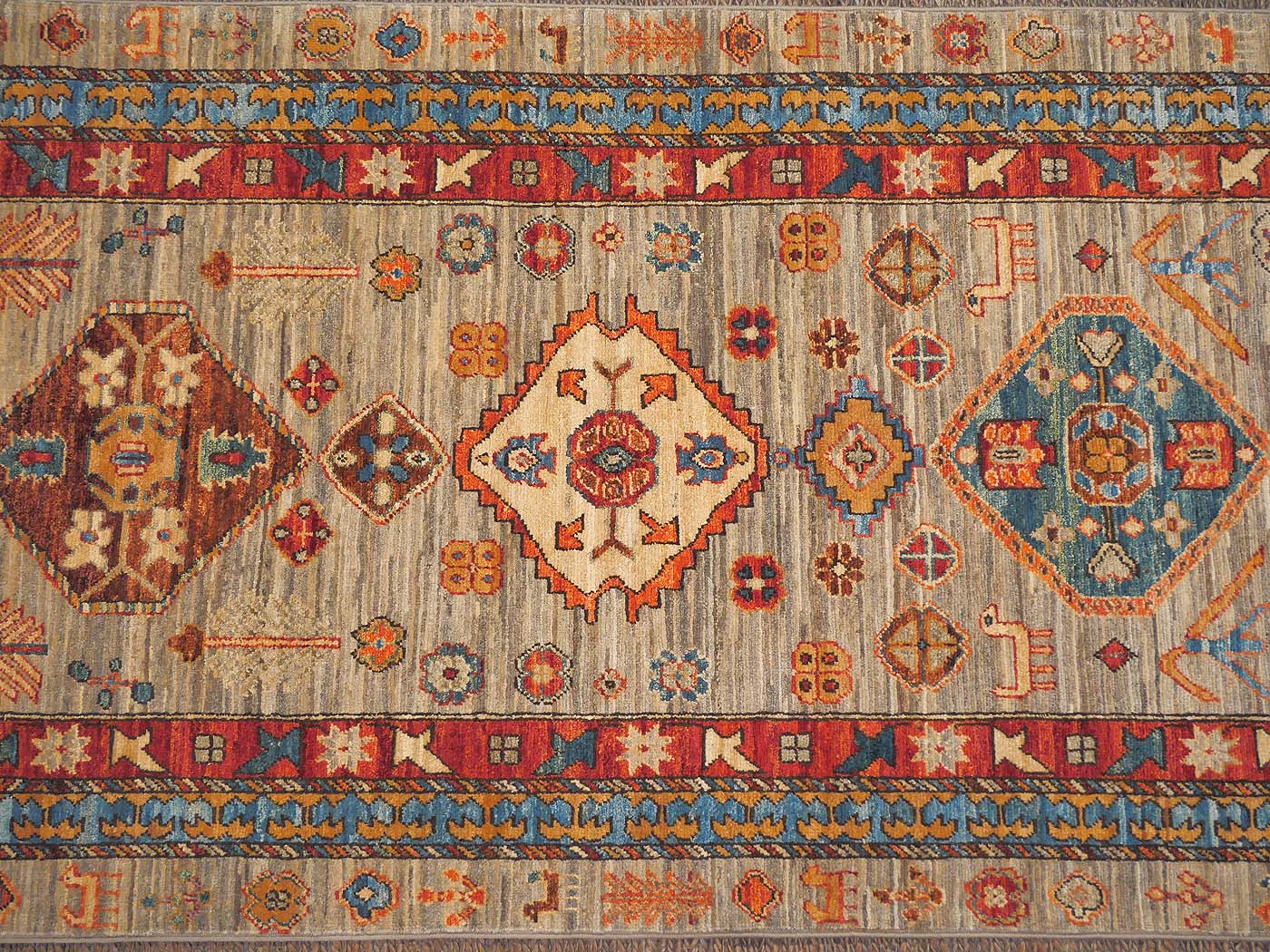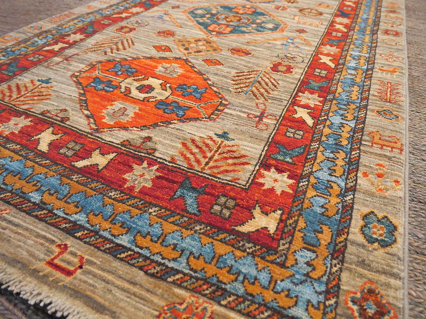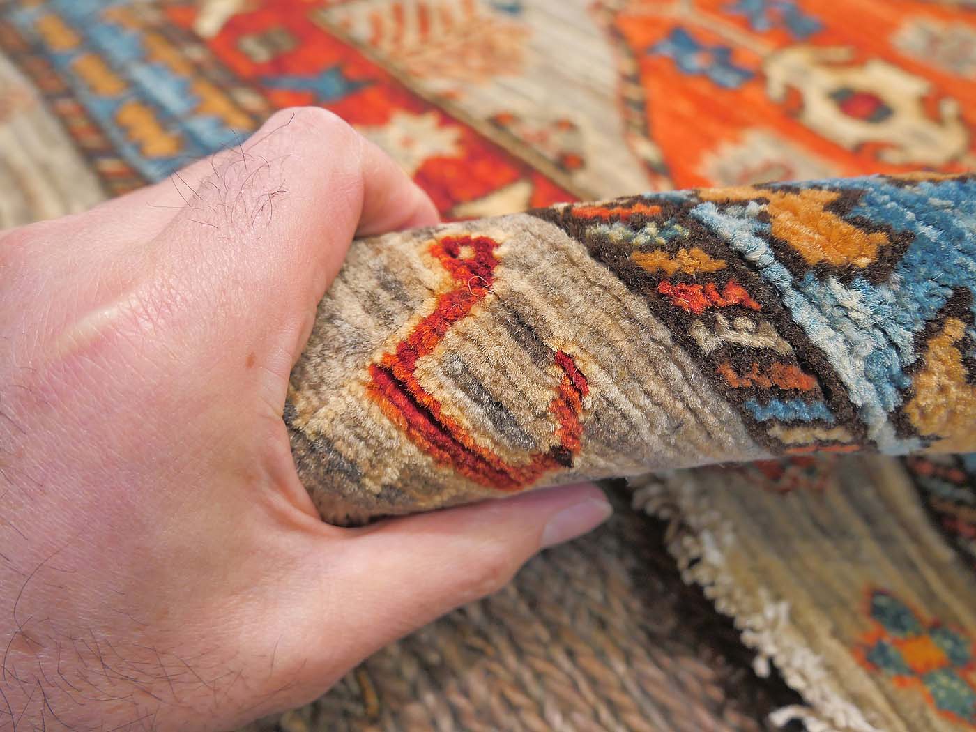 Hand knotted pile rug rug made using natural dyes and handspun wool. This rug comes from our Bamiyan collection, one of the more finely woven carpets produced anywhere with natural dyes and handspun wool. The knotting is over 130kpsi. This striking rug has a design inspired by 19th century Serab village rugs from NW Persian. These wonderul and informal geometric rugs are equally well suited for contemporary or traditional interiors. Entirely hand made. FREE Shipping and Easy Returns.