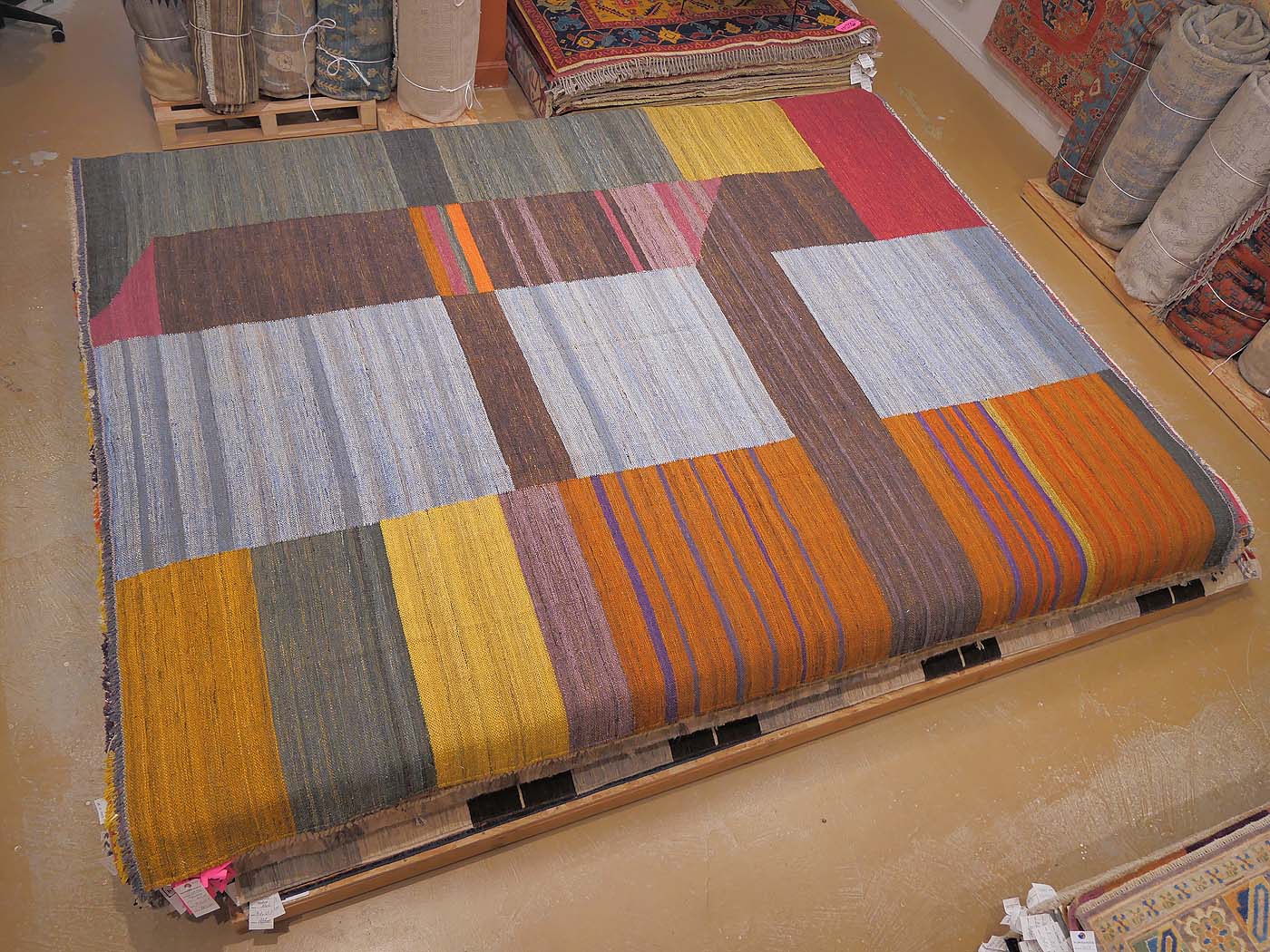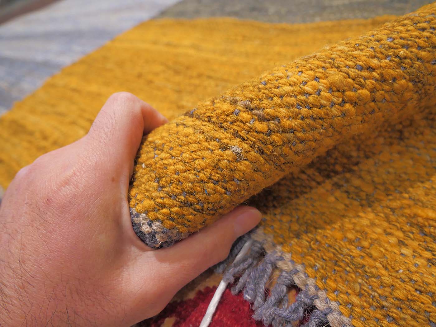 This handmade kilim rug is tightly flat woven in a highly textured tapestry weave technique. Made exclusively for Nomad Rugs with natural dyes and handspun wool. These kilims have a slightly primitive texture and a rich abrash which makes them look much like the antique kilims prized by collectors. Some of the nicest hand woven kilim rugs made today. Entirely hand made. FREE Shipping and Easy Returns.