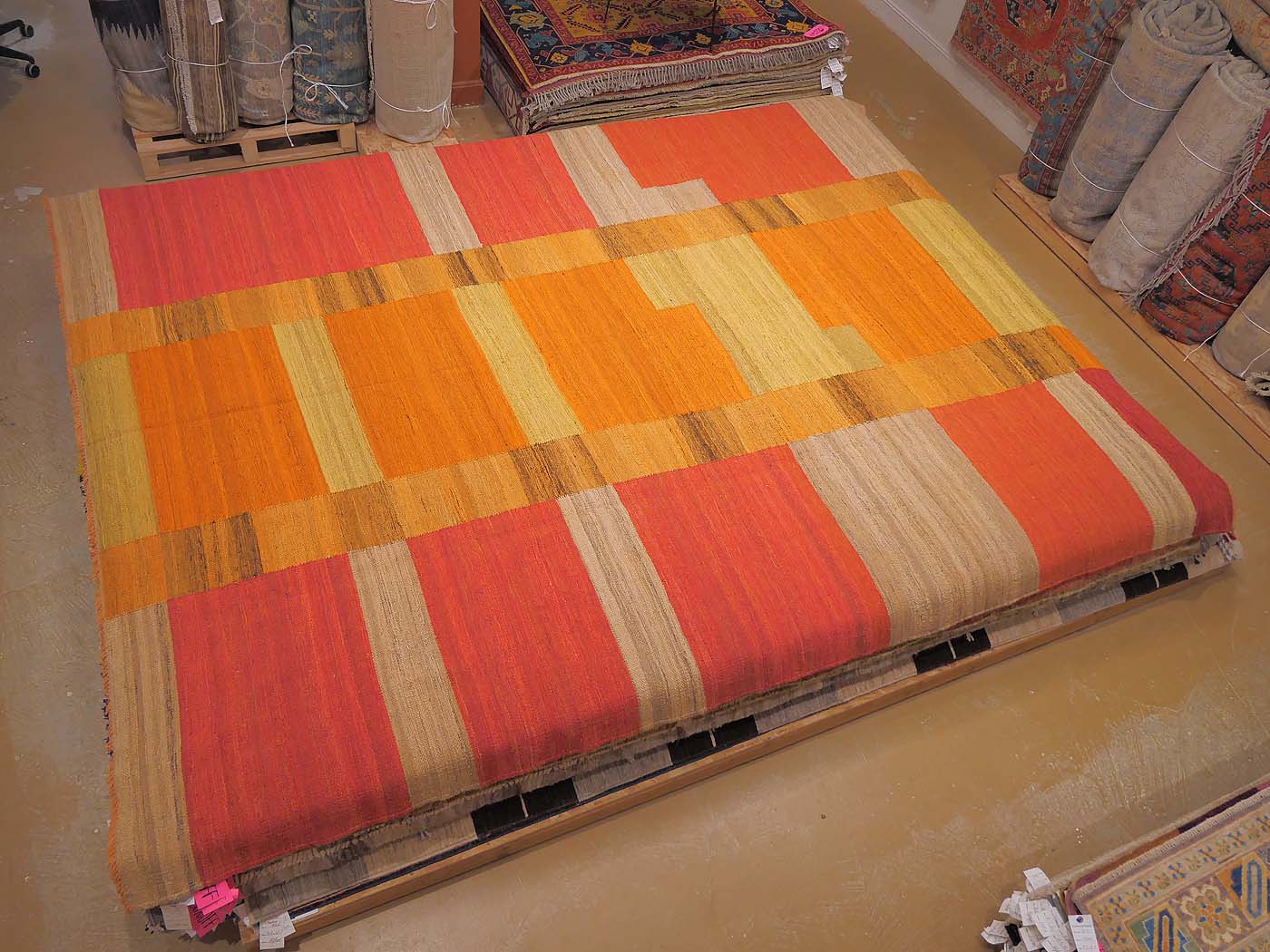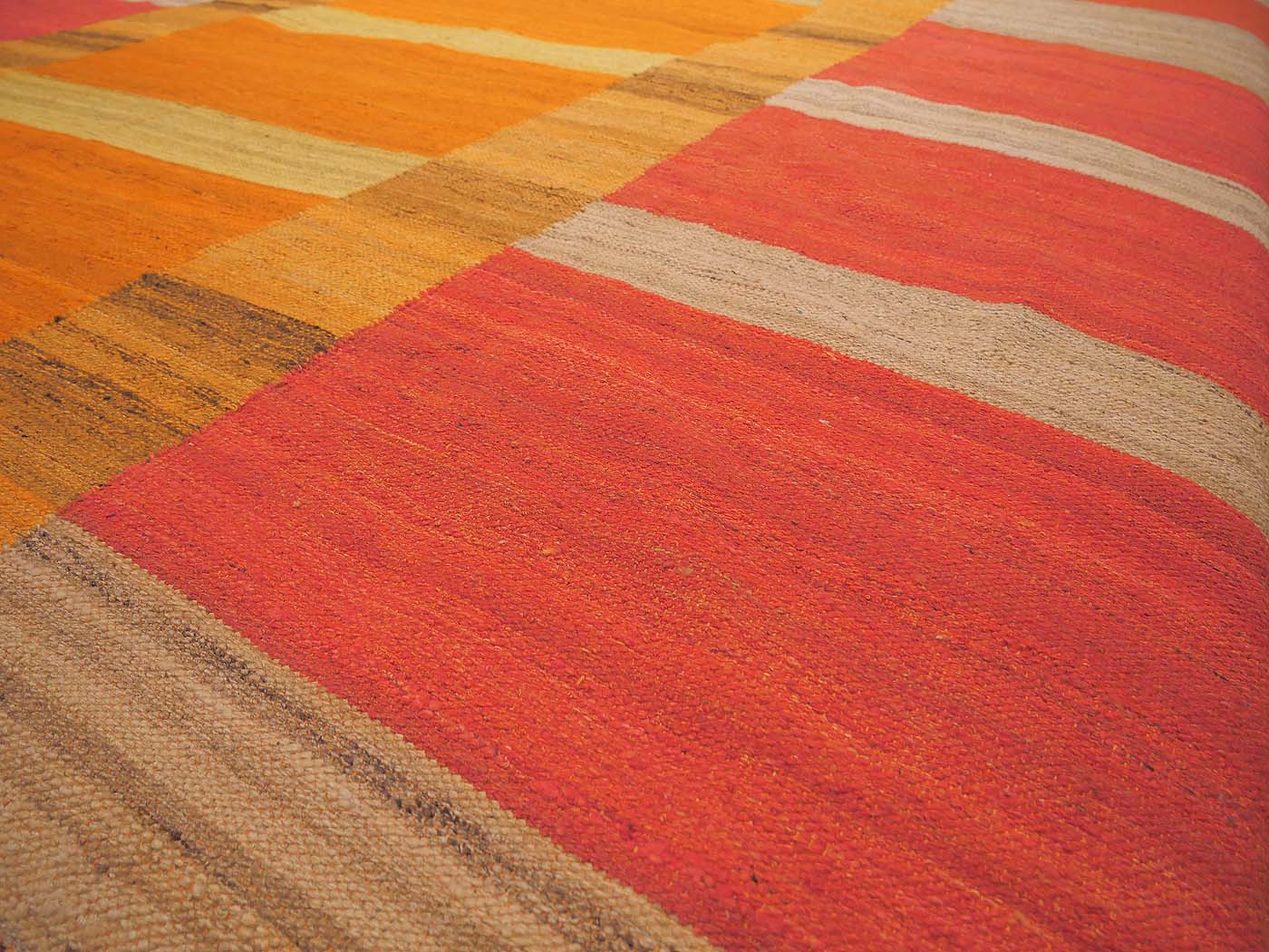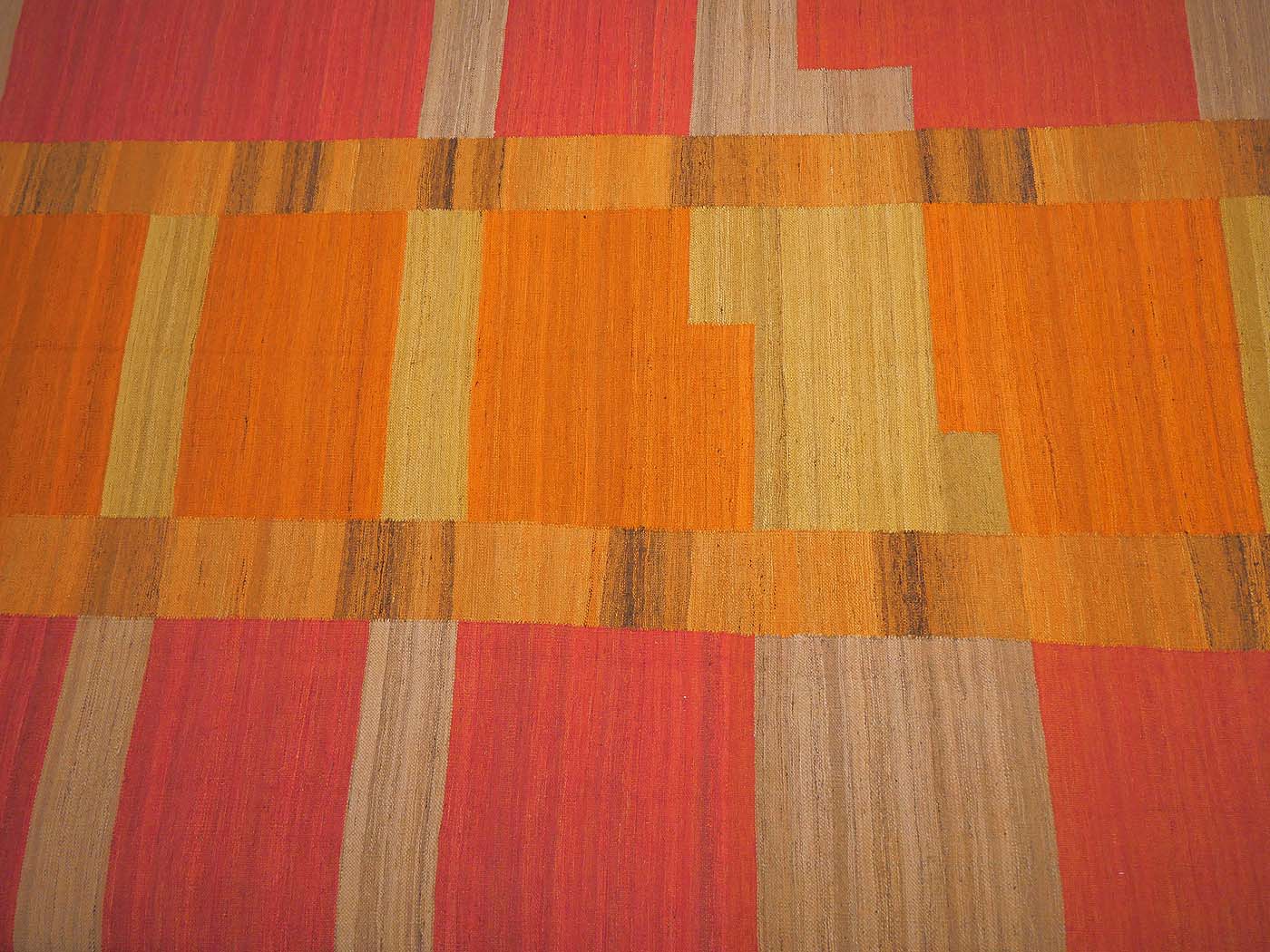 This handmade kilim rug is tightly flat woven in a highly textured tapestry weave technique. Made exclusively for Nomad Rugs with natural dyes and handspun wool. These kilims have a slightly primitive texture and a rich abrash which makes them look much like the antique kilims prized by collectors. Some of the nicest hand woven kilim rugs made today. Entirely hand made. FREE Shipping and Easy Returns.