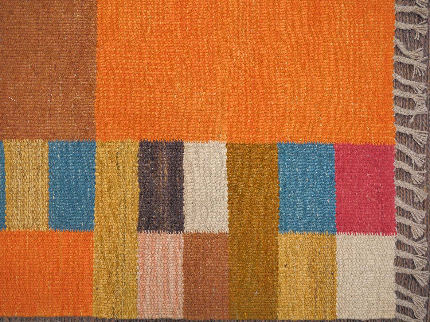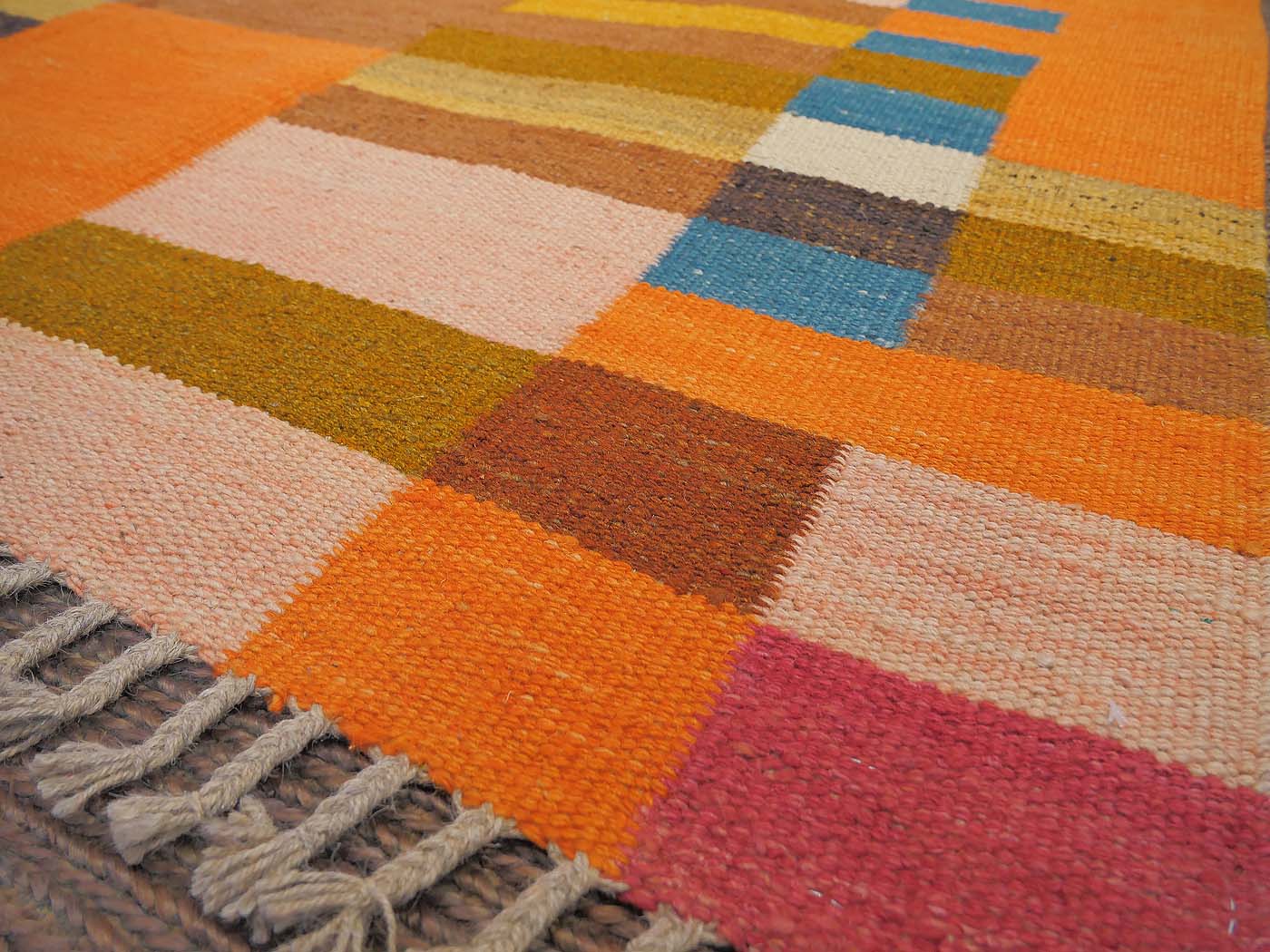 This handmade kilim rug is tightly flat woven in a highly textured tapestry weave technique. Made exclusively for Nomad Rugs with natural dyes and handspun wool. These kilims have a slightly primitive texture and a rich abrash which makes them look much like the antique kilims prized by collectors. Some of the nicest hand woven kilim rugs made today. Entirely hand made. FREE Shipping and Easy Returns.