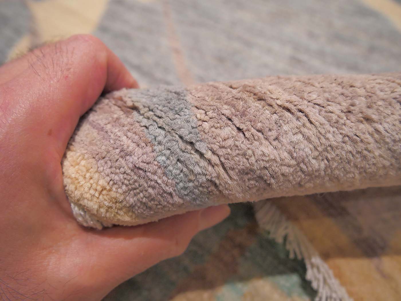 This hand knotted pile rug is made using natural dyes and handspun wool; commissioned by the Nomad Rugs design team and woven by Turquoise Mt. weavers. Thousands of women in Afghanistan are being supported in this weaving project which creates a sustainable livelihood for weaving families. Label Step ensure a comprehensive set of fair trade standards and environmentally friendly production. This rug features a lovely modern design in soft colors and a very fine weave of over 140kpsi. Entirely hand made. FREE Shipping and Easy Returns.