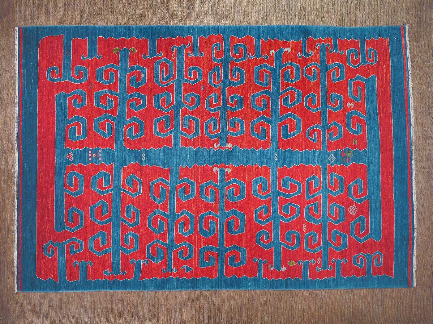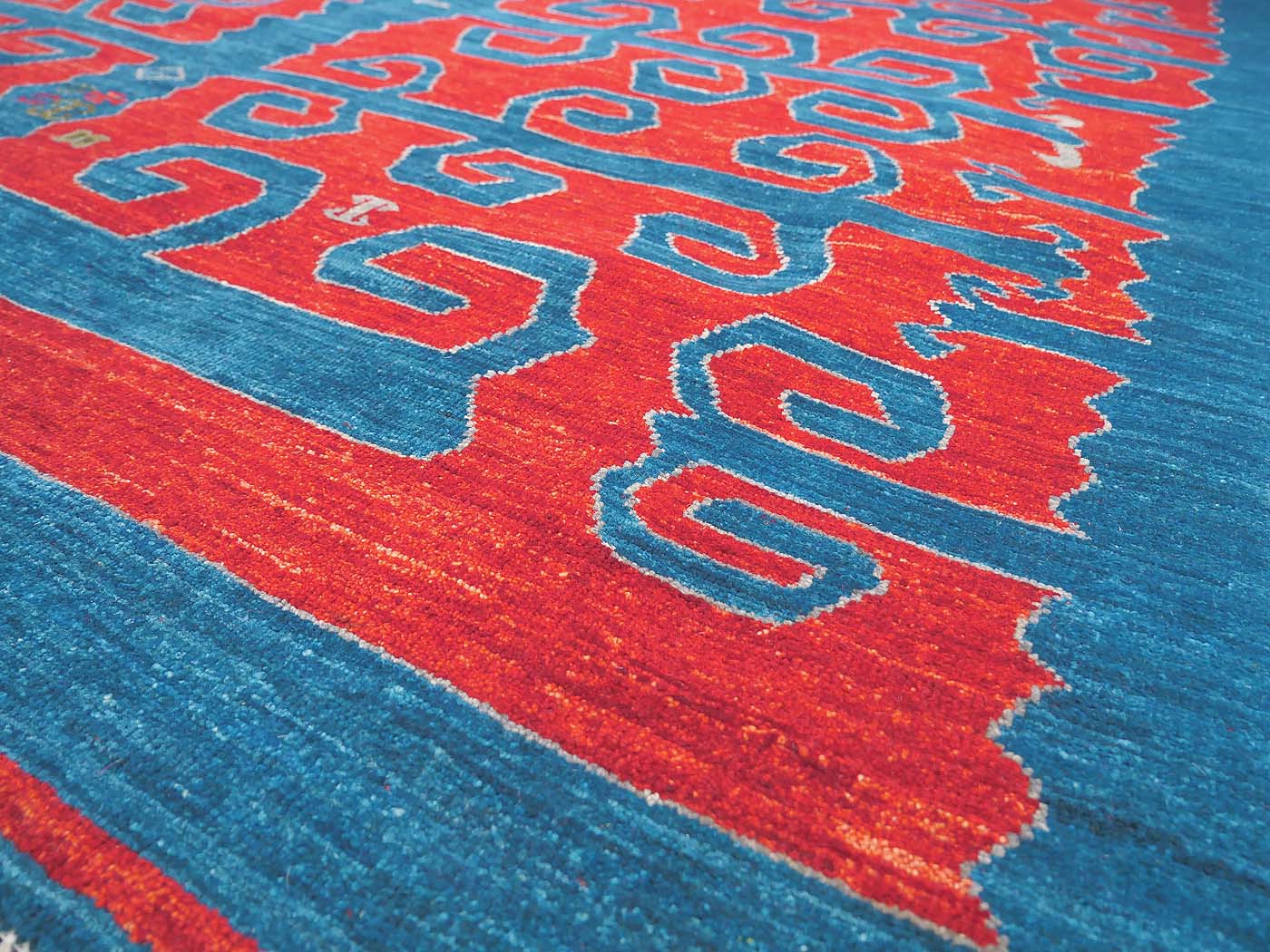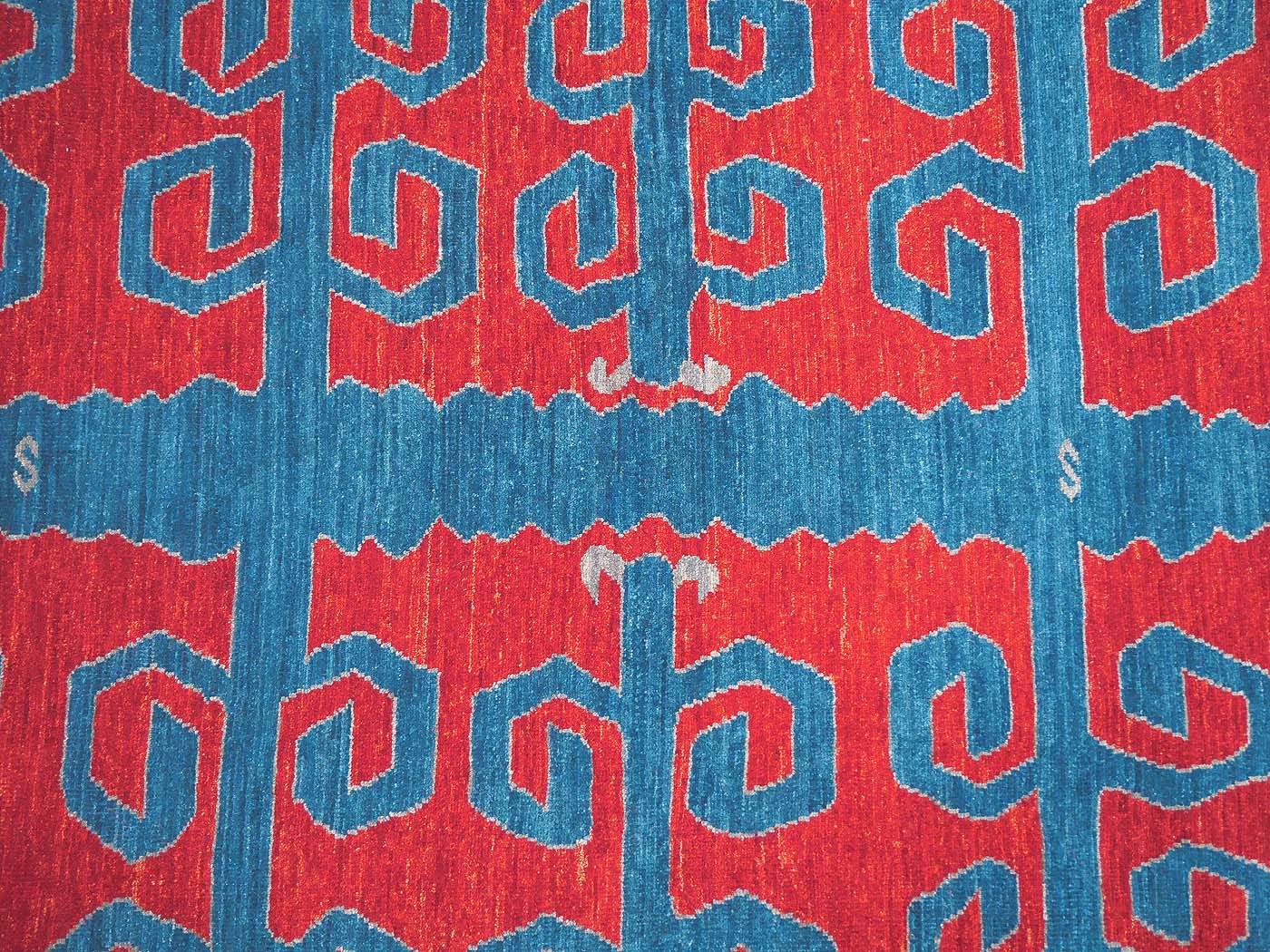 This hand knotted pile rug is made using natural dyes and handspun wool; commissioned by the Nomad Rugs design team and woven by Turquoise Mt. weavers. Thousands of women in Afghanistan are being supported in this weaving project which creates a sustainable livelihood for weaving families. Label Step ensure a comprehensive set of fair trade standards and environmentally friendly production. This rug features a bold Yuncu Yoruk kilim design in rich colors and a fine 100kpsi weave. Entirely hand made. FREE Shipping and Easy Returns.