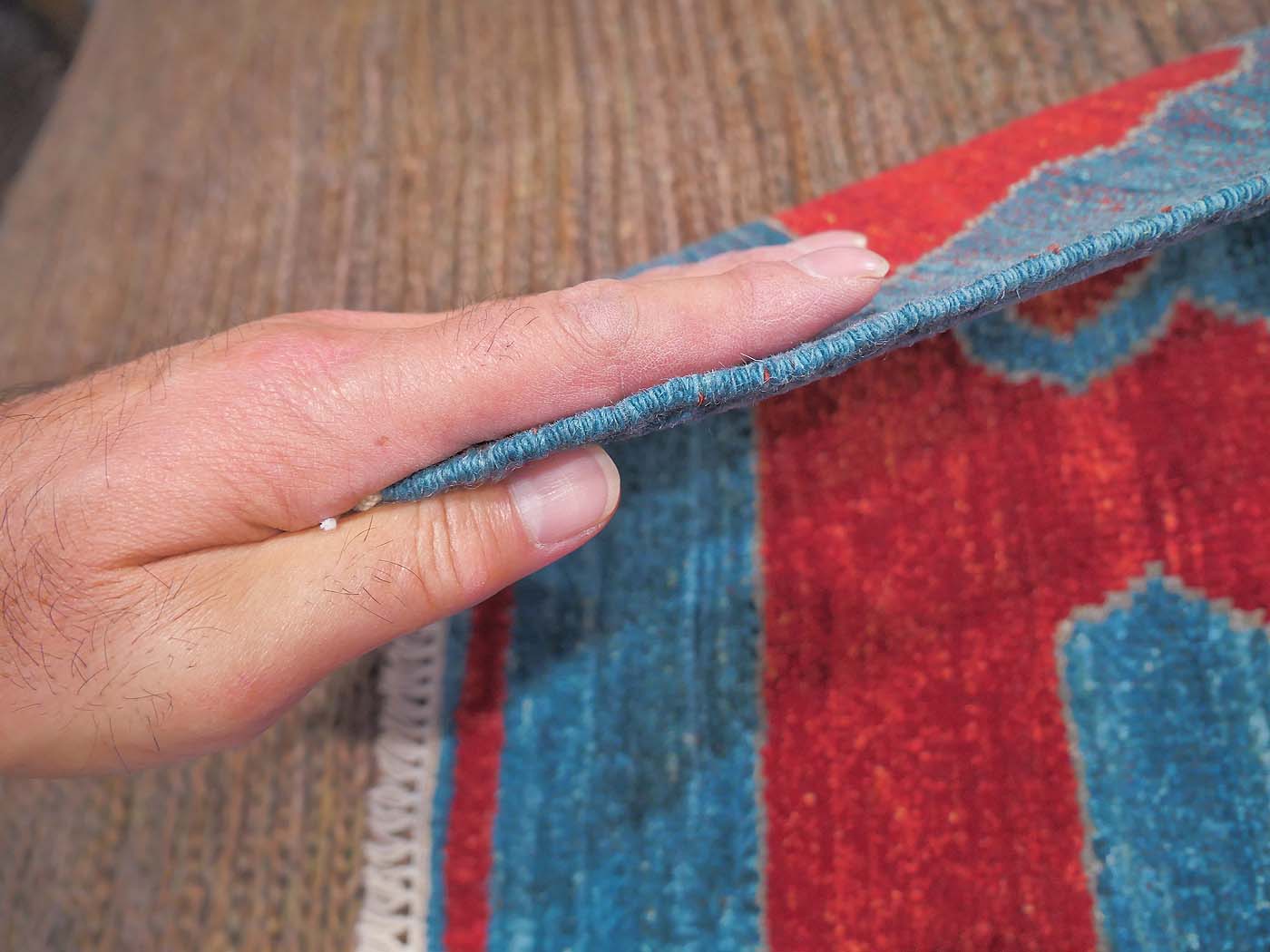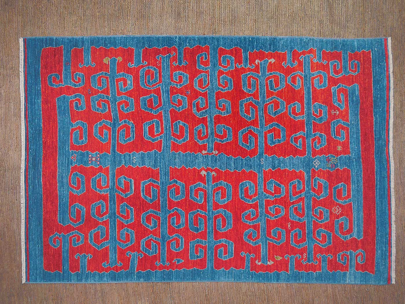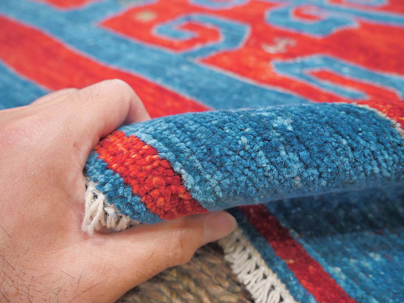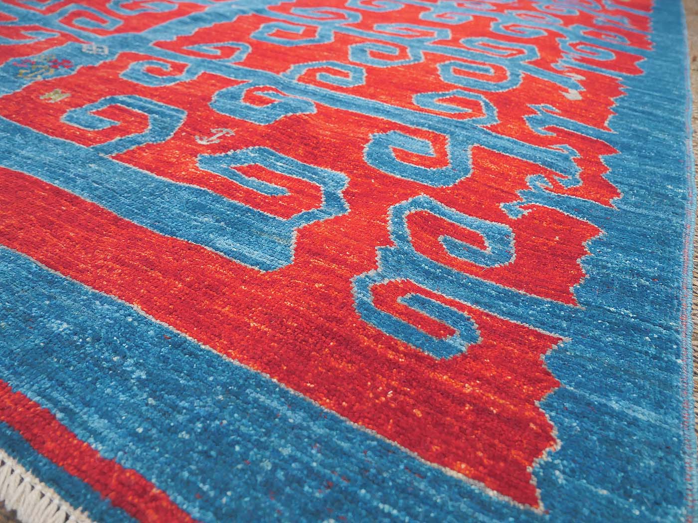 This hand knotted pile rug is made using natural dyes and handspun wool; commissioned by the Nomad Rugs design team and woven by Turquoise Mt. weavers. Thousands of women in Afghanistan are being supported in this weaving project which creates a sustainable livelihood for weaving families. Label Step ensure a comprehensive set of fair trade standards and environmentally friendly production. This rug features a bold Yuncu Yoruk kilim design in rich colors and a fine 100kpsi weave. Entirely hand made. FREE Shipping and Easy Returns.